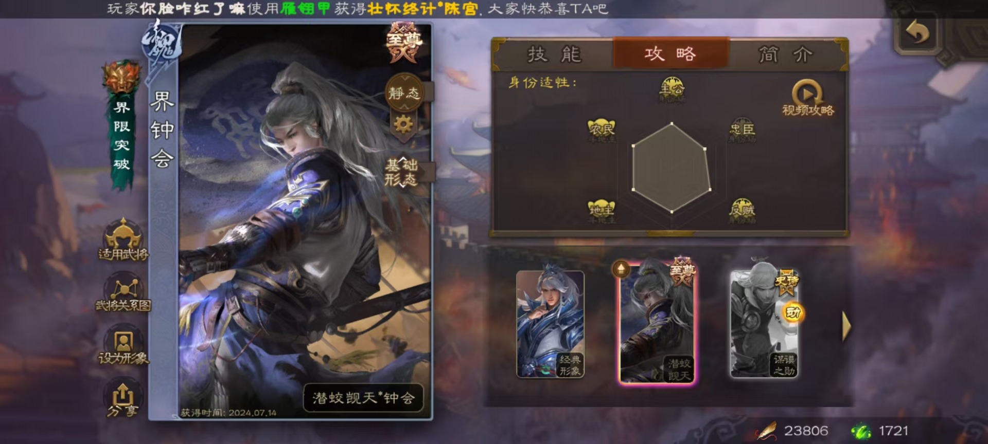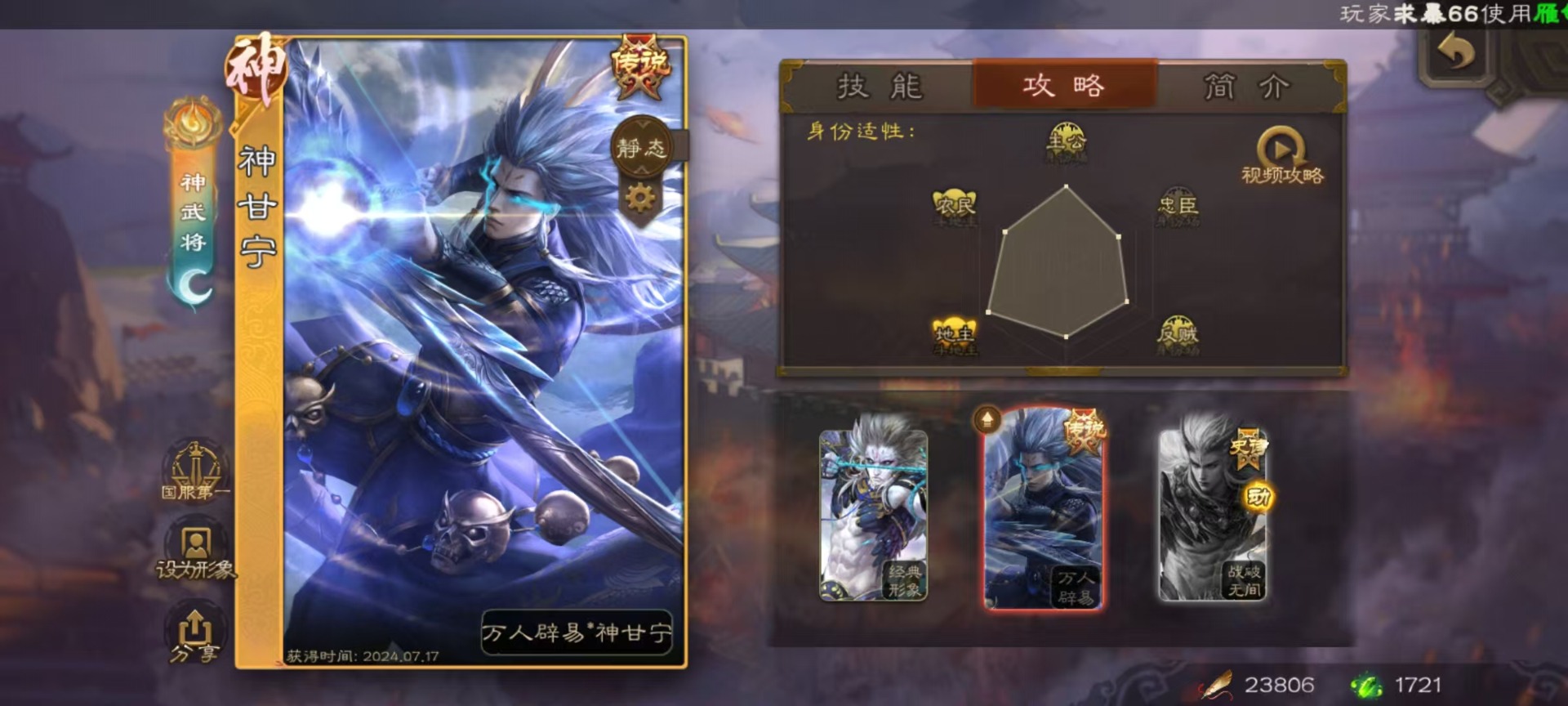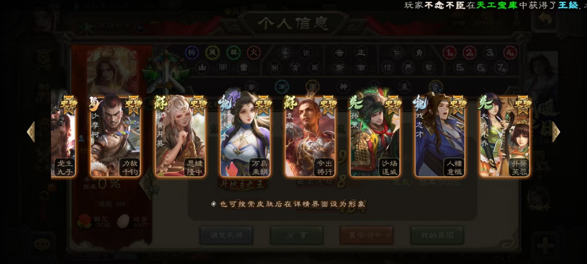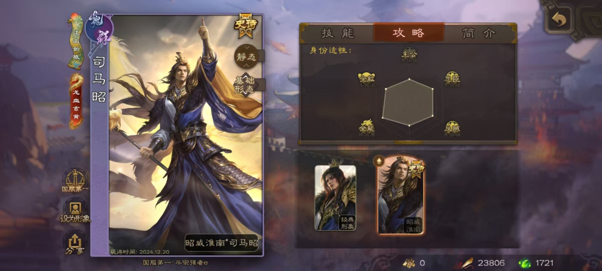[16520490]vip9 骠骑将军 314武将 18动态皮肤 28史诗武将 2宝珠 【神将】:神甘宁神张辽 【魏国武将】:清河公主文鸯王元姬魏-司马昭界钟会程昱曹纯戏志才甄姬司马懿许褚夏侯惇郭嘉曹仁曹操张辽 【蜀国武将】:谋赵云赵襄谯周关索谋关羽 【吴国武将】:文鸯吴景孙皓骆统留赞界朱然界徐盛 【群国武将】:星董卓群-司马昭谋貂蝉兀突骨沮授界左慈界李儒许攸