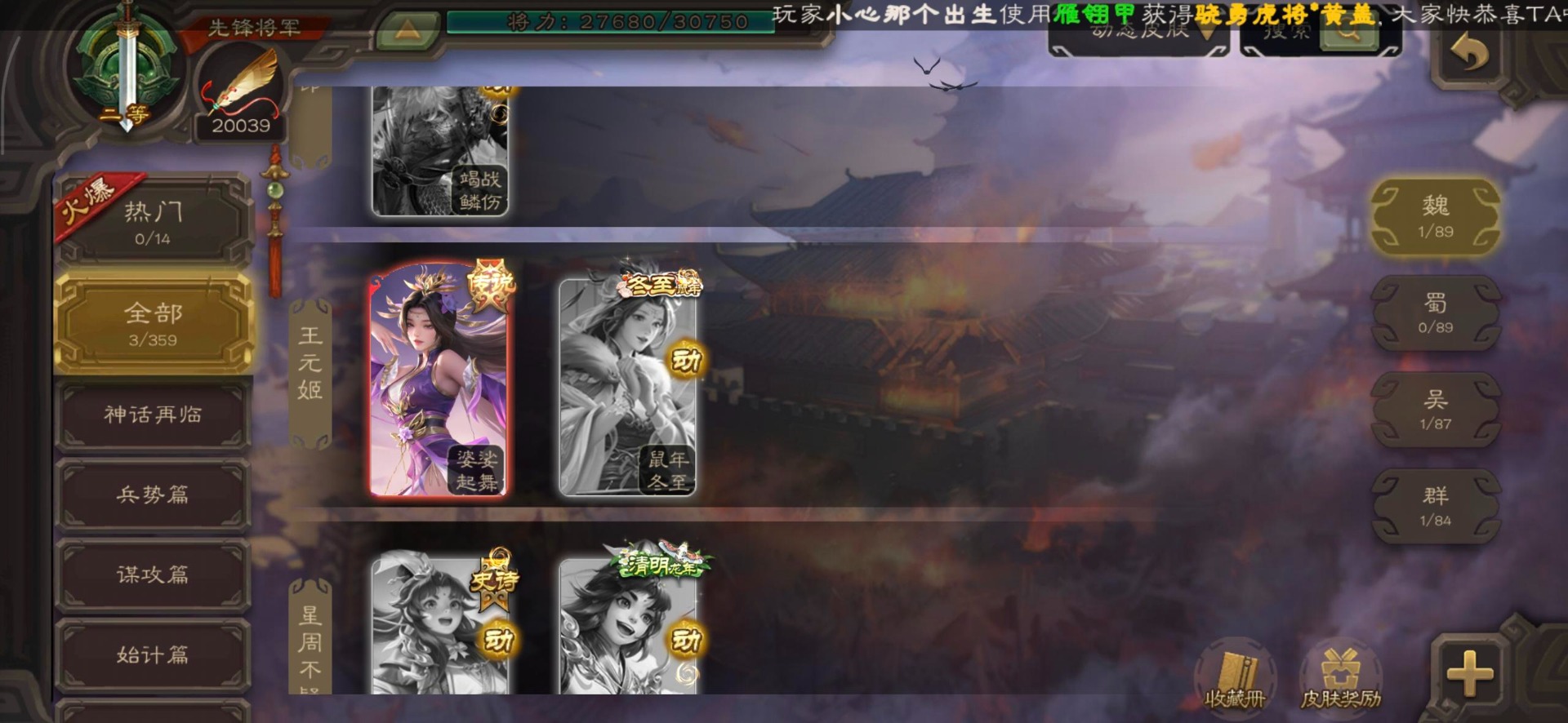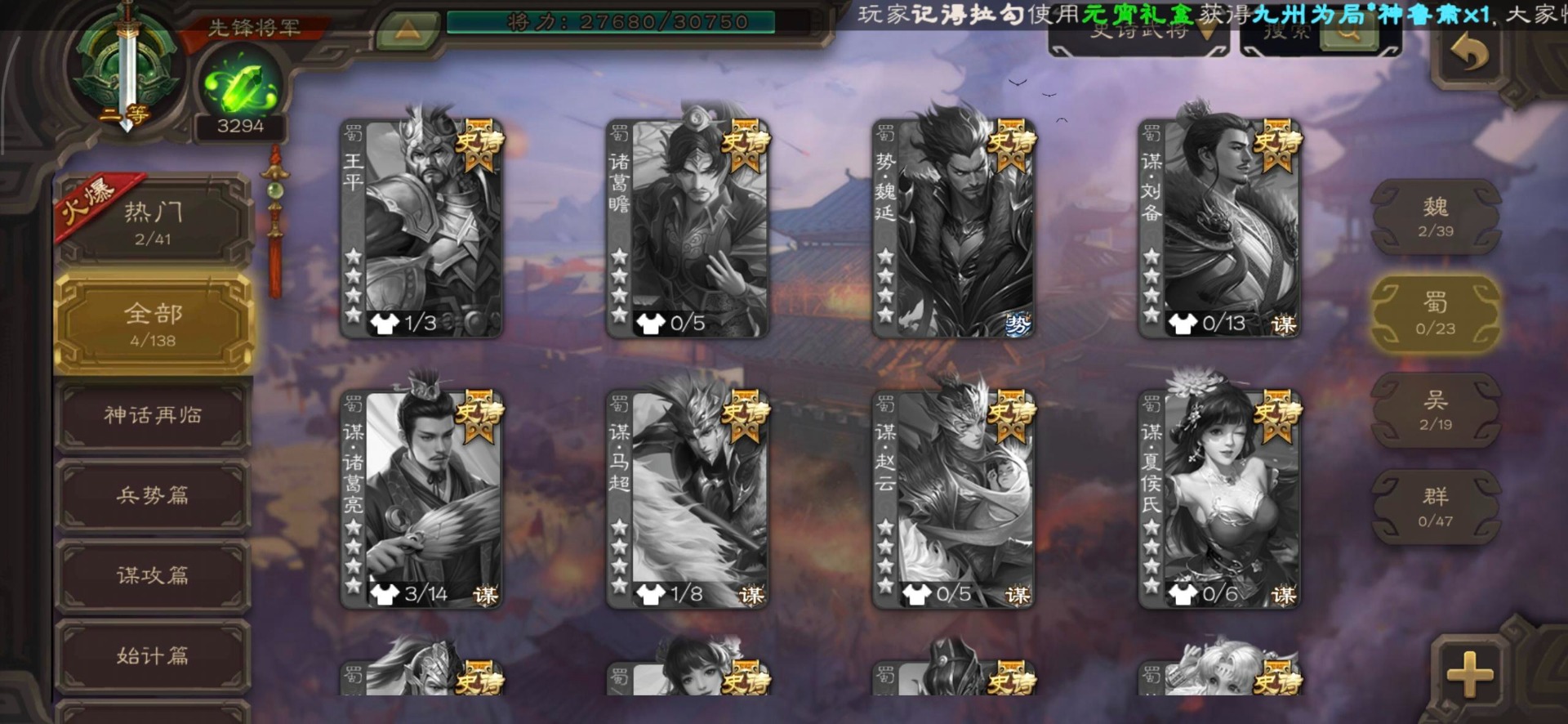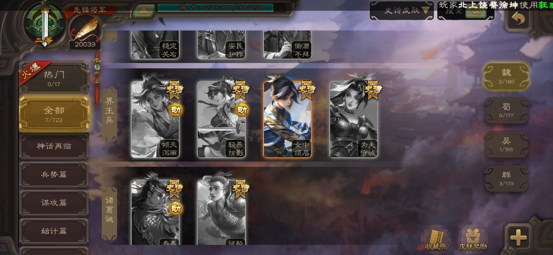 [16520504]vip3 先锋将军 144武将 3动态皮肤 4史诗武将 【魏国武将】星周不疑王元姬界司马懿界夏侯惇界张辽界曹操邓艾夏侯渊甄姬司马懿许褚夏侯惇荀彧郭嘉曹仁曹丕曹操张辽 【吴国武将】势太史慈界徐盛
