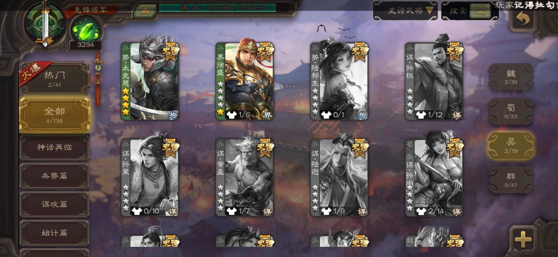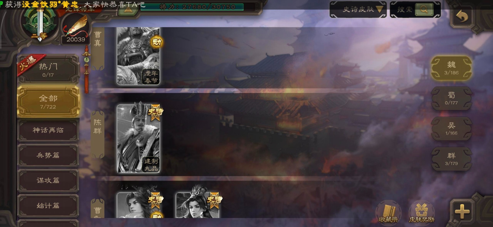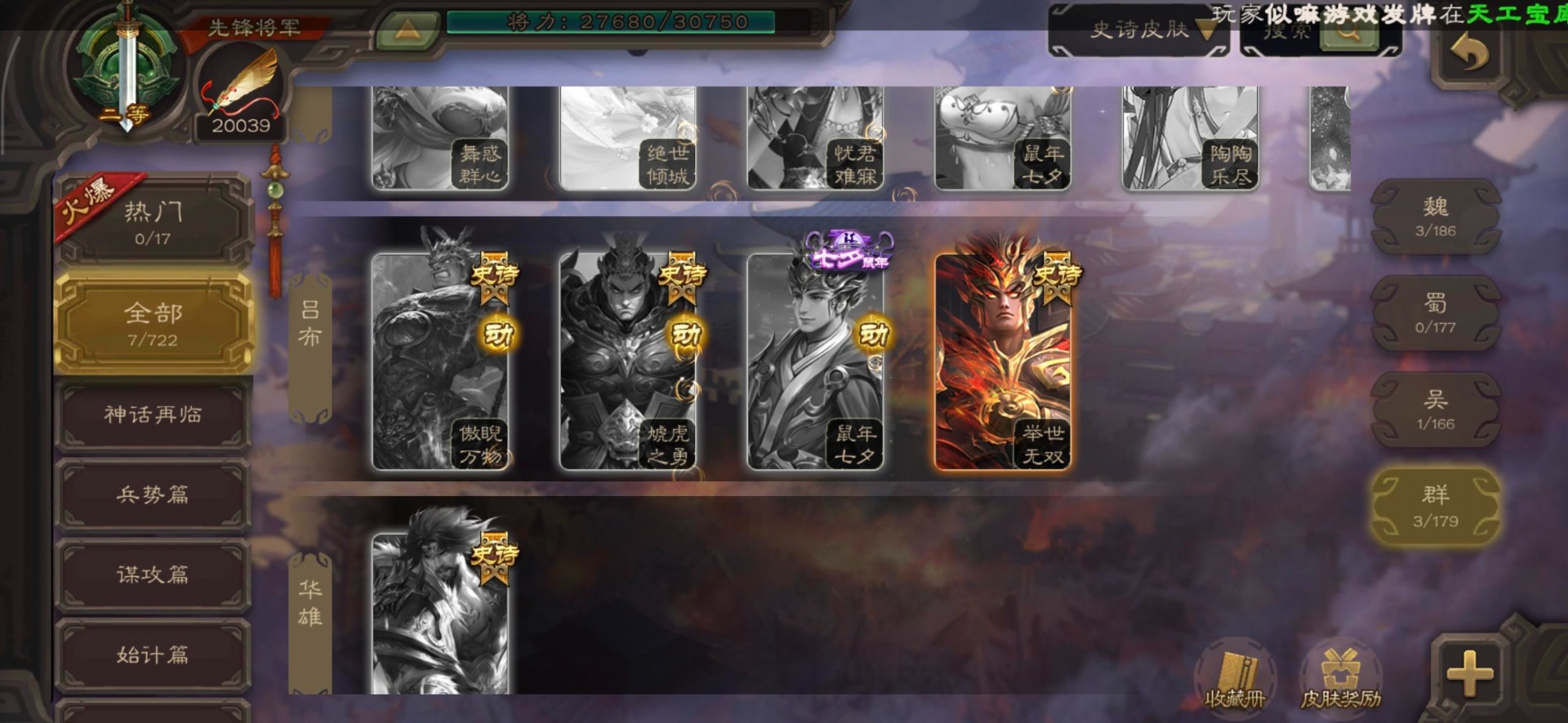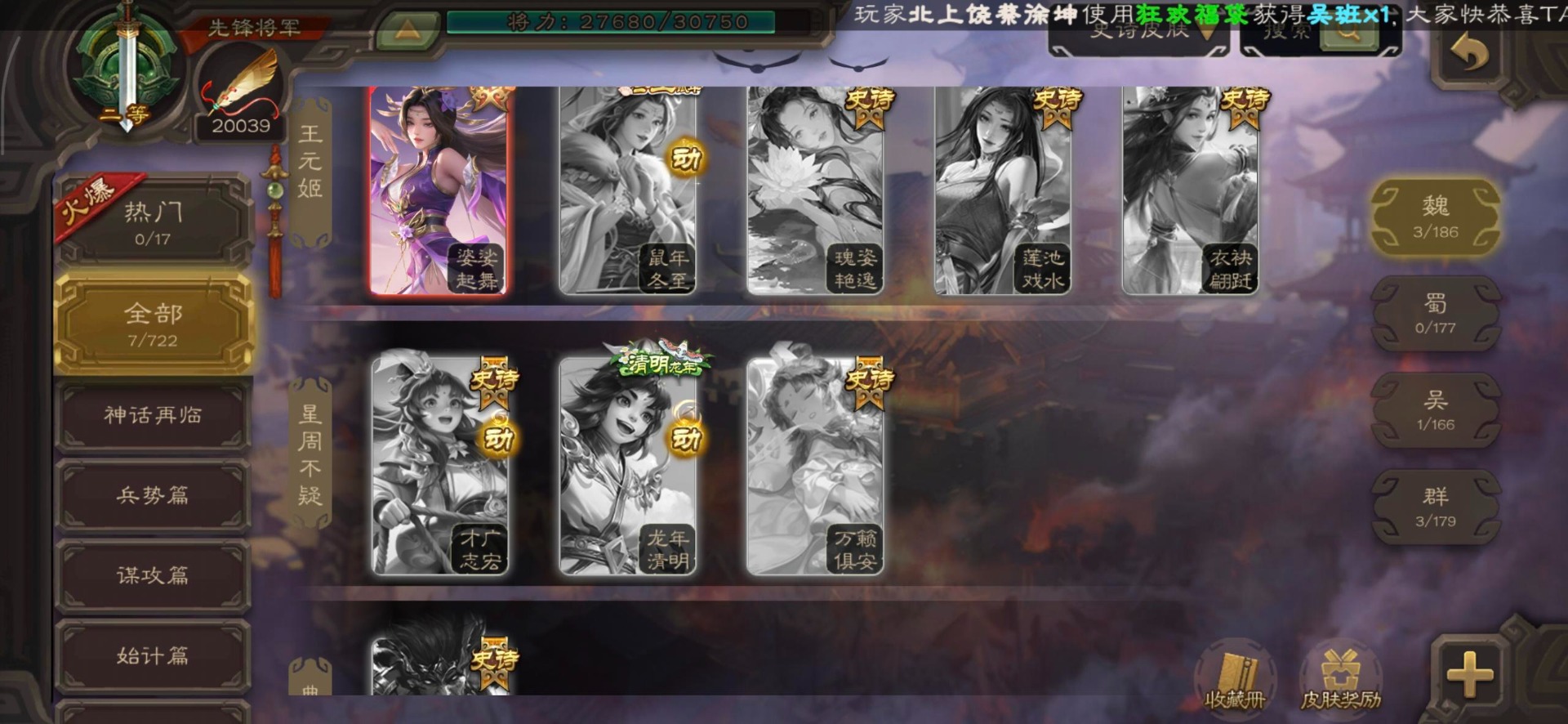 [16520504]vip3 先锋将军 144武将 3动态皮肤 4史诗武将 【魏国武将】星周不疑王元姬界司马懿界夏侯惇界张辽界曹操邓艾夏侯渊甄姬司马懿许褚夏侯惇荀彧郭嘉曹仁曹丕曹操张辽 【吴国武将】势太史慈界徐盛