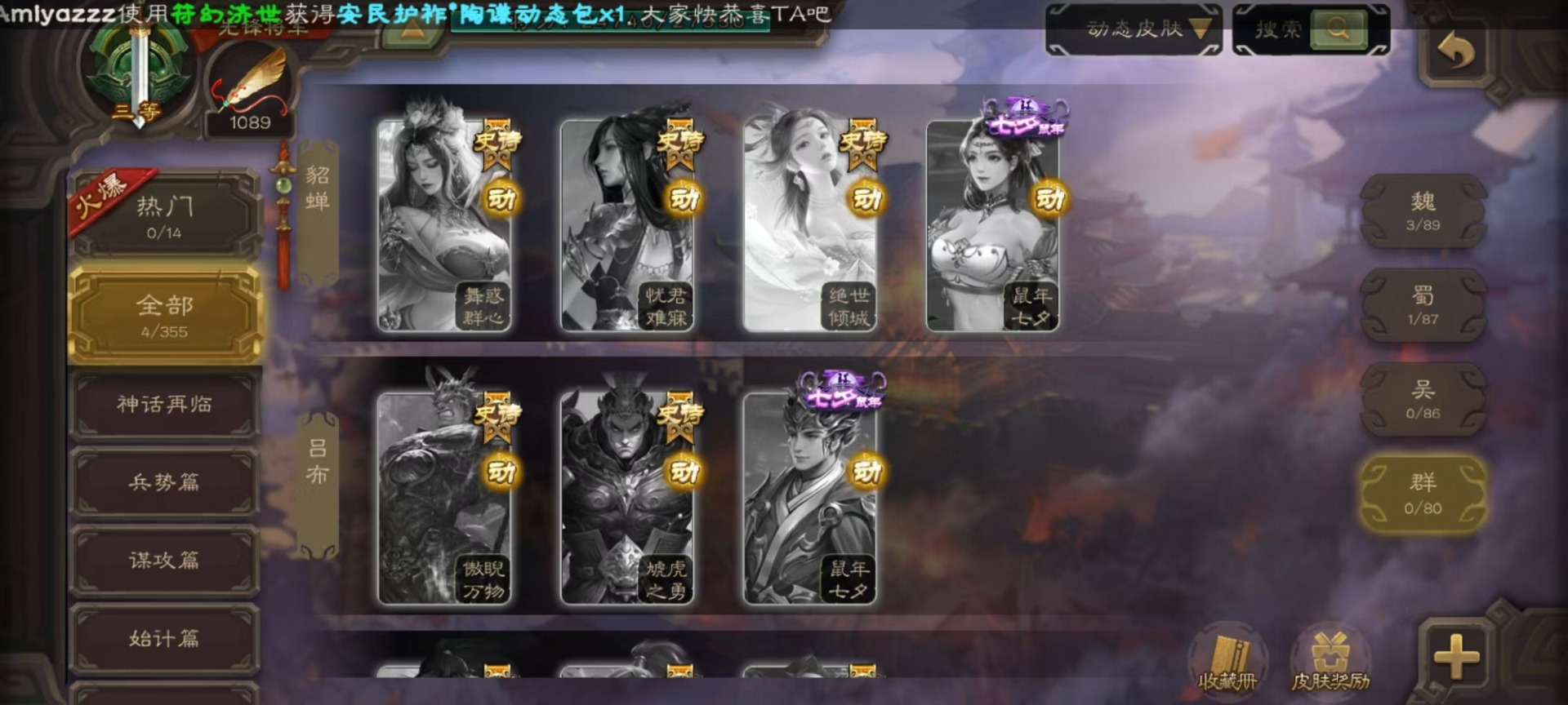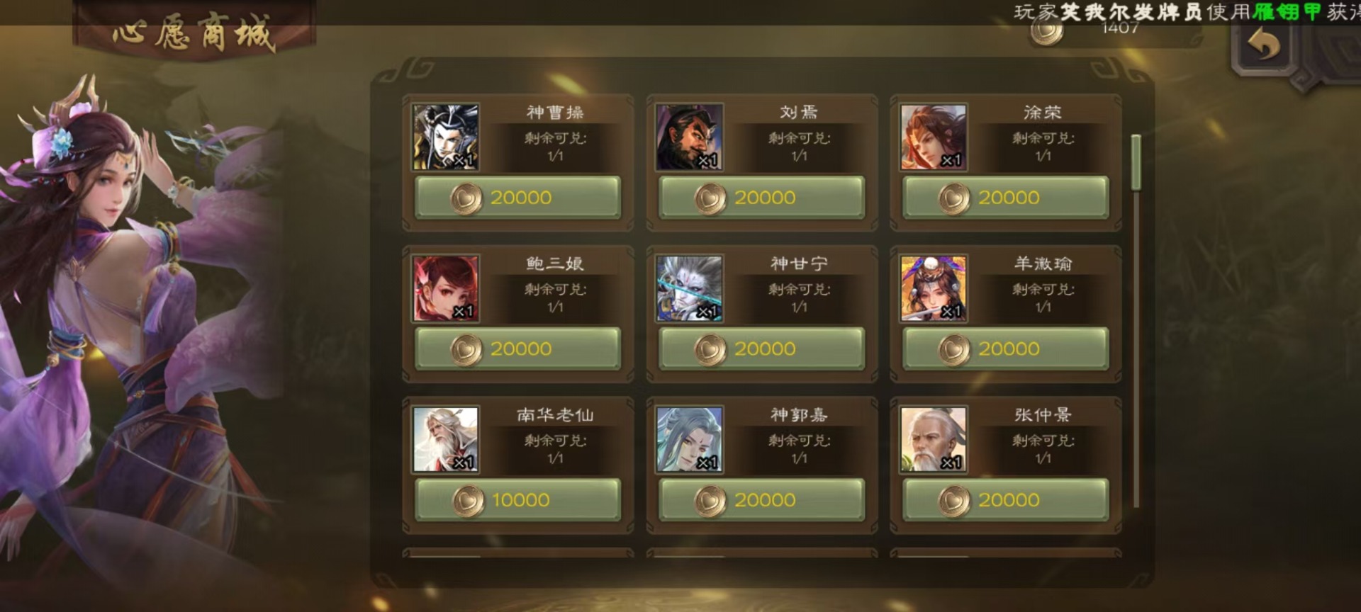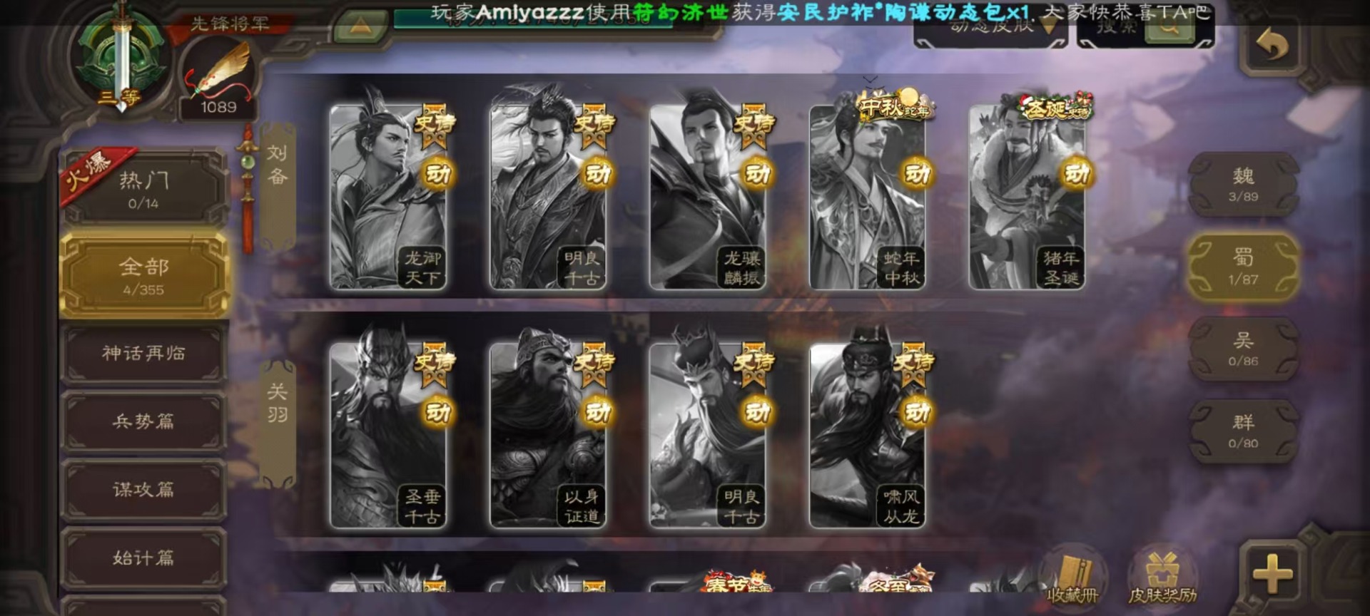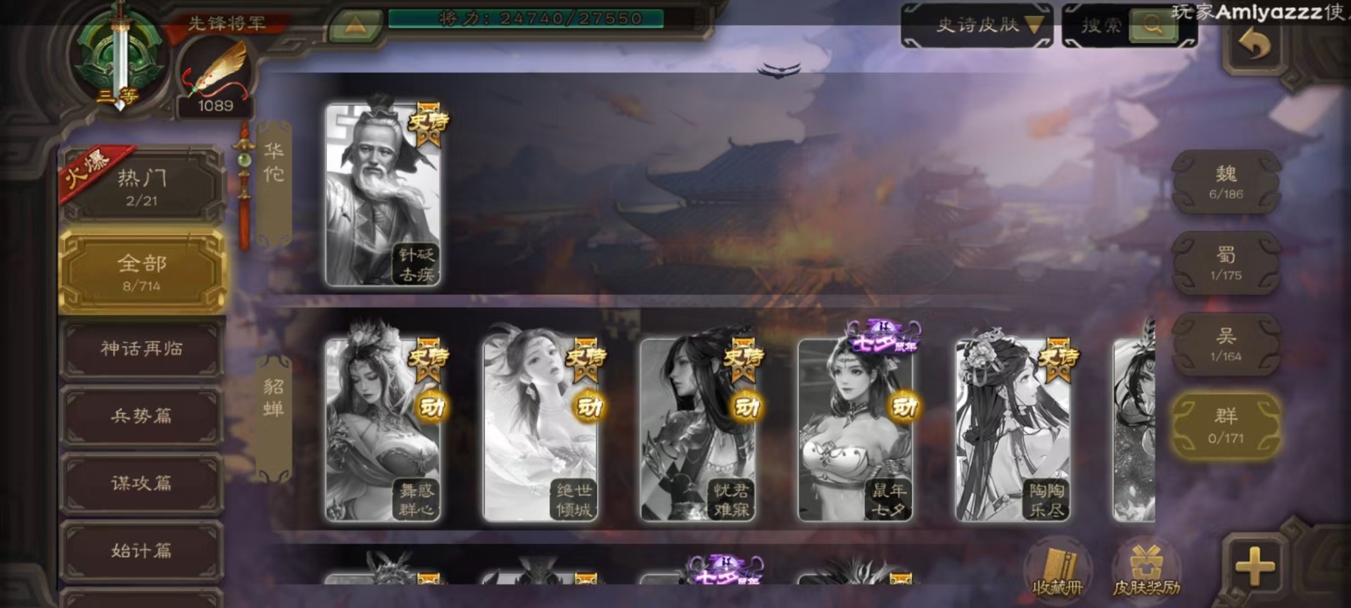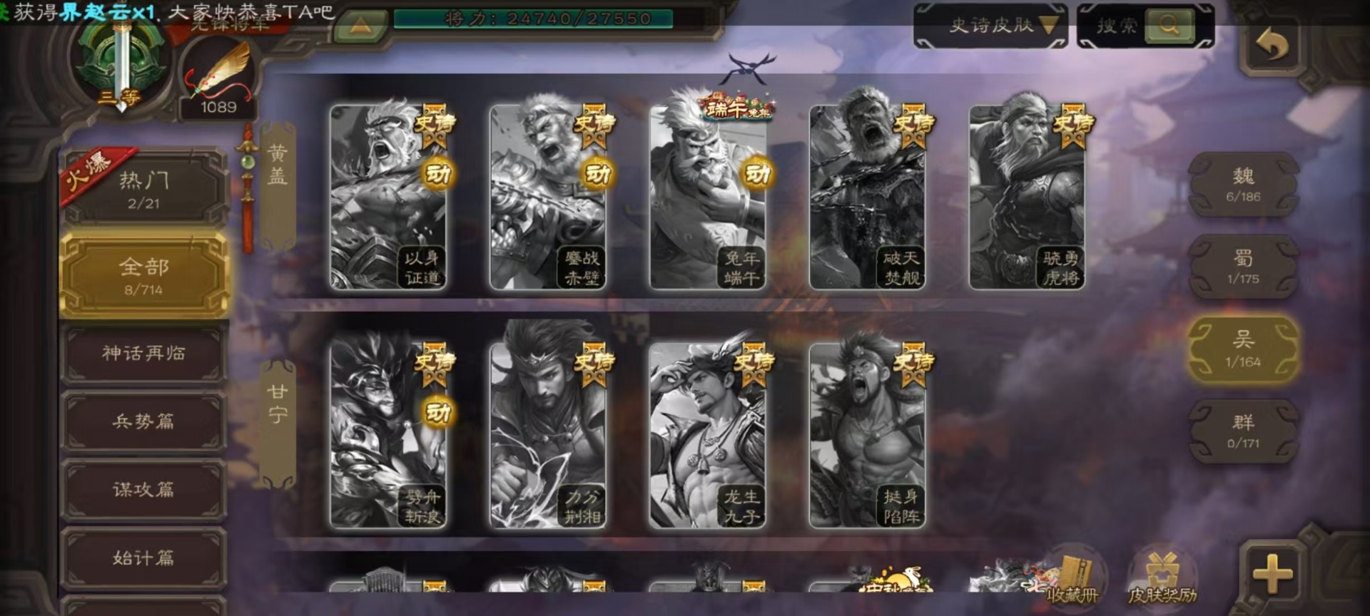 [16520826]vip3 先锋将军 134武将 4动态皮肤 3史诗武将 【魏国武将】:曹婴甄姬司马懿许褚夏侯惇郭嘉曹仁曹操张辽 【蜀国武将】:谋诸葛亮花鬘