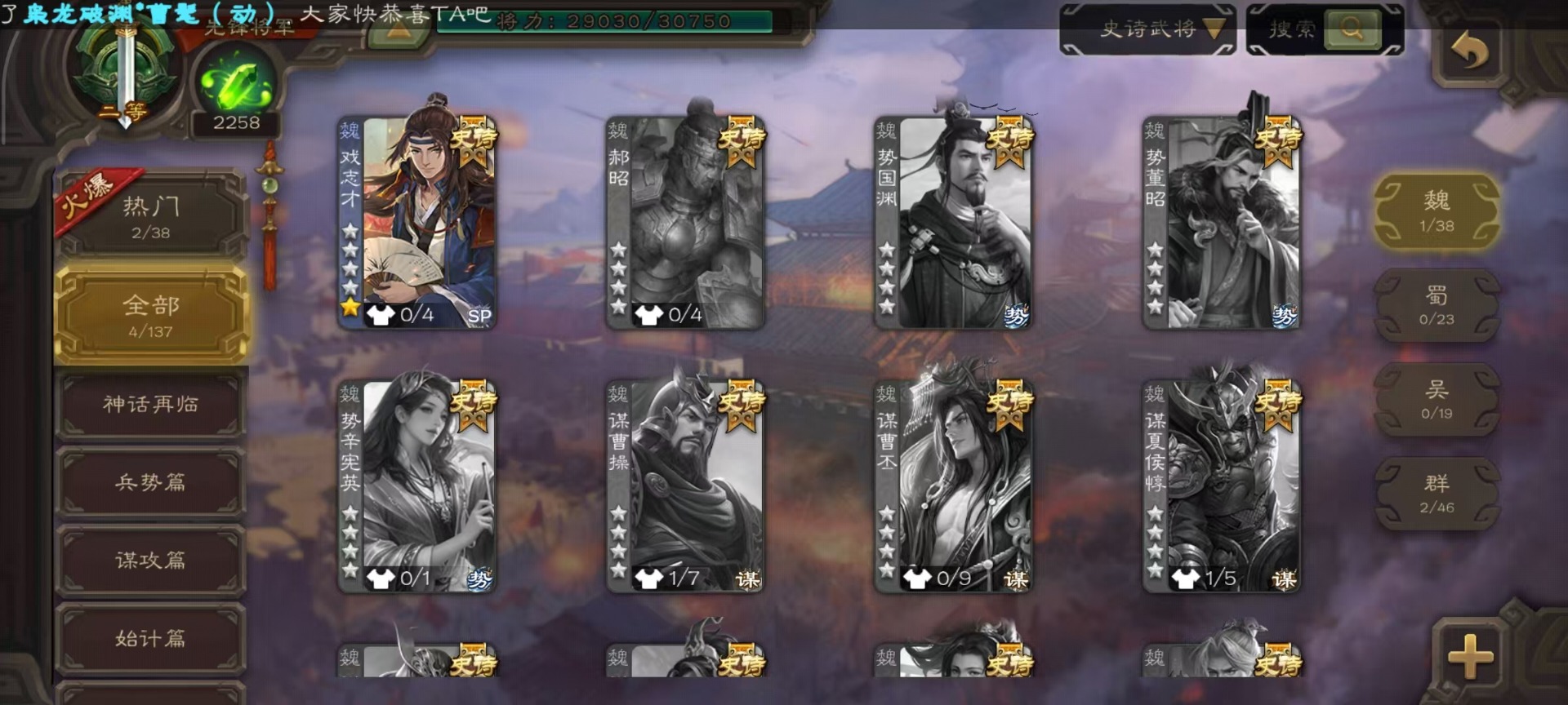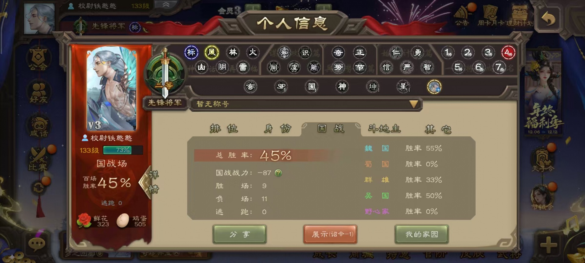 [16529607]vip3 先锋将军 150武将 3动态皮肤 4史诗武将 单神郭嘉 【神将】:神郭嘉 【魏国武将】:戏志才 【群国武将】:星甘宁沮授