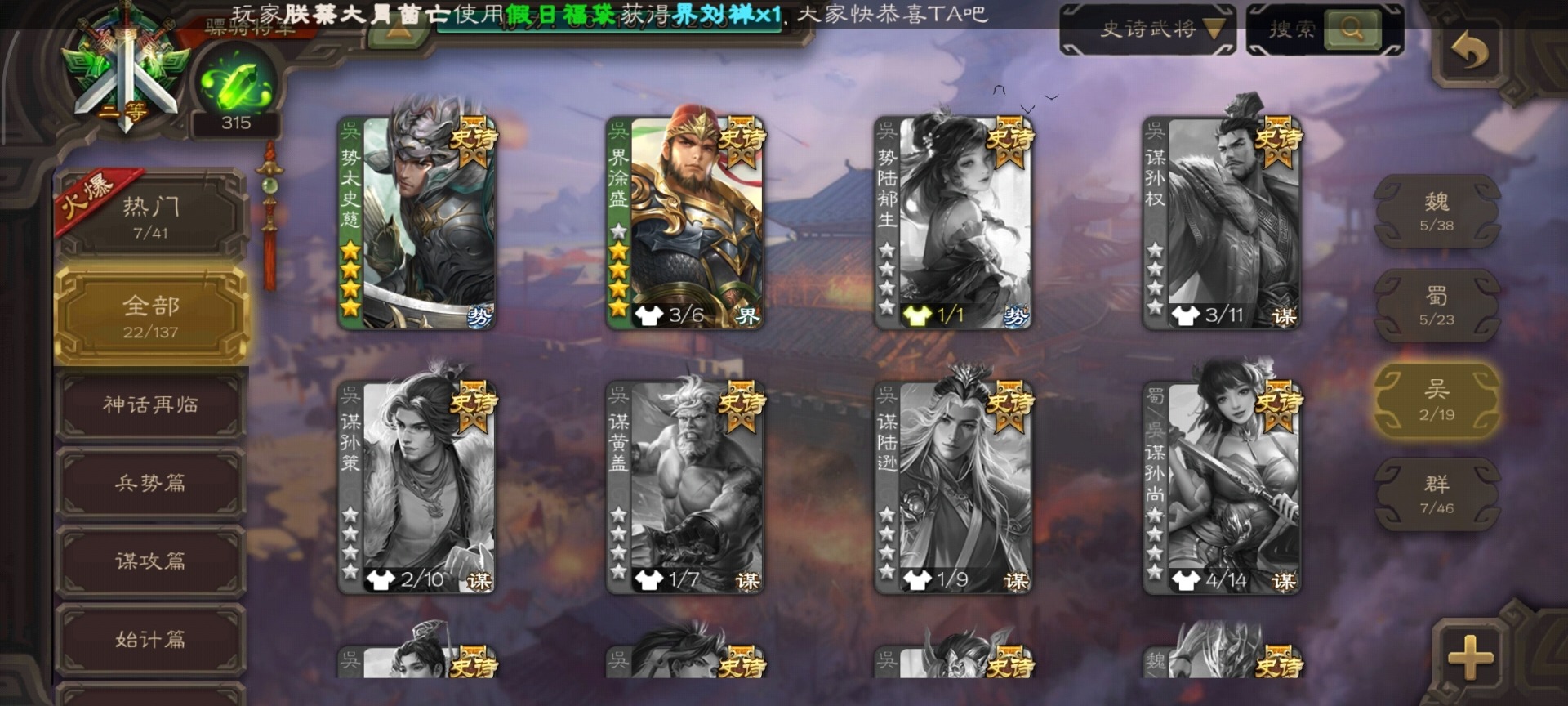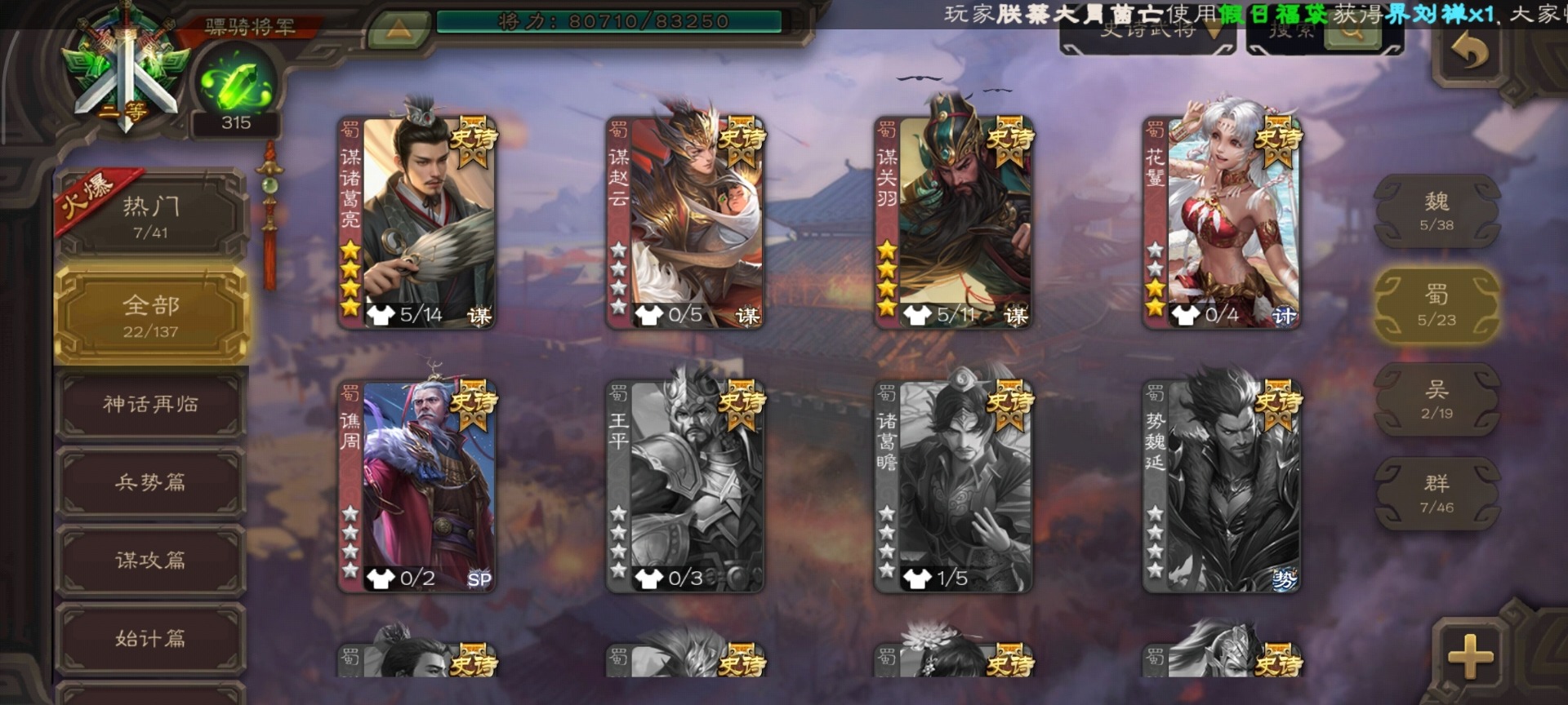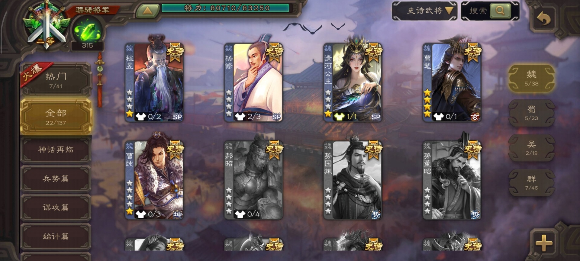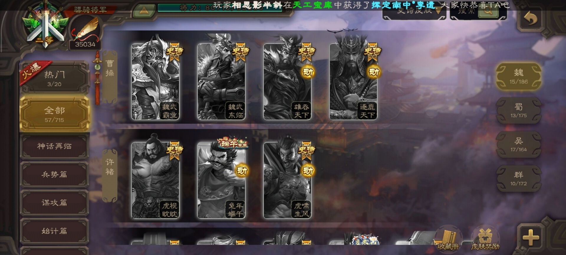 [16530490]vip8 骠骑将军 286武将 24动态皮肤 22史诗武将 【神将】神吕布神陆逊神郭嘉 【魏国武将】清河公主曹髦杨修程昱曹纯 【蜀国武将】谋诸葛亮谋赵云谯周花鬘谋关羽 【吴国武将】势太史慈界徐盛 【群国武将】星董卓郑玄张让兀突骨界左慈卑弥呼谋张角