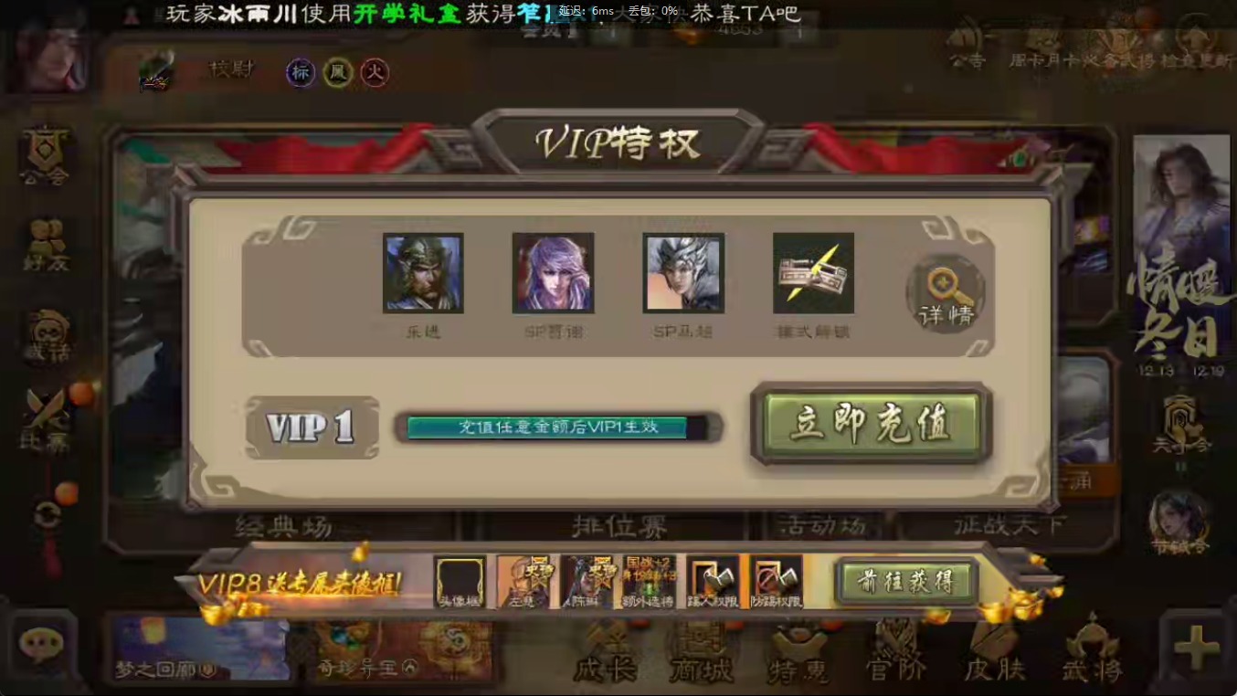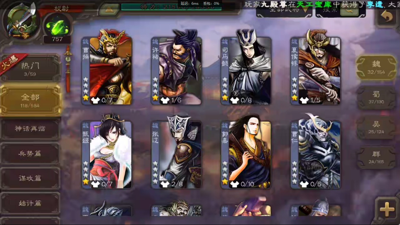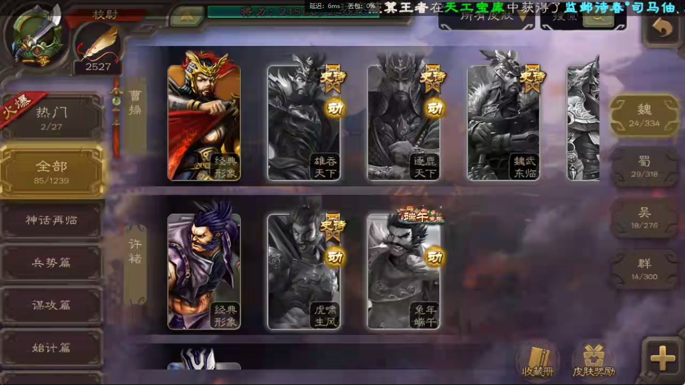[16547874]vip1 校尉 118武将 3动态皮肤 2史诗武将 【魏国武将】:甄姬司马懿许褚夏侯惇郭嘉曹仁曹操张辽 【蜀国武将】:关索 【吴国武将】:势太史慈