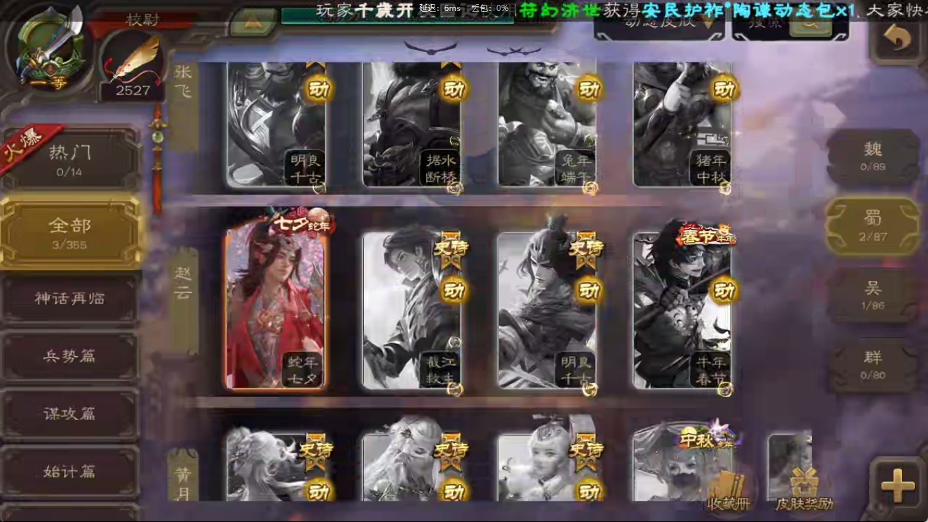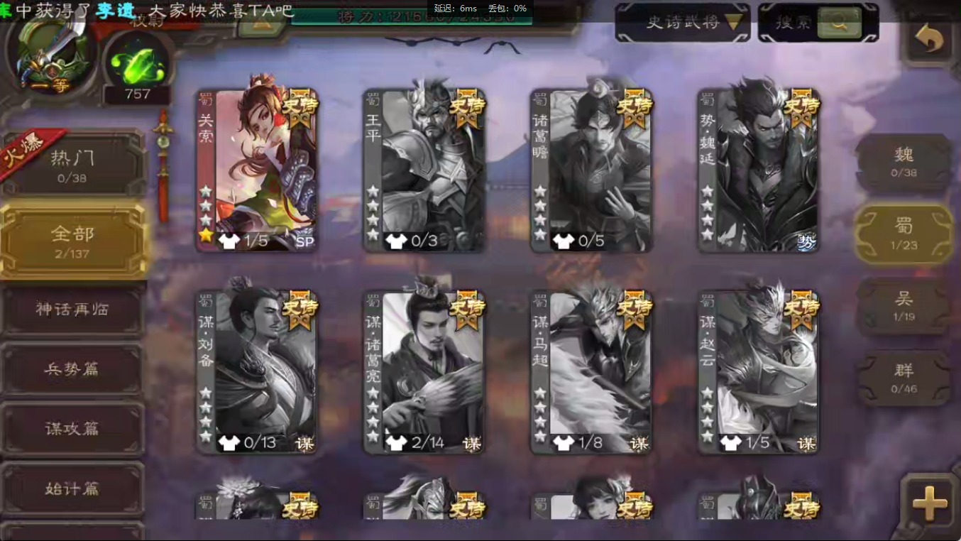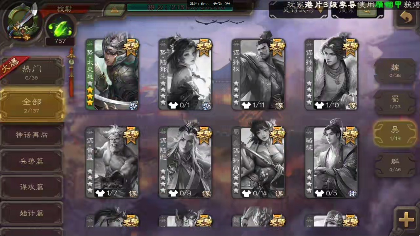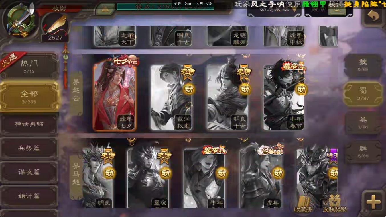 [16547874]vip1 校尉 118武将 3动态皮肤 2史诗武将 【魏国武将】:甄姬司马懿许褚夏侯惇郭嘉曹仁曹操张辽 【蜀国武将】:关索 【吴国武将】:势太史慈