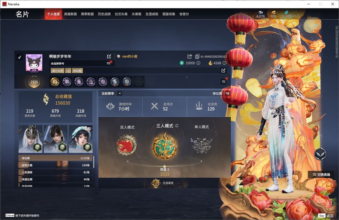 wj1143,网易手机,9月26可换绑,三人段位陨星5,8红,222金,绿野守护竹韵悠,帝星,龙雀,狼主,如意金箍棒,狂龙,苍穹之光,赤皓新囍,沙漠香风,至纯,盛夏白阳,活动中心手机绑定无法解绑,找回包赔,