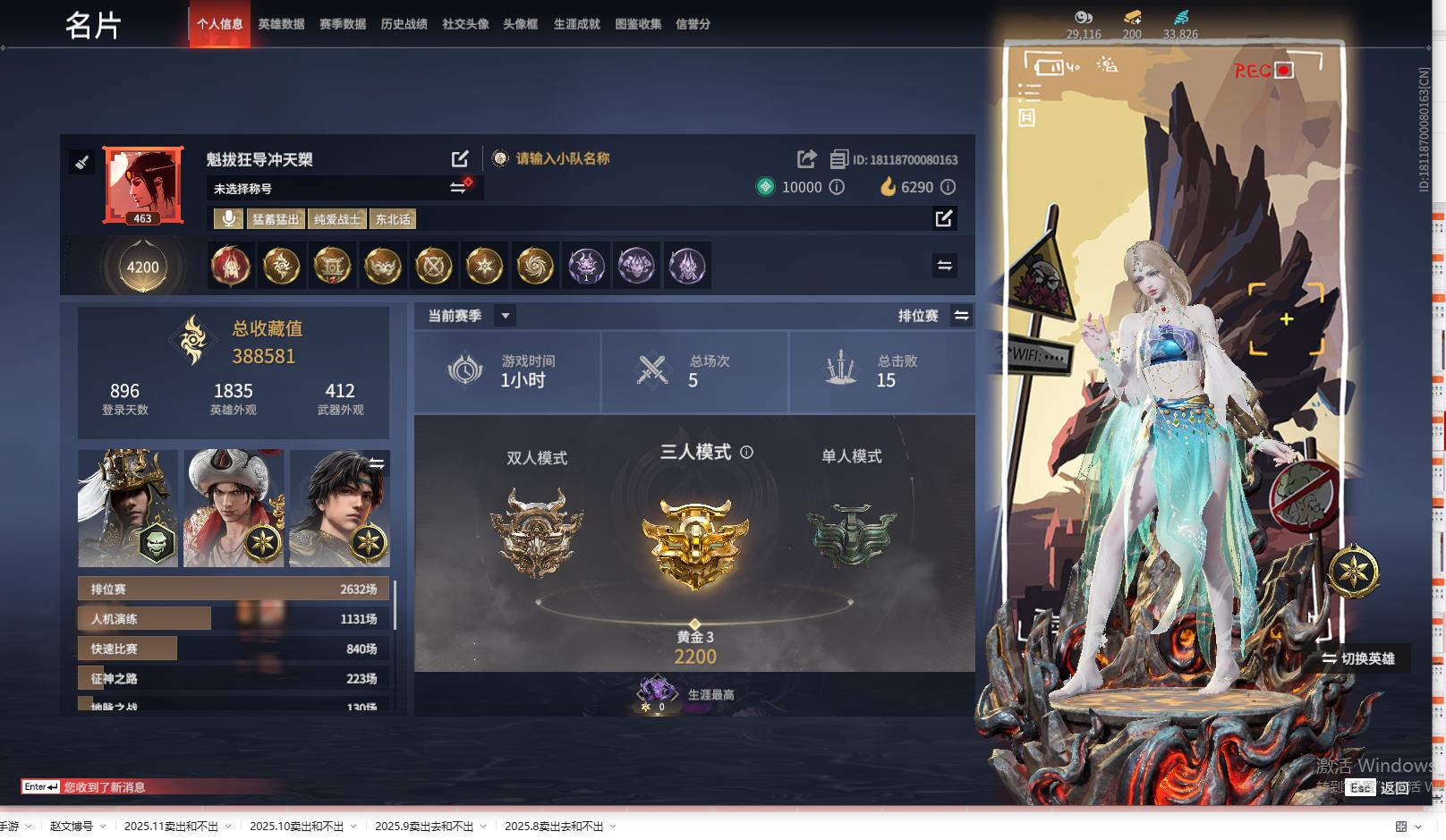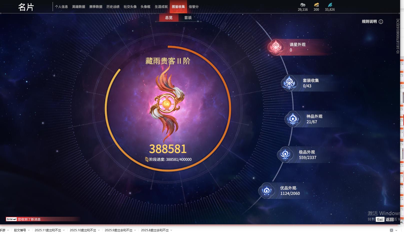 [13364819]yjj582/12.5换绑/等级463/s18三人黄金3/21红559金收藏值388581/墨离/星辉魔纱/化生明王/戎金狼/熛怒炼火/蝶梦//青龙将星/香雪水兰/绝代风华//监兵凶神/夜魅游莹/通天狐袄/天罚/苍穹之光/少阳剑/灵狐幻刃/2674九阴/帝星/烈阳//狂龙/凤求凰/2674·初代机/神乌造像//御翔云/龙之影·精武魂/洛天依星轨引航/御宅罗梦(白丝)/夏日派对·弄潮逐浪//西行劫·杨戬/龙之影·过江龙/西行劫·神君印/西行劫·三尖两刃刀/幻丝32826/已绑定手游