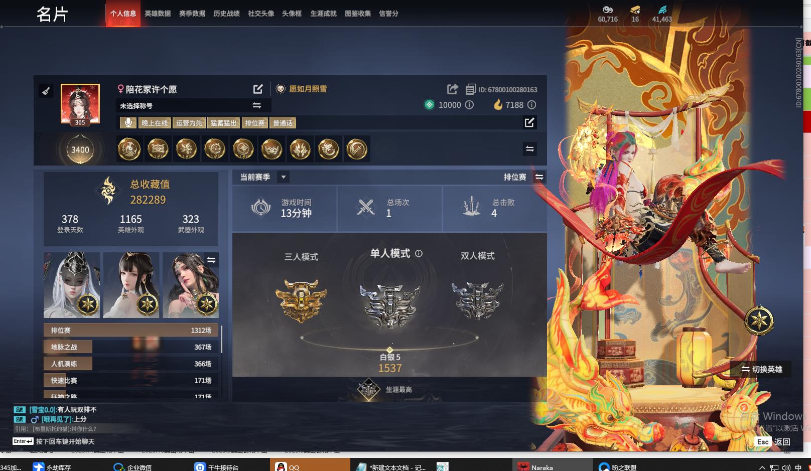 [13573467]yjj648/12.11换绑/等级305/s18三人黄金3/13红461金收藏值282289/赤皓新囍/墨离/化生明王/香雪水兰//沙漠香风/执明神君/流金晓锦/太玄之刃/帝星/龙雀/狼主/飞将戟/灵犀//2674原型/璃光·星辉环月//绿野守侯竹韵悠/观山海春木/信手斩龙//御翔云/炎烈珠/洛天依星轨引航/御宅罗梦(白丝)//洛天依共鸣/龙之影·过江龙//西行劫·杨戬//龙之道·无拘/夜蔷薇/龙之道·灵心/幻丝41463/已绑定手游/