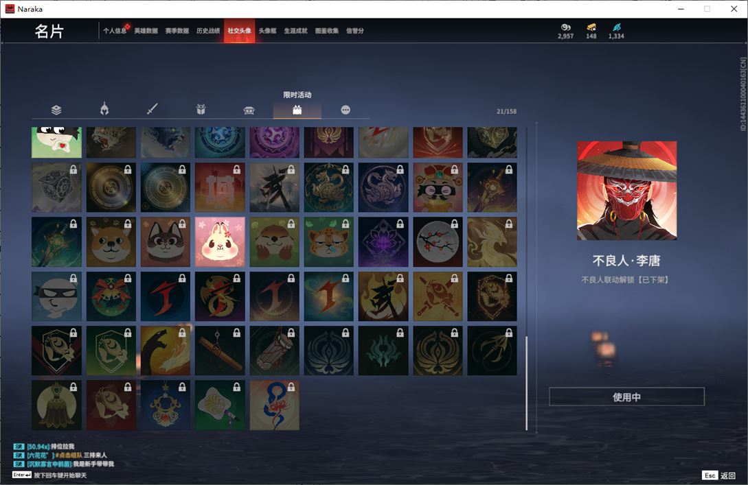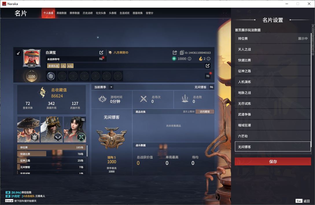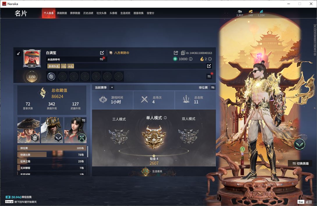 wj2679,网易邮箱,12月17可换绑,三人段位铂金4,5红,125金,声望7,凶虎,太玄之刃,龙雀,天罚,蝶梦,流金晓锦,过江龙,醒狮,数珠丸,尽春锋,雷王锯,听涛,星辉环月,建木,幽冥吟,仙舞,嘶风,胧夜狐影,云朵咩咩,白熊,鹅黄纱梦,游四海,星空投影,鸢纱,蜇龙吟,凛冬,赤焰战灵,活动中心手