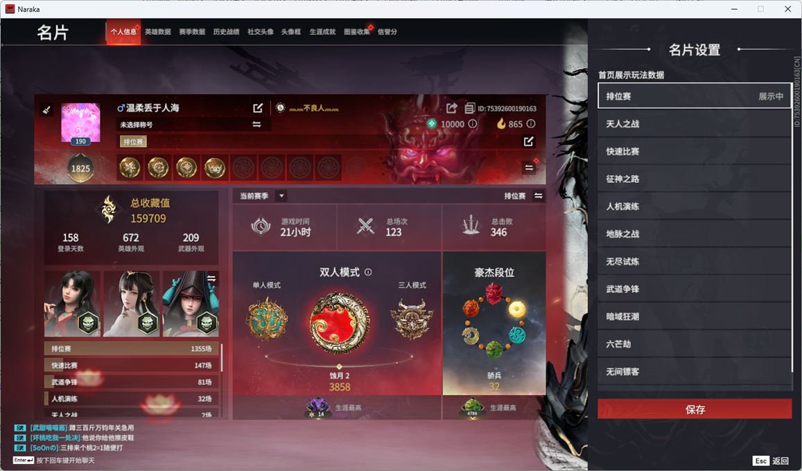 wj8684,网易手机,12月16日可换绑,三人段位铂金2,声望1,7红,260金,噬骨,霜翎,夜蔷薇,帝星,龙雀,狼主,赤皓新囍,星辉魔纱,化生明王,泣珠龙纱,过江龙,灵心,午后瑰夏,弄潮逐浪,翠影,龙泉剑,含光承影,腾云歌,昆仑之主,碧水青天,八宝龙王,瑶光沐月,御宅罗梦,清雅少女,金财聚辉,活