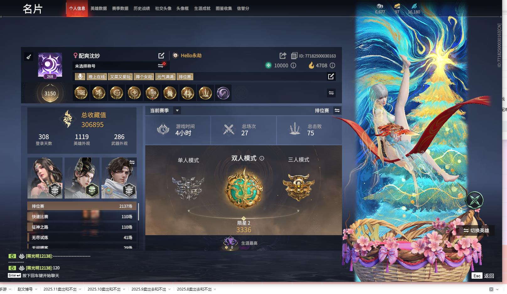 [13999833]yjj771/12.25换绑/等级268/s18三人黄金1/19红379金收藏值306895/初代玄女/化生明王/戎金狼/熛怒炼火/樱云天女/沙漠香风/监兵凶神/通天狐袄/化道者/流金晓锦/天罚/赤帝炎轮/少阳剑/比羿/龙雀/飞将戟/锦鲤玉扇/狂龙/惊百里/西行劫·三尖两刃刀/龙之影·生死局/御翔云/龙之影·过江龙//西行劫·神君印/夏日派对·昭夏流金/揽九天/夏日派对·半夏晚风/幻丝16180/未绑定手游