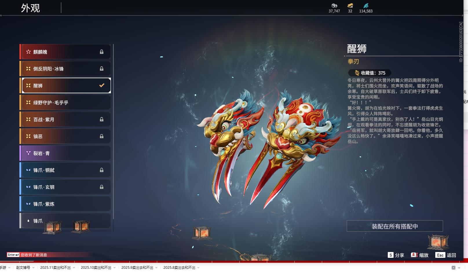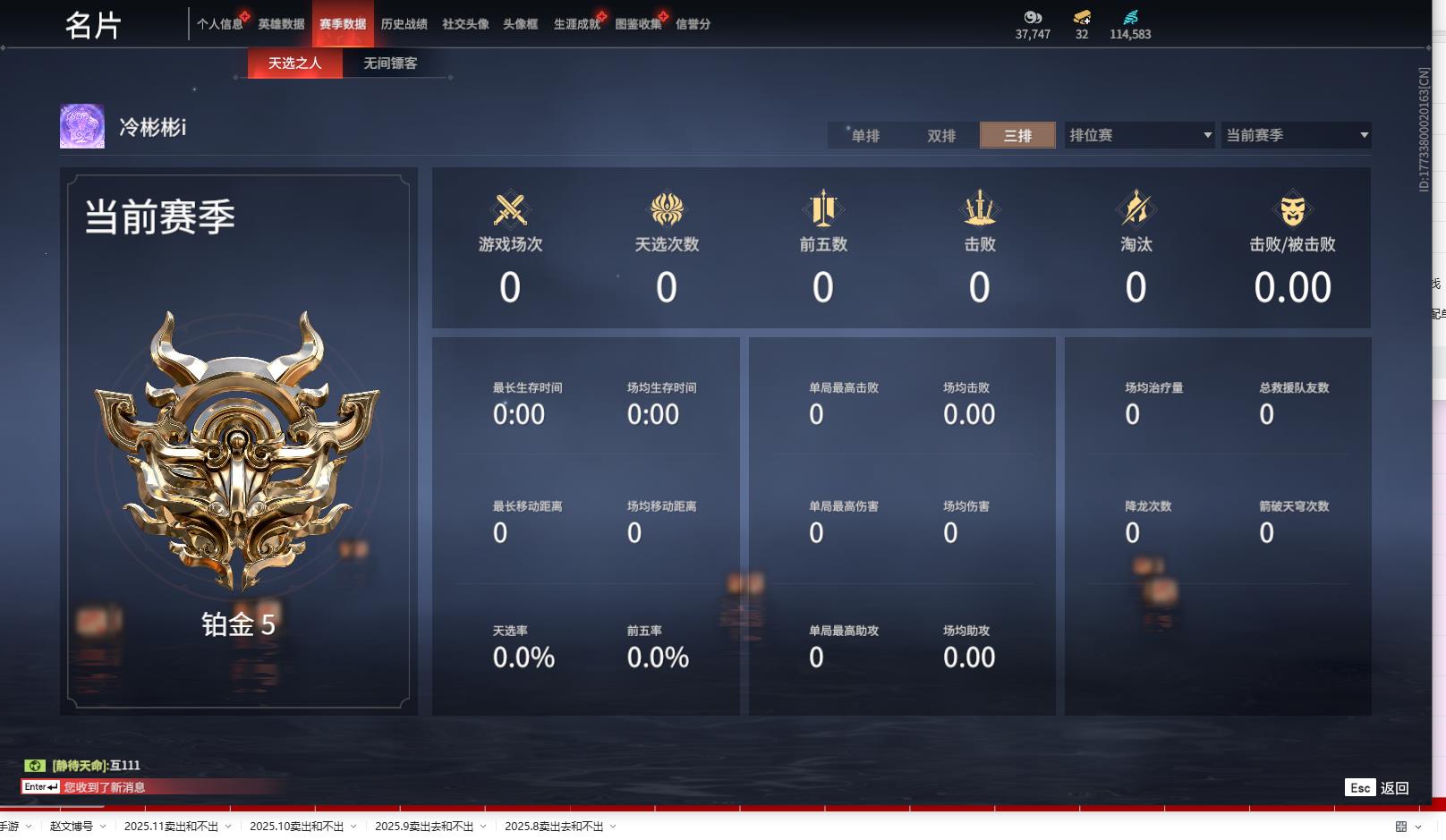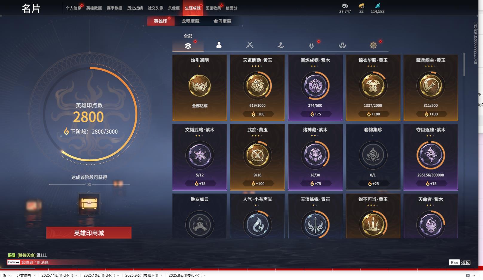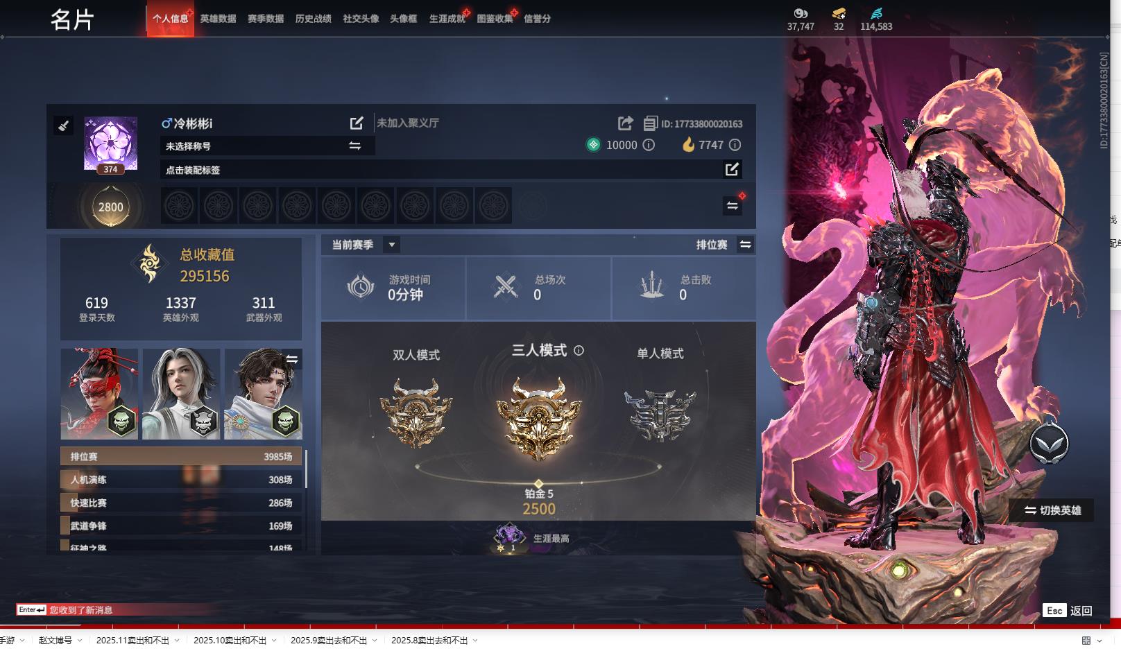 [14095167]yjj805/12.28换绑/等级374/s18三人铂金5/18红416金收藏值295156/初代玄女/墨离/朱雀星衣/化生明王/新倩女幽魂·长天藏锦/戎金狼/熛怒炼火/蝶梦/泣珠龙纱/监兵凶神/苍穹之光/毕方/少阳剑/冰魄/帝星/狼主/飞将戟/狂龙/2674·超越型/御翔云/夏日派对·椰风夕照/御宅花织(黑丝)/龙之影·过江龙//夜蔷薇/幻丝114583/未绑定手游/