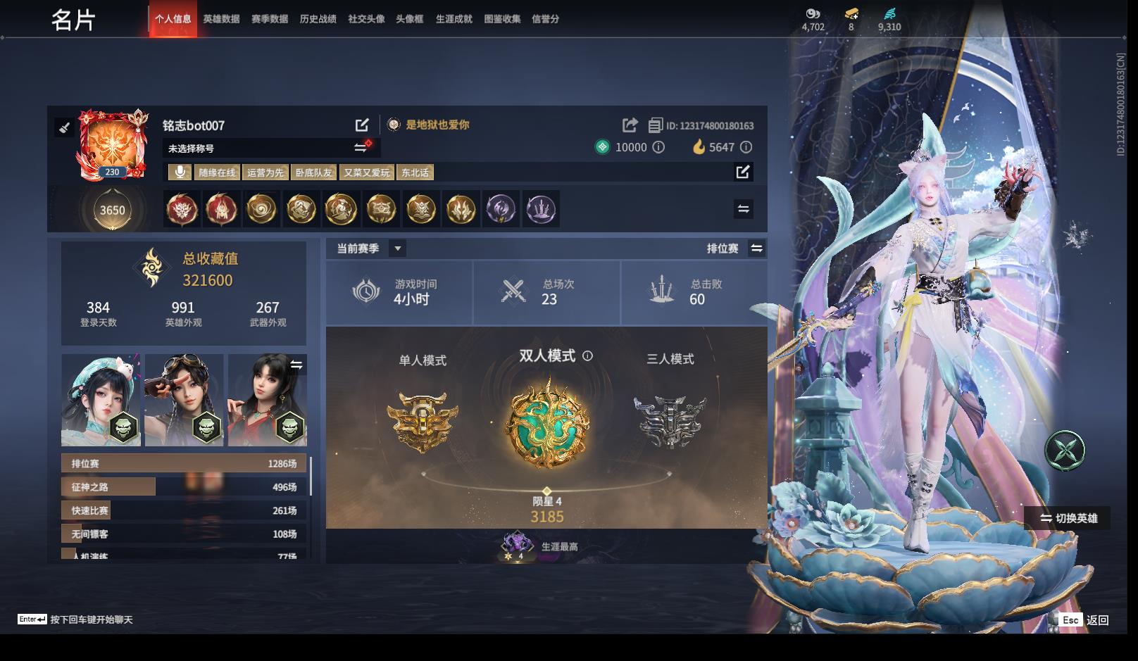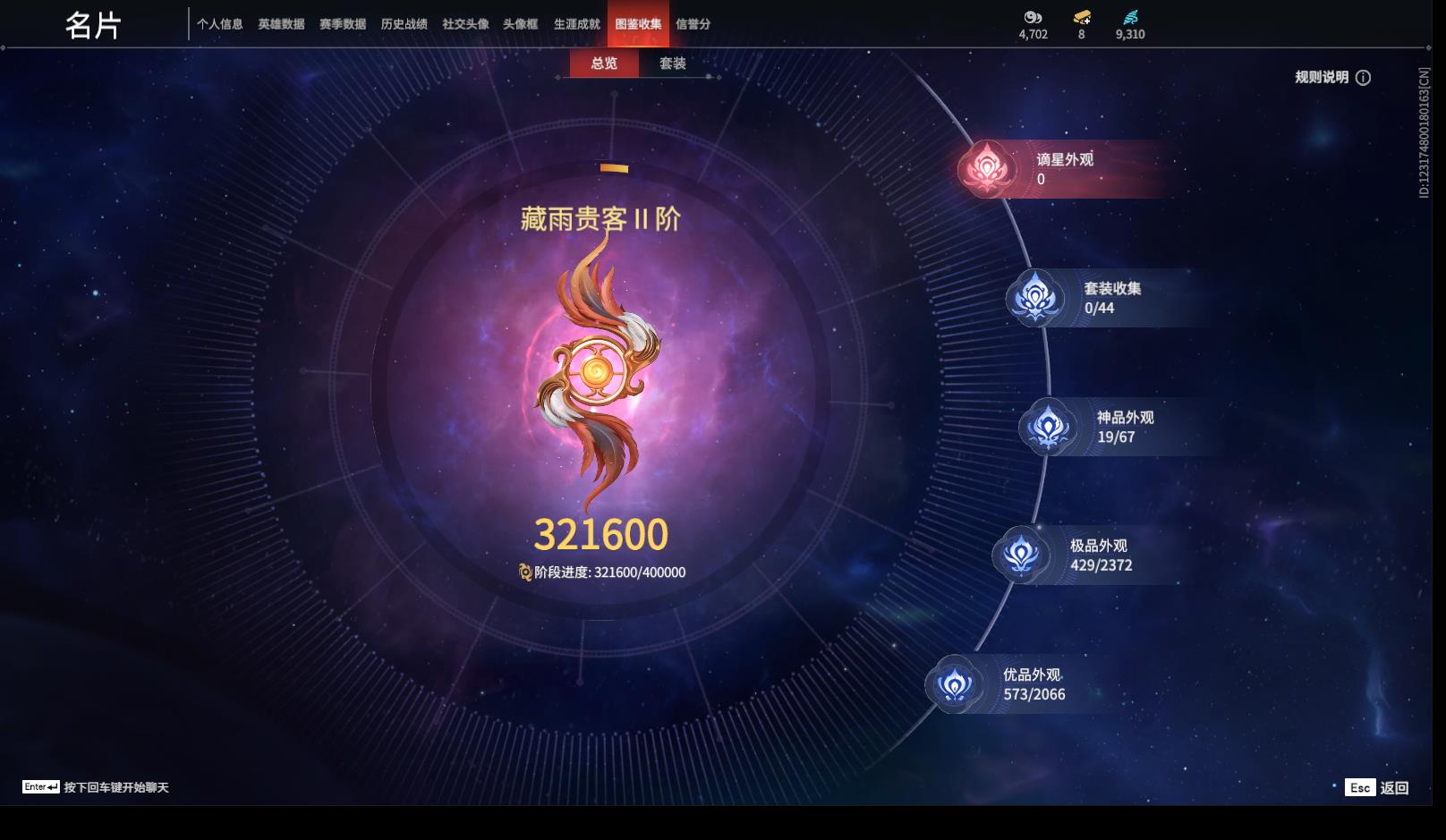 [14153588]yjj833/12.30换绑/等级230/s18三人白银4/19红429金收藏值321600/赤皓新囍/墨离/星辉魔纱/化生明王/樱云天女/蝶梦/凌霄之羽/沙漠香风/通天狐袄/流金晓锦/逐光者/画中仙/苍穹之光/帝星/少阳剑/龙雀/狼主/锦鲤玉扇/狂龙/2674·初代机/御翔云/洛天依·星轨引航/御宅罗梦(白丝)彩俑娃娃/龙之影·过江龙/荆魂/幻丝9310/已绑定手游