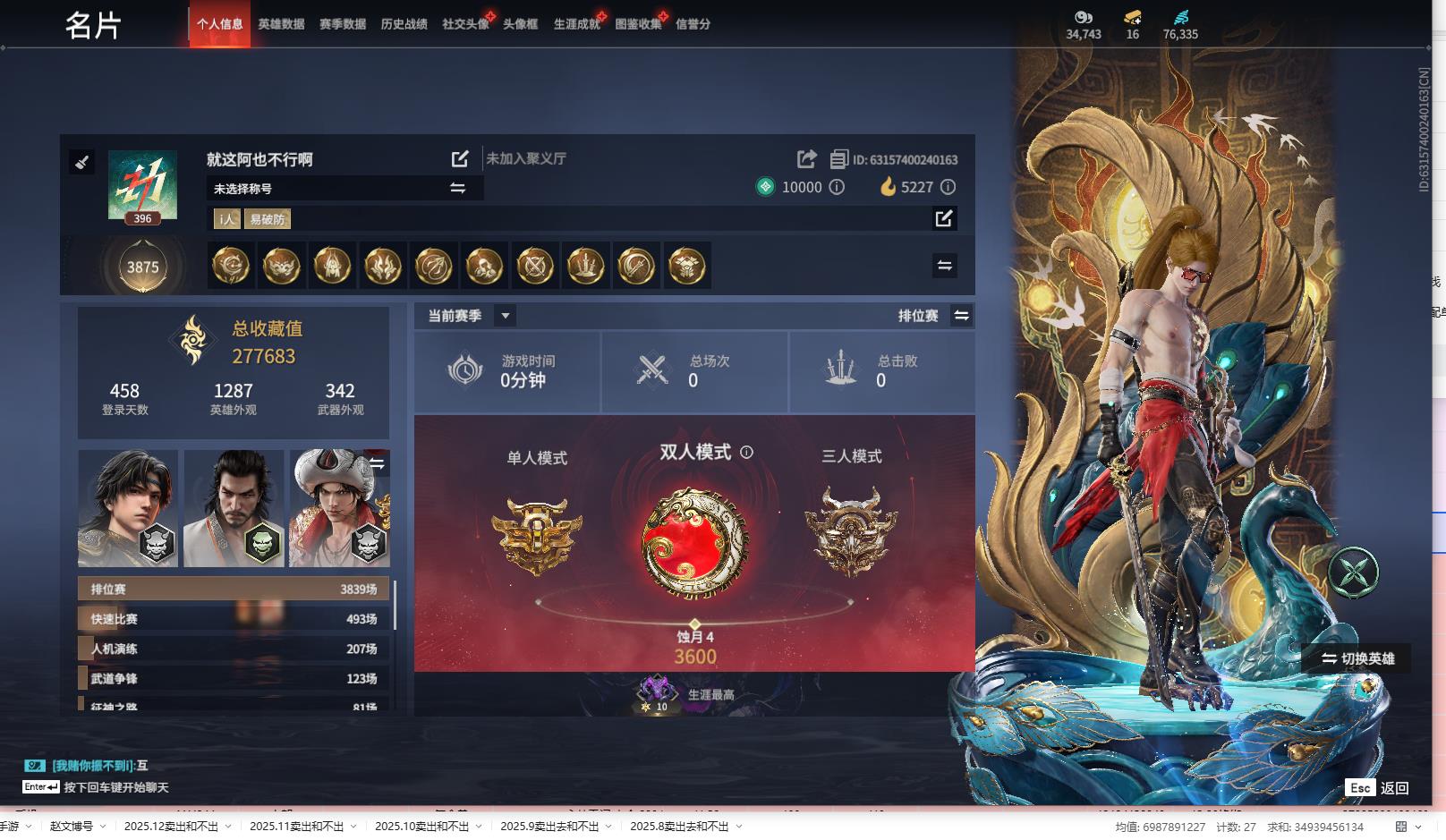 [14155266]yjj836/12.30换绑/等级396/s18三人铂金4/16红478金收藏值277683/初代玄女/墨离/星辉魔纱/化生明王/戎金狼/熛怒炼火/暮光胴丸/夜魅游莹/少阳剑/2674·终极型·紫没原色)帝星/龙雀/狼主/飞将戟/锦鲤玉扇/狂龙/2674·超越型/2674·超越型·紫/龙之道·自知/珥冰/御翔云/信手斩龙/夏日派对·椰风夕照/炎烈珠/洛天依·星空投影/龙之道·无拘/龙之影·过江龙/拳皇勾玉/幻丝76335/已绑定手游