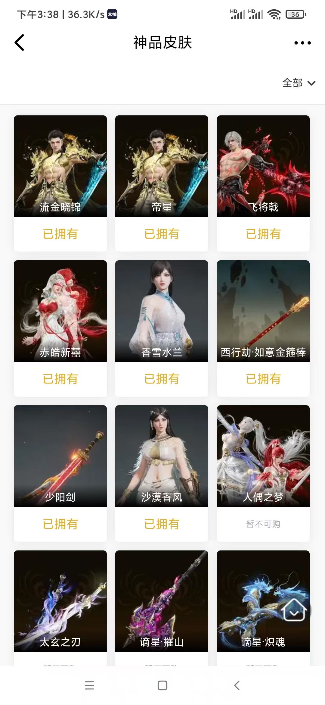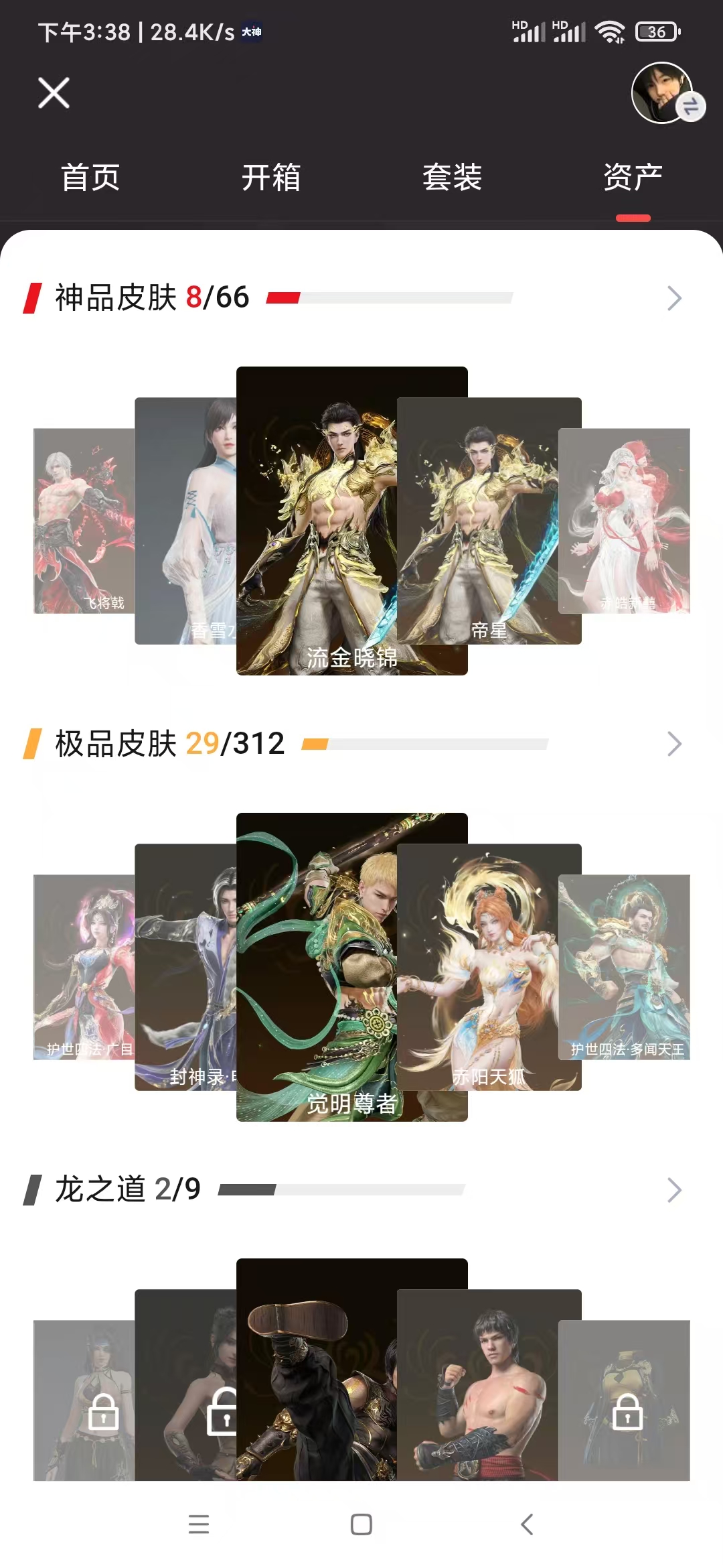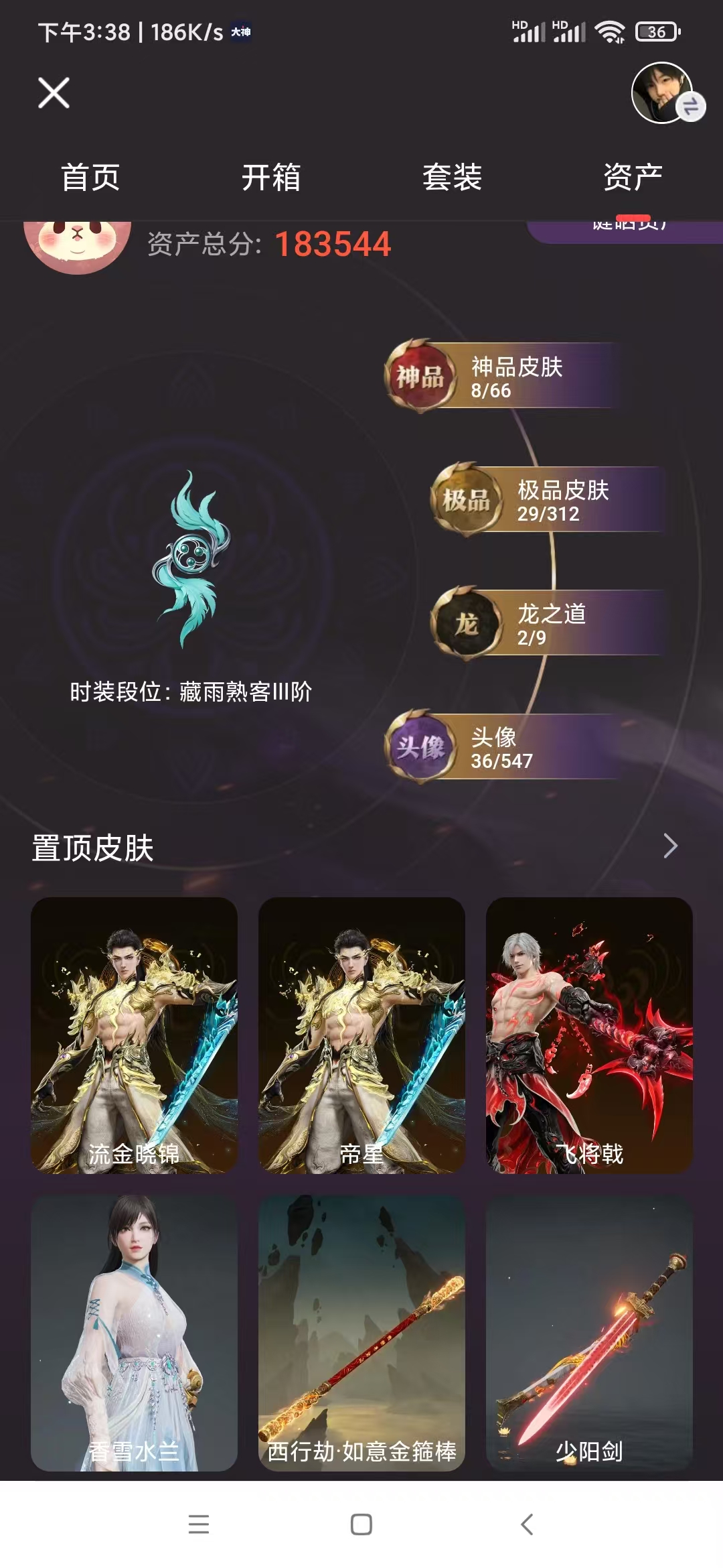 【游戏等级】224 8红 飞将戟 帝星 如意金箍棒 流金晓锦 29金 2龙之道 【大区】国服【龙之道】龙之影·过江龙 龙之影·龙虎斗 【排位】黄金ⅱ 【神品皮肤】流金晓锦 帝星 赤皓新囍 飞将戟 香雪水兰 西行劫·如意金箍棒 少阳剑 沙漠香风 【极品皮肤】觉明尊者 赤阳天狐 护世四法·多闻天王 护世四法·广目天王 封神录·申公豹 楚韵九歌·湘夫人 斗罗大陆·唐三 夏日派对·盛