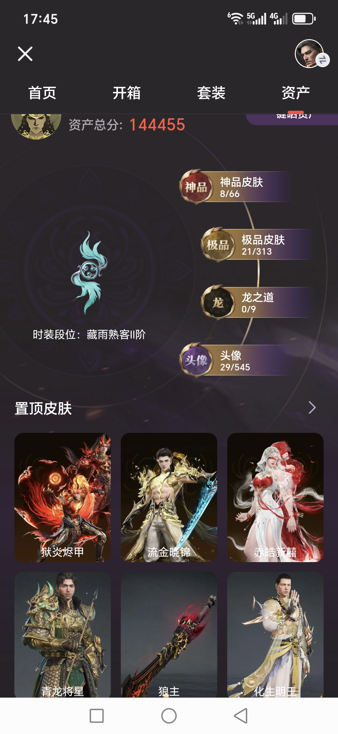 【游戏等级】151【大区】国服【8红 流金晓锦 飞将戟 暮光胴丸】【排位】黄金ⅴ【神品皮肤】龙雀 狱炎烬甲 流金晓锦 赤皓新囍 飞将戟 青龙将星 暮光胴丸 狼主 化生明王【极品皮肤】倒反阴阳·炽羽 赤焰战灵 寿竹云春 金财聚辉 护世四法·持国天王 天工奥妙 日影花阴 蛰龙吟 追猎 御宅罗梦 游四海 新倩女幽魂·瑶光沐月 清雅少女 九阴圣女 华夏宝甲·汉光 弘毅袍 赤丹朱湛 朝闻