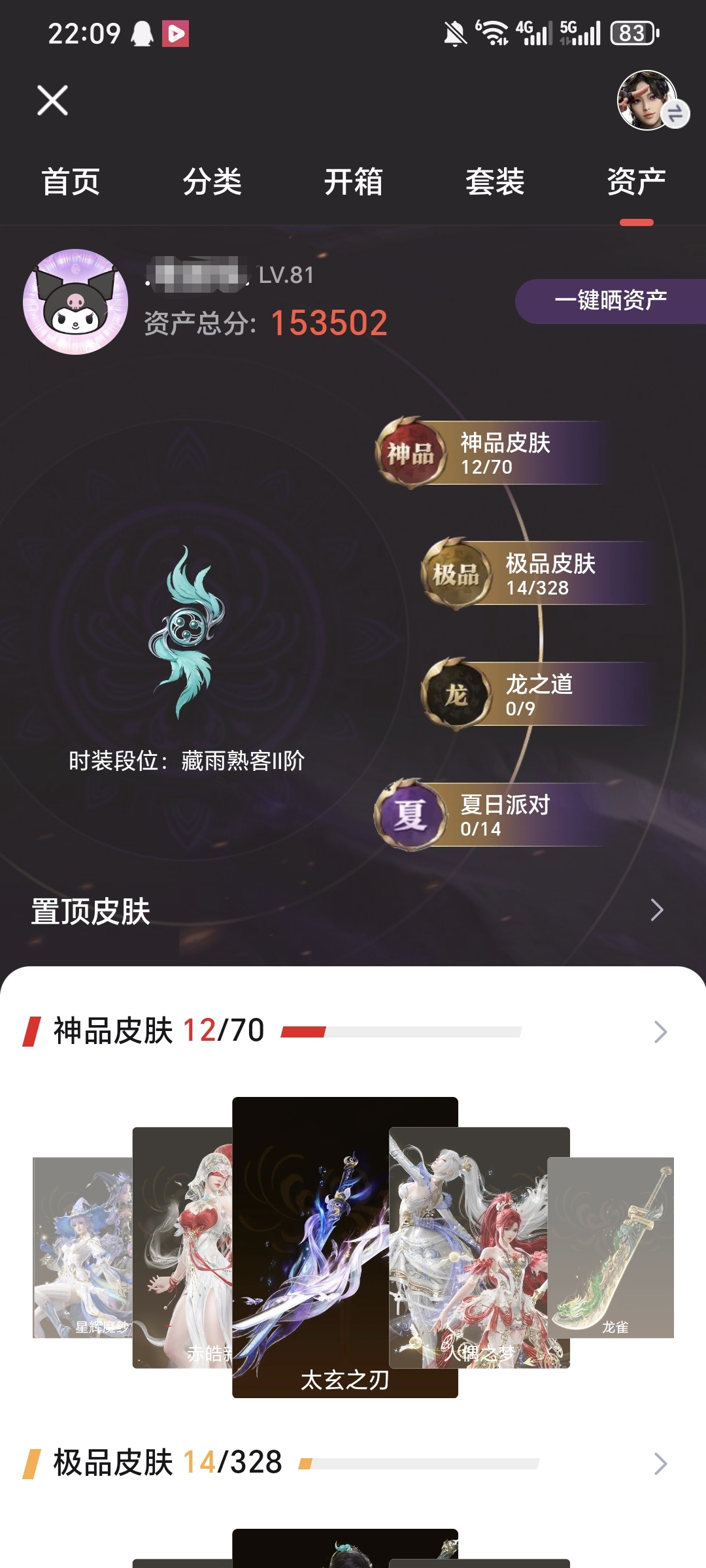 【12红 14金 太玄之刃 人偶之梦 飞将戟 解绑时间1.2】【游戏等级】81 【大区】国服 【排位】青铜ⅲ 【神品皮肤】太玄之刃 人偶之梦 龙雀 星辉魔纱 赤皓新囍 飞将戟 泣珠龙纱 凌霄之羽 狼主 化生明王 初代玄女 毕方 【极品皮肤】开辟鸿蒙·风雨谐 寿竹云春 金财聚辉 赤焰战灵 开辟鸿蒙·金戈止 蛰龙吟 新倩女幽魂·瑶光沐月 常胜袍 追猎 清雅少女 赤雾烟霞 不良人·李
