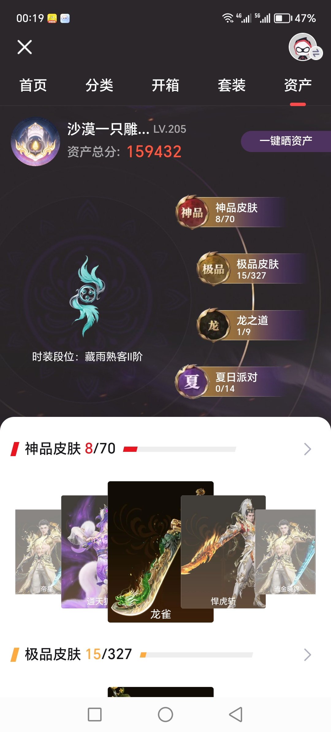 【8红 15金 1龙之道 悍虎斩 帝星 通天狐袄 换绑时候1.8】【游戏等级】205【大区】国服【神品皮肤】龙雀 流金晓锦 悍虎斩 帝星 通天狐袄 狂龙 蝶梦 天罚 【极品皮肤】西行劫·蜘蛛精 2674·争斗洪流 观山海·精卫 不良人·李星去 秋藏桂 暖冬茶馨 开辟鸿蒙·风雨谐 护世四法·广目天主 开辟鸿蒙·金戈止 九骊之君 追猎 瑞火麟 清雅少女 赤丹朱湛 八宝龙王
