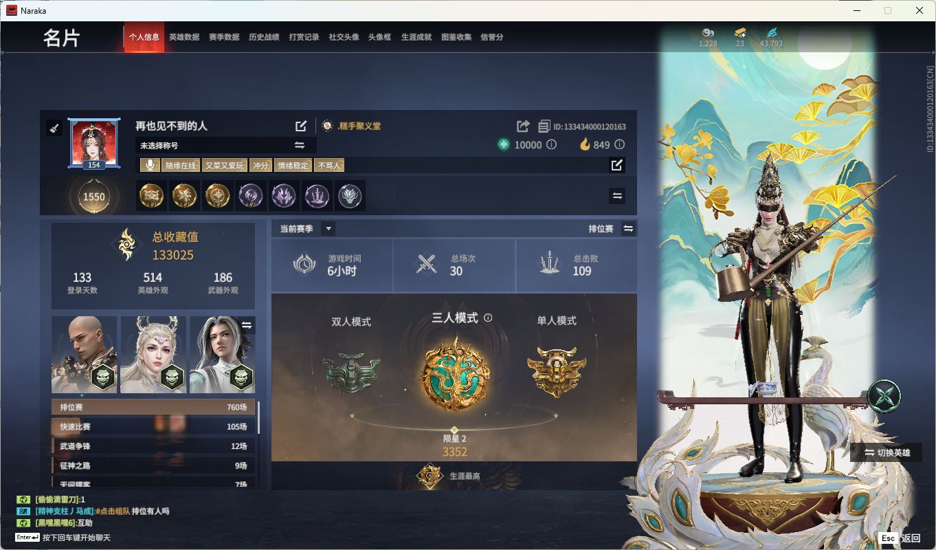 [14416789]wj3202,网易邮箱,1月10可换绑,三人段位陨星2,8红,184金,声望等级10,销兵镝遗,绿野守护竹韵悠,太玄之刃,龙雀,飞将戟,苍穹之光,初代玄女,蝶梦,泣珠龙纱,监兵凶神,赤阳天狐,凛冬,星空投影,秋藏桂,白熊,鹅黄纱梦,李星云,星辉环月,宝月琉璃,打狗棒,判官笔,青峰