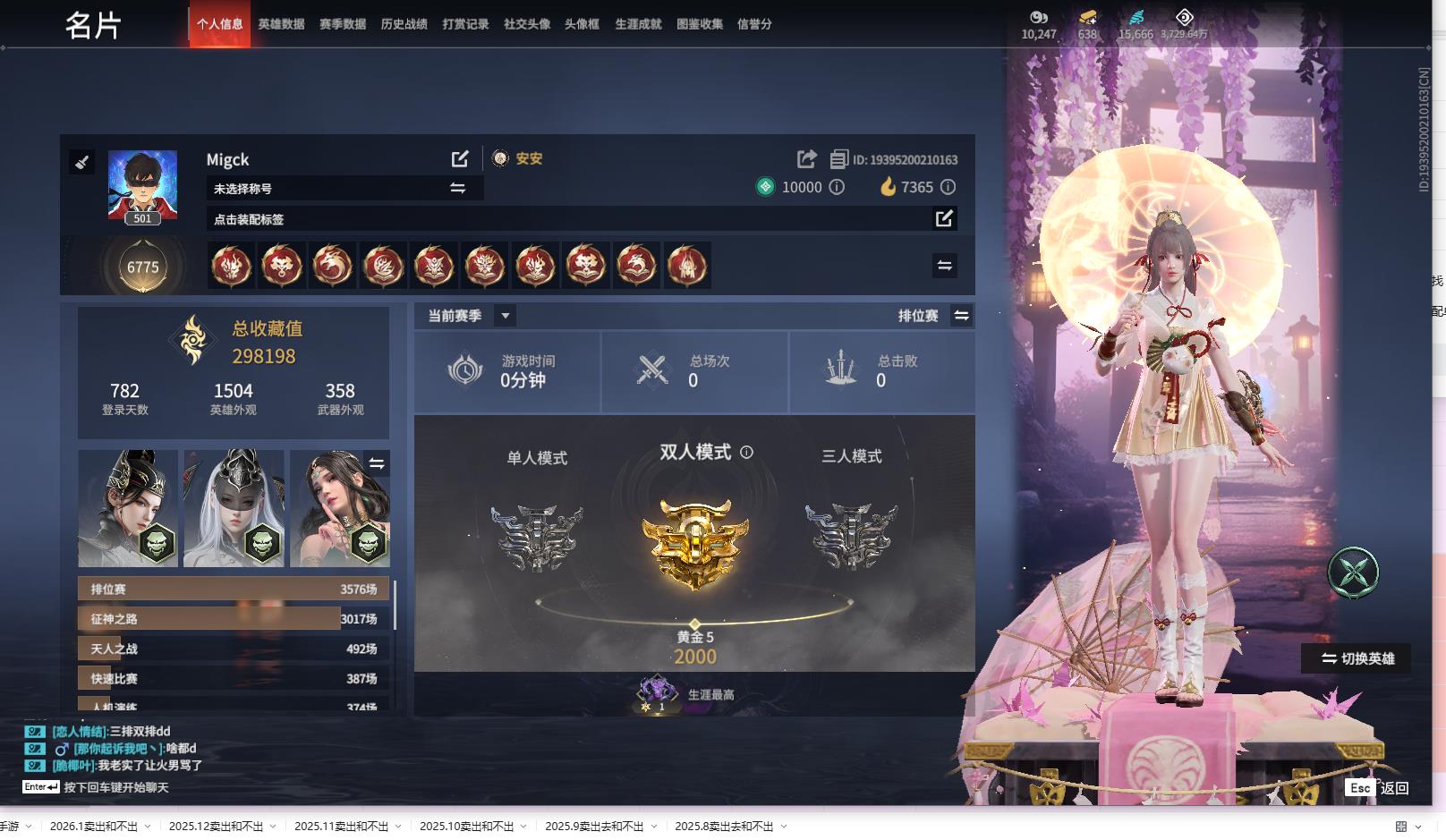 [15373021]yjj1212/365换绑/等级501/s19三人白银1/16红483金收藏值298198/初代玄女//墨离/化生明王/新倩女幽魂·长天藏锦/戎金狼/熛怒炼火/泣珠龙纱/绝代风华/沙漠香风/夜魅游莹/通天狐袄/化道者/天罚/少阳剑/灵犀/狂龙//2674·原型/西行劫·三尖两刃刀//葫芦兄弟·三娃葫芦/珥冰/信手斩龙/御宅罗梦(白丝)/夏日派对·弄潮逐浪/西行劫·杨戬//幻丝15666/未绑定手游/