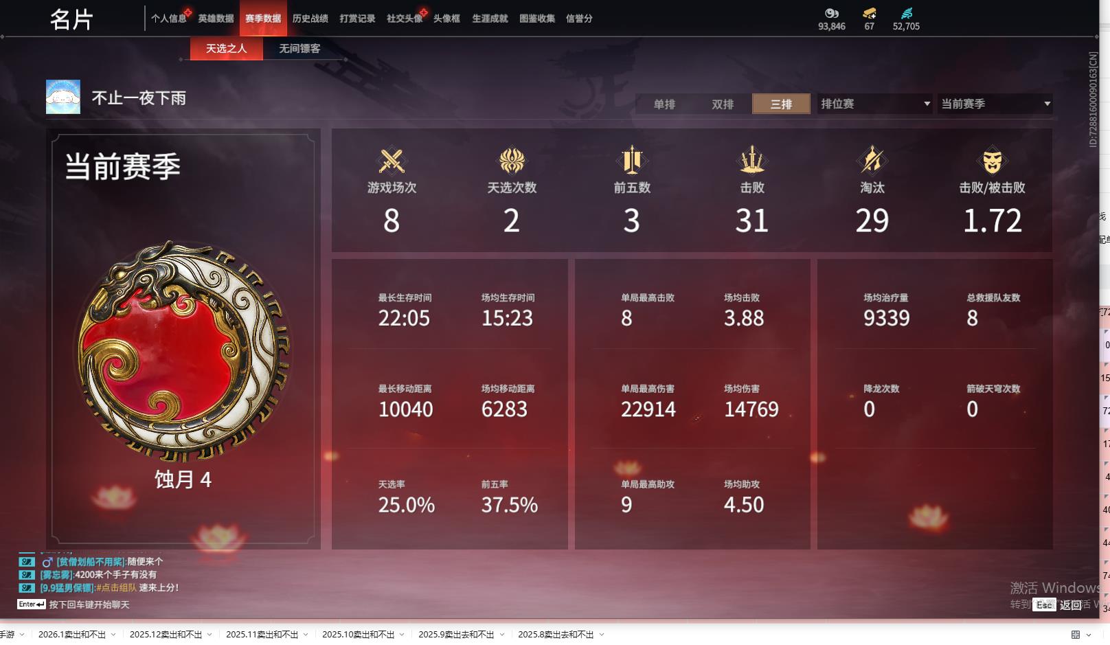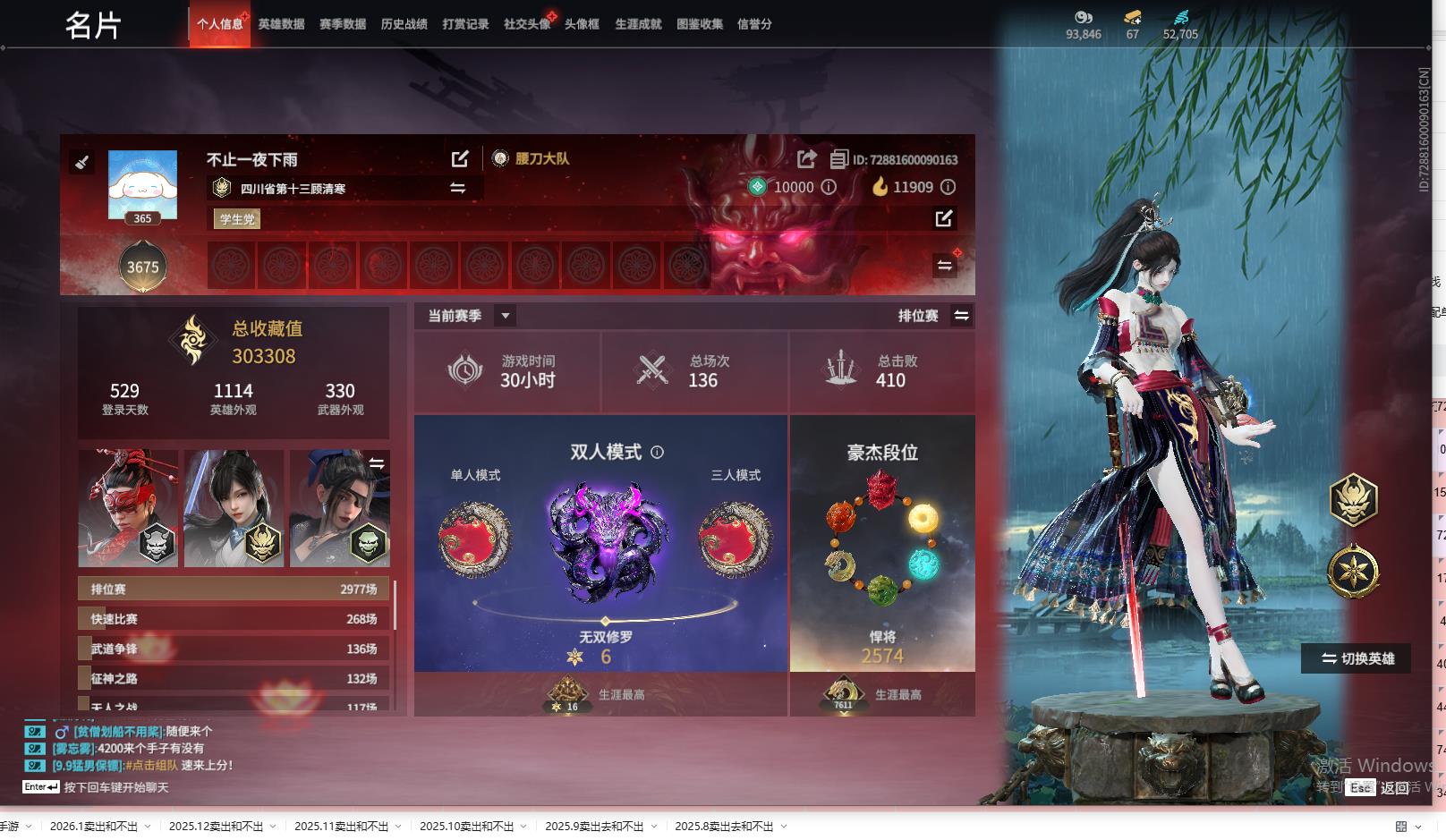 [15450631]yjj1260/365换绑/等级365/s19三人蚀月4/18红469金收藏值303308/赤皓新囍/初代玄女/星辉魔纱/化生明王/戎金狼/熛怒炼火/沙漠香风/流金晓锦/少阳剑/灵狐幻刃/帝星/比羿/龙雀/悍虎斩/飞将戟/狂龙/苍穹之光/墨离/【技能奥义】/雪霜姿/珥冰/御祥云/勾玉 宁红夜:/赤皓新囍/初代玄女/夜华朝/山川润/昆仑之主/倒反阴阳炽羽/蜘蛛精/自知/红川仙子/碧水青天/泠川发/月白发/簪缨发/落霜发/双马尾女 沈妙:/星辉魔纱/秋藏桂/楚韵九歌山鬼/悠竹萌客/涂鸦少女/娇憨发/双马尾女 天海:/化生明王/白熊/九骊之君/八宝龙王 殷紫萍:/春神句芒/风雨谐/鹅黄纱梦/福寿仙/瑶光沐月/伏苓发/暖绒发/双马尾女 特木尔:/戎金狼/多闻天王/红蓝狂想/唐三/沙狼之怒/追猎/海神发 季沧海:/熛怒炼火/鹧鸪天/不良人李星云/康复之星/巨阙/精武魂/江海发/烈火发/不如吾发/含锋发 胡桃:/紫藤神子/清雅少女/贵胄少女/月丹发/归宁发/双马尾女 妖刀姬:/暗夜利刃/赤影妖刀姬 崔三娘:/赤雾烟霞/暗沼摩罗/无拘/伏波龙女/弄潮发/冷傲发/双马尾女 岳山:/金戈止/铁面/汉光/过江龙/玄鳞发 无尘:/雨宫莲joker/申公豹/柳生/黄庭道/joker发型 顾清寒:/凤凰装/寒芷/a2/禄运玉霄/仲夏霜华/赤丹朱湛/玄青郁离/霜天发/灵儿发/绯霜发/双马尾女 武田信中:/祸津素盏/麟鹿大铠/枫狩/花之倾奇 迦南:/沙漠香风/玉叶景/夜吻/琳琅发/双马尾女 胡为:/蛤蟆头领/杜虎符/福瑞天泽 季莹莹:/冬无归/持国天王/干将莫邪/断链/缱绻发/幽焰发/双马尾女 玉玲珑:/赤阳天狐/春不敛/日影花阴/惊雀发/双马尾女 哈迪:/天工奥妙/卷王/夜绸袍/秀逸发 魏轻:/念奴娇/寿竹云春/傲采发/双马尾女 刘炼:/流金晓锦/虹猫 张起灵:/山漠狞影/赤焰战灵 席拉:/天虹咏/雪铃绮歌/蜜语发/双马尾女 蓝梦:/如梦令/沉醉发/双马尾女 万钧:/林七夜/雷行猎手/【挑染】雷霆客发/迅猛发/炽羽尘光发 拳刃:/毛乎乎/醒狮 长剑:/少阳剑/不良人龙泉剑/冰魄剑/冷香/月光与黑暗/隐锋/2674原型 太刀:/灵狐幻刃/切影/拂雪绒/残阳/毅魂守/炫日/鎏金勺/雷赐 横刀:/帝星/比羿/尽春锋/烛泪/白鹿/雷厉 阔刀:/龙雀/听涛_/塑梦钥匙/斩银河/朔方之刃/破天/青石猊 斩