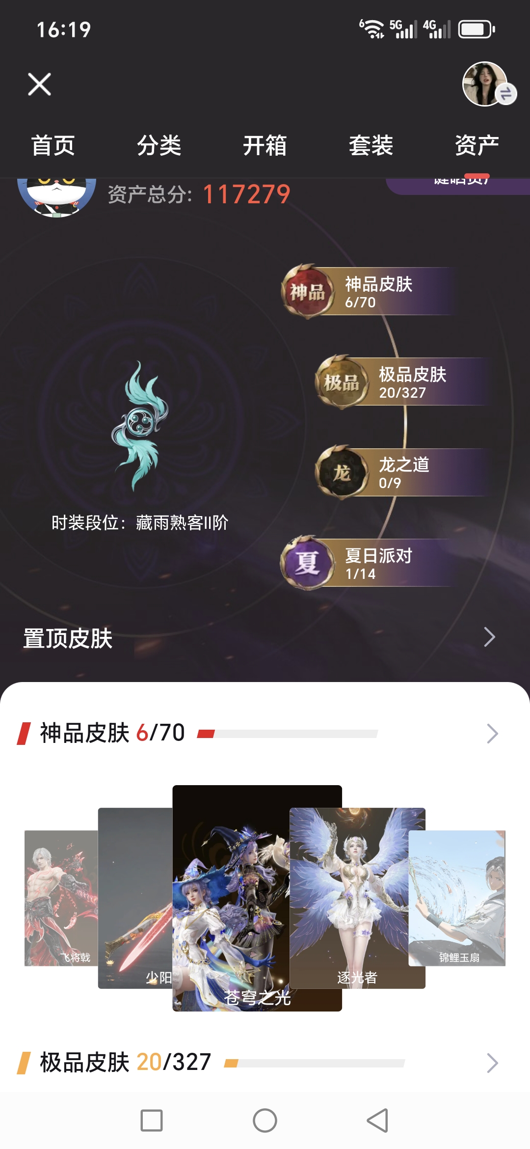【6红 锦鲤玉扇 飞将乾 少阳剑 20金 1夏日 换绑时间2.6】【游戏等级】【大区】国服【神品皮肤】逐光者 锦鲤玉扇 苍穹之光 飞将戟 少阳剑 蝶梦 【极品皮肤】 新魔杰·伏龙尊者 逆水寒·鸢纱 冥渊 逆水寒·极夜天曦 百战·破荆者 觉明尊者 开辟鸿蒙·日月明 护世四法·广目天王 紫微星命 御宅罗梦 玄青郁离 沙狼之怒 清雅少女 灵鹿巫者 麟鹿大铠 九阴圣女 贵胄少女 伏波龙
