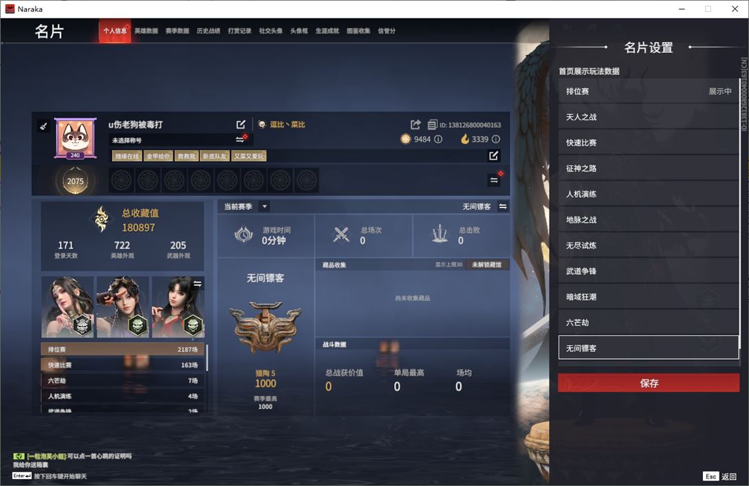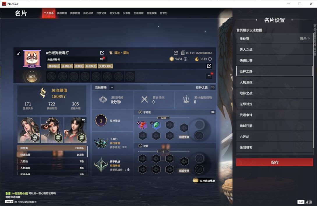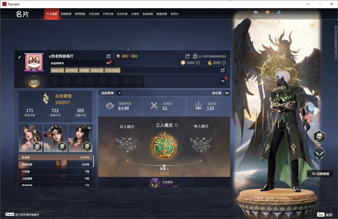 wj3922,网易手机,2月12可换绑,三人段位陨星1,9红,267金,声望2,帝星,狼主,悍虎斩,天罚,星辉魔纱,化生明王,蝶梦,凌霄之羽,墨离,过江龙,醉花风,判官笔,折寒英,祸忌,云朵咩咩,炽羽,涂鸦少女,鹅黄纱梦,银狼裘,星空投影,花无痕,日影花阴,木棉,男性发型14,活动中心手机绑定无法解
