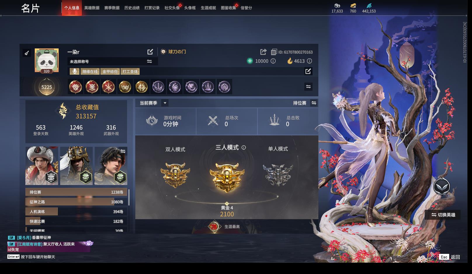 [15515304]yjj1304/2.9换绑/等级320/s19三人黄金4/19红459金收藏值313157///赤皓新囍/初代玄女/星辉魔纱/戎金狼/熛怒炼火/泣珠龙纱/监兵凶神/太玄之刃/灵狐幻刃/帝星/狼主/龙雀/飞将戟/狂龙/天罚/苍穹之光/毕方/墨离/【技能奥义】/初代机/揽九天/神君印/凶虎/勾玉 【武技外观】/穿仙洞·绯/仙洞十三迹·霞飞/封两仪·煌/无极封剑诀·珀华/破重霄·焰/御足轮·赤/狐影御罗纱·炎轮 宁红夜:/赤皓新囍/初代玄女/倒反阴阳炽羽/夜华朝/碧水青天/蜘蛛精/九阴圣女/泠川发/簪缨发/双马尾女 沈妙:/星辉魔纱/紫衣仙子/秋藏桂/悠竹萌客/腓腓/绮云衫/娇憨发/韶光发/双马尾女 天海:/觉明尊者/少林/八宝龙王/双马尾男 殷紫萍:/福寿仙/风雨谐/萍之缘/鹅黄纱梦/天禄瑞光/瑶光沐月/伏苓发/降香发/暖绒发/双马尾女 特木尔:/戎金狼/唐三/红蓝狂想/沙狼之怒/追猎/海神发/双马尾男 季沧海:/熛怒炼火/鹧鸪天/不良人李星云/康复之星/江海沧澜/江海发/白狼发/不如吾发/双马尾男 胡桃:/小可/遣唐使/高校水着/御宅花织/天钿女命/阴阳姬/清雅少女/月丹发/木棉发/双马尾女 妖刀姬:/暗夜利刃/恋念私语/赤影妖刀姬 崔三娘:/泣珠龙纱/汐泪/暗沼摩罗/冷傲发/双马尾女 岳山:/铁面/戍关将/杨戬/尼尔/神武/过江龙/玄鳞发/双马尾男 无尘:/一品仙君/司天命/双马尾男 顾清寒:/紫微星命/禄运玉霄/a2/姑射真人/灵儿发/绯霜发/双马尾女 武田信中:/花之倾奇/双马尾男 迦南:/胡旋女/火罗圣女/凛冬/花无痕/双马尾女 胡为:/监兵凶神/不败擂主/蛤蟆头领/福瑞天泽/秋神蓐收/天刑发/双马尾男 季莹莹:/冬无归/冬神玄冥/炽火照夜/八极/无常白袍/冥泉发/幽焰发/流萤发/双马尾女 玉玲珑:/赤阳天狐/春不敛/赤羽/黄昏巫主/古溪发/惊雀发/双马尾女 哈迪:/夜绸袍/卷王/秀逸发/双马尾男 魏轻:/念奴娇/热力节拍/寿竹云春/傲采发/双马尾女 刘炼:/金财聚辉/双马尾男 张起灵:/山漠狞影/云间影/双马尾男 席拉:/雪铃绮歌/蜜语发/双马尾女 蓝梦:/灵心/如梦令/沉醉发/随性发/双马尾女 万钧:/雷行猎手/迅猛发/双马尾男 拳刃:/毛乎乎/苍雷破/诡刃八岐 长剑:/不良人龙泉剑/冷香/含光承影/壶中日月/湖女之剑/炼/监星尺/福禄双至/财神剑/隐锋/