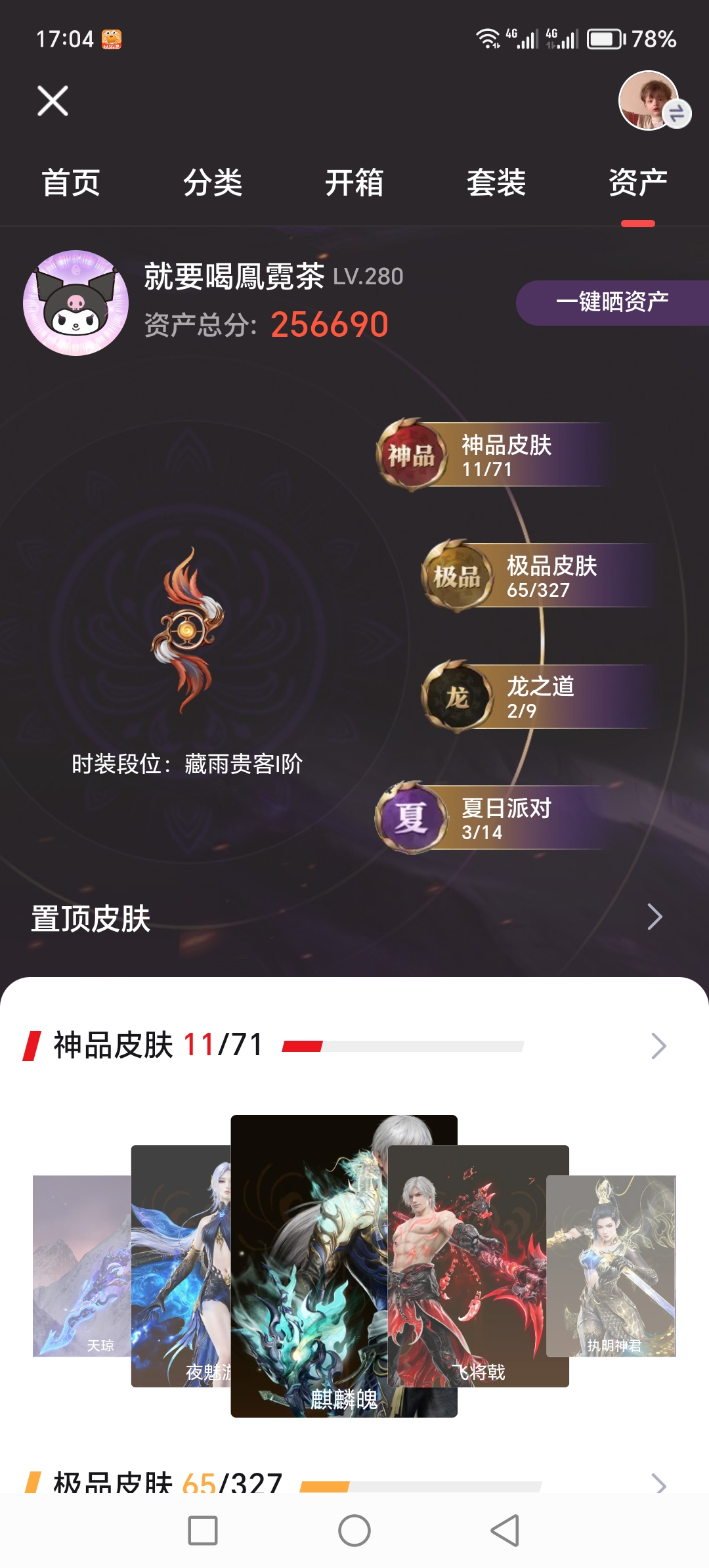 【11红 65金 2龙之道 飞将戟 麒麟魄 天琼 夜魅游莹 换绑时间1.19】【游戏等级】280【大区】国服【神品皮肤】麒麟魄 飞将戟 执明神君 天琼 夜魅游莹 戎金狼 狂龙 绝代风华 蝶梦 初代玄女 熛怒炼火 【极品皮肤】2674·千机喵 2674·嘉斯威珀 复制体·凯妮 幽篁山鬼 斗罗大陆·唐三 夏日派对·仲夏霜华 夏日派对·高校水着 沐昭 观山海·冬神玄冥 巨鲸客 观山海
