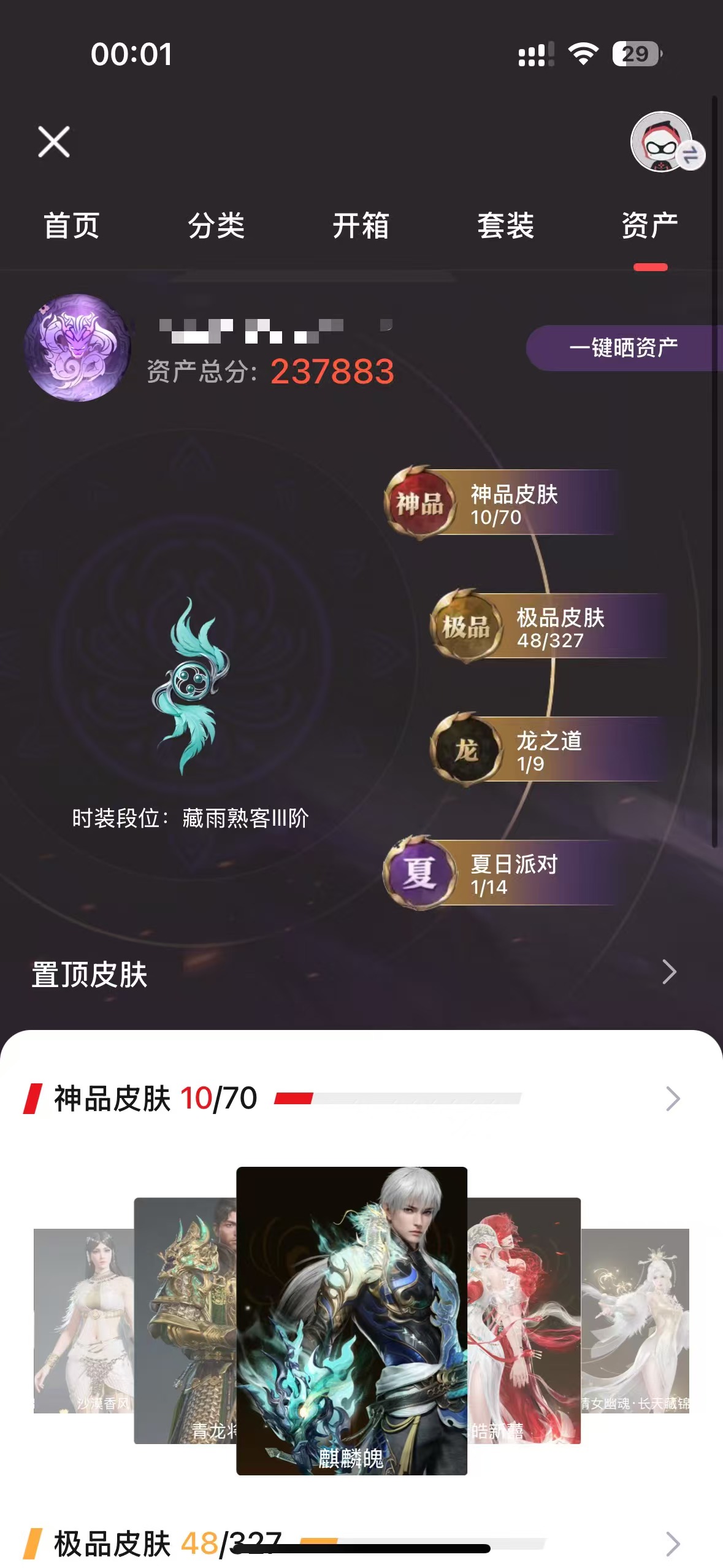 【10红 金48 龙之道1 麒麟魄换绑时间1.18】【游戏等级】【大区】国服【神品皮肤】麒麟魄 赤皓新囍 新倩女幽魂长天 沙漠香风 青龙将星 凌霄之羽 狂龙 化生明王 蝶梦 2674九阴【极品皮肤】噬月天狼 幽篁山鬼 玄豹姿 斗罗大陆·唐三 藏雨阁主 沐昭 夏日派对·高校水着 新倩女幽魂·流纨裙 巨鲸客 司天命 决战平安京·朔夜 梨园传奇·小青 观山海·春神句芒 护世四法·增长