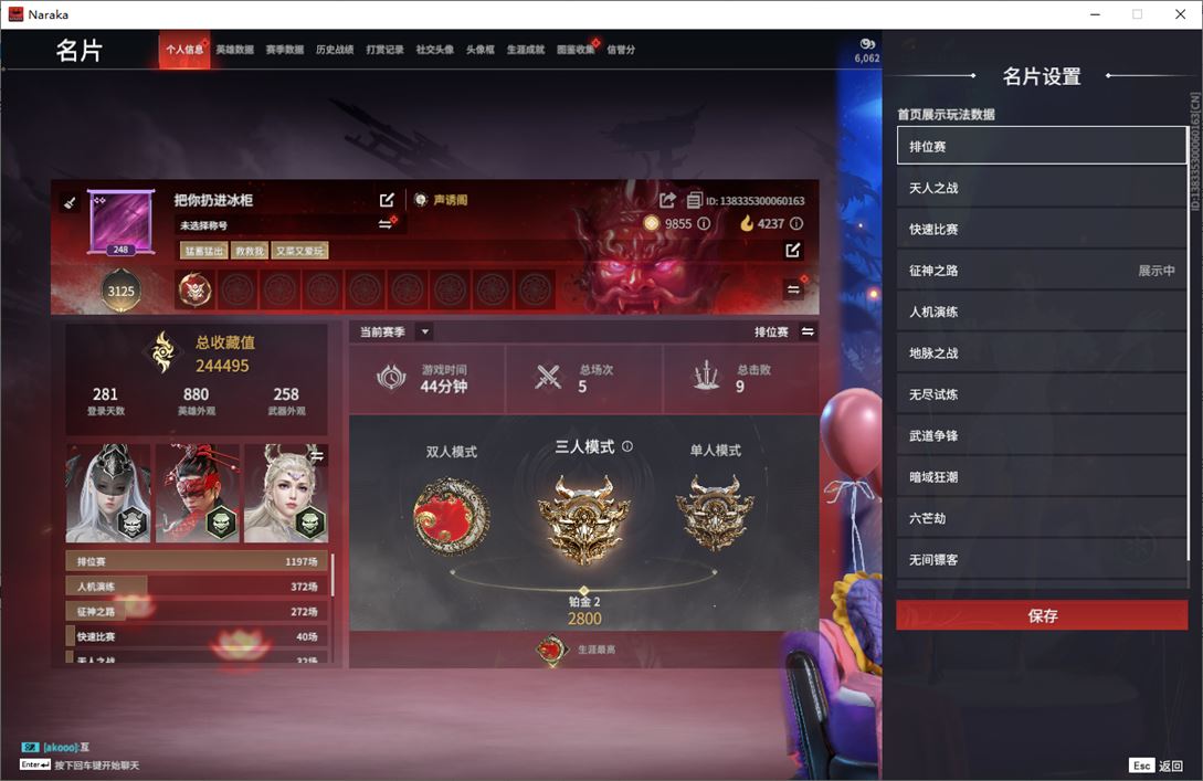 wj4385,网易手机,2月27日可换绑,三人段位铂金2,14红,340金,缠缠,少阳剑,2674超越型紫,帝星,龙雀,狼主,悍虎斩,飞将戟,狂龙,赤皓新囍,化生明王,狱炎烬甲,泣珠龙纱,香雪水兰,流金晓锦,求真,过江龙,盛夏白阳,翠影,诡刃八岐,劫涛潮,糖果棍,判官笔,腾云歌,悦彩游裳,白熊,伏波
