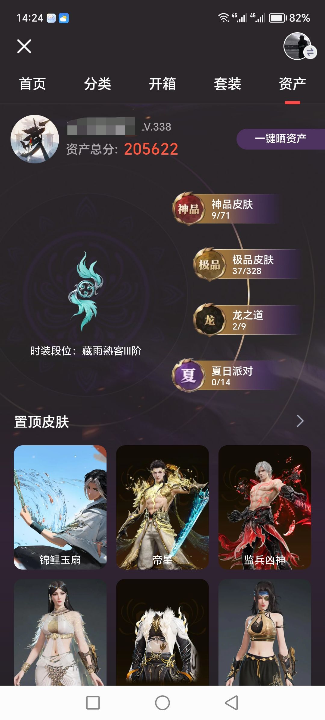 【9红 37金 2龙之道 锦鲤玉扇 帝星 监兵凶神换绑时间2.25】【游戏等级】338【大区】国服【神品皮肤】龙雀 泣珠龙纱 星辉魔纱 监兵凶神 绝代风华 锦鲤玉扇 沙漠香风 化生明王【极品皮肤】斗罗大陆.唐三 观山海·秋神蓐收 新情女幽魂·花间影 藏雨阁主 绮云衫 司天命 怀金袍 观山海·冬神玄冥 观山海·青鸟 巨鲸客 西行劫·蜘蛛精 不良人·李星云 阴阳师·灼舞桃节 龙之道