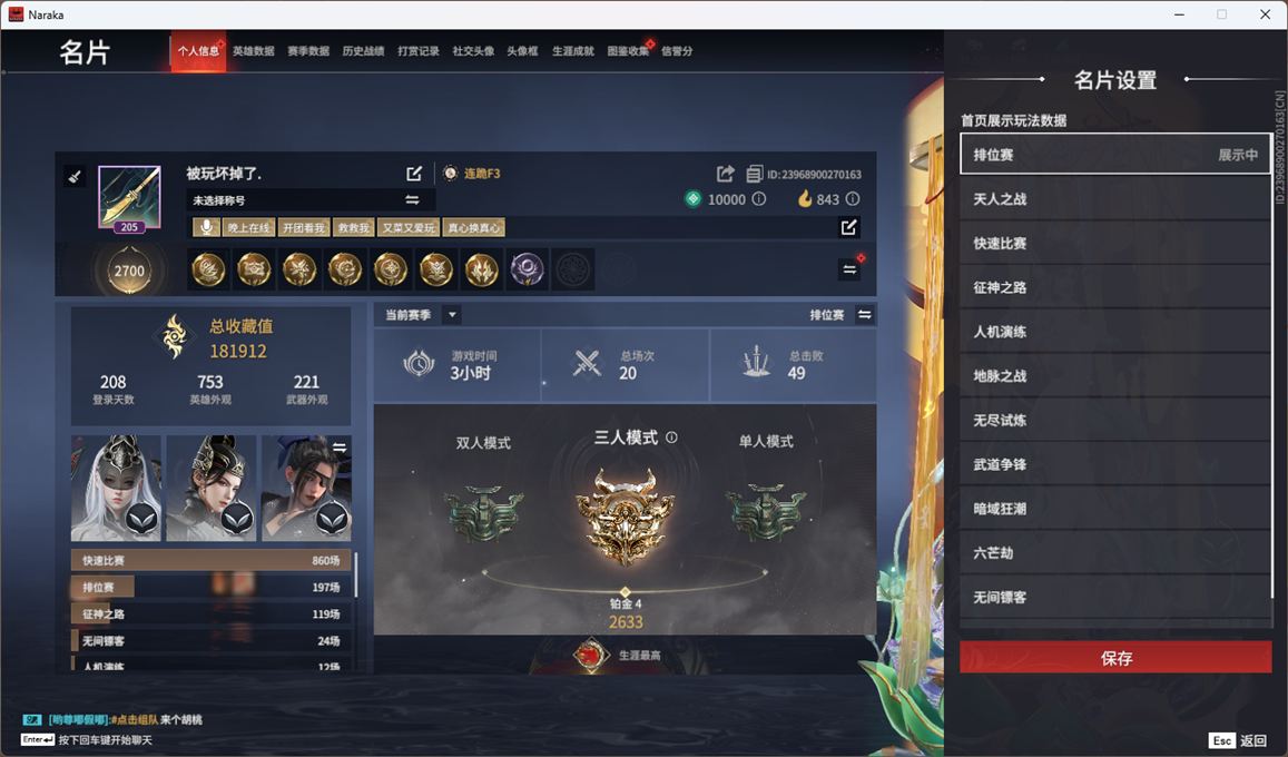 wj4438,网易手机,可换绑,三人段位铂金4,21万幻丝,7红,325金,声望13,警长手呛,御祥云,噬骨,少阳剑,太玄之刃,飞将戟,狂龙,星辉魔纱,蝶梦,流金晓锦,灵心,过江龙,七星铜钱剑,昆仑之主,警长制服,康复之星,御宅罗梦,封神录敖丙,封神录哪吒活动中心手机绑定无法解绑,