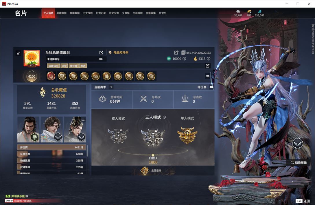 [16149672]wj4435,网易邮箱,3月1日可换绑,三人段位白银1,35万幻丝,17红,470金,声望等级10,御祥云,四海,神君印,少阳剑,帝星,龙雀,狼主,涯角,天罚,苍穹之光,赤皓新囍,星辉魔纱,戎金狼,蝶梦,香雪水兰,绝代风华,监兵凶神,夜魅游莹,流金晓锦,画中仙,生死局,无拘,过江龙,仲夏霜华,高校水着,午后瑰夏,热海白珊,紫焰火尖呛,玄鲸骨叉,打狗棒,马首刀,九霄寒,珊海之刃,劫涛潮,杨戬,昊天,烛泪,华阳针,龙泉剑,紫金宝剑,风神切,李星云,男性发型14,木棉,飞鼠,,