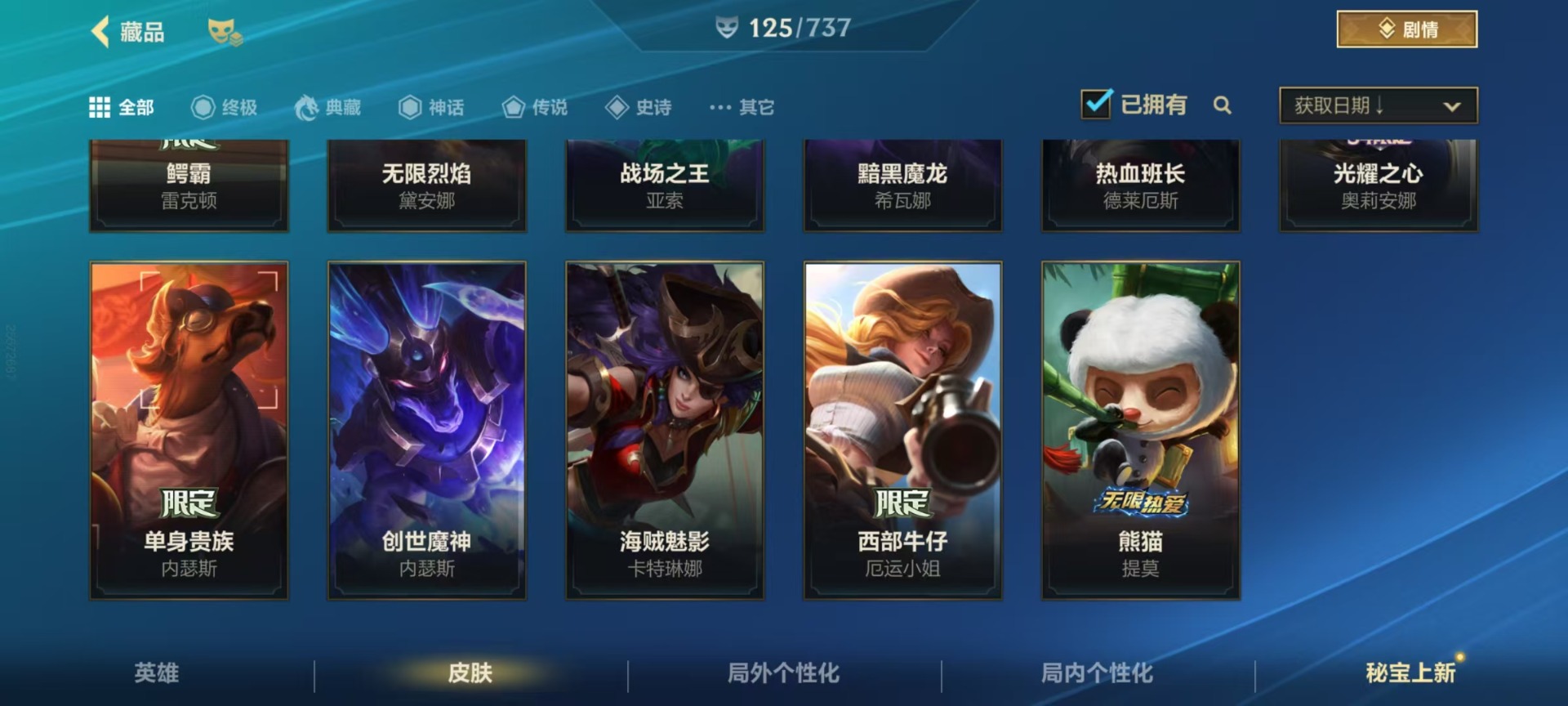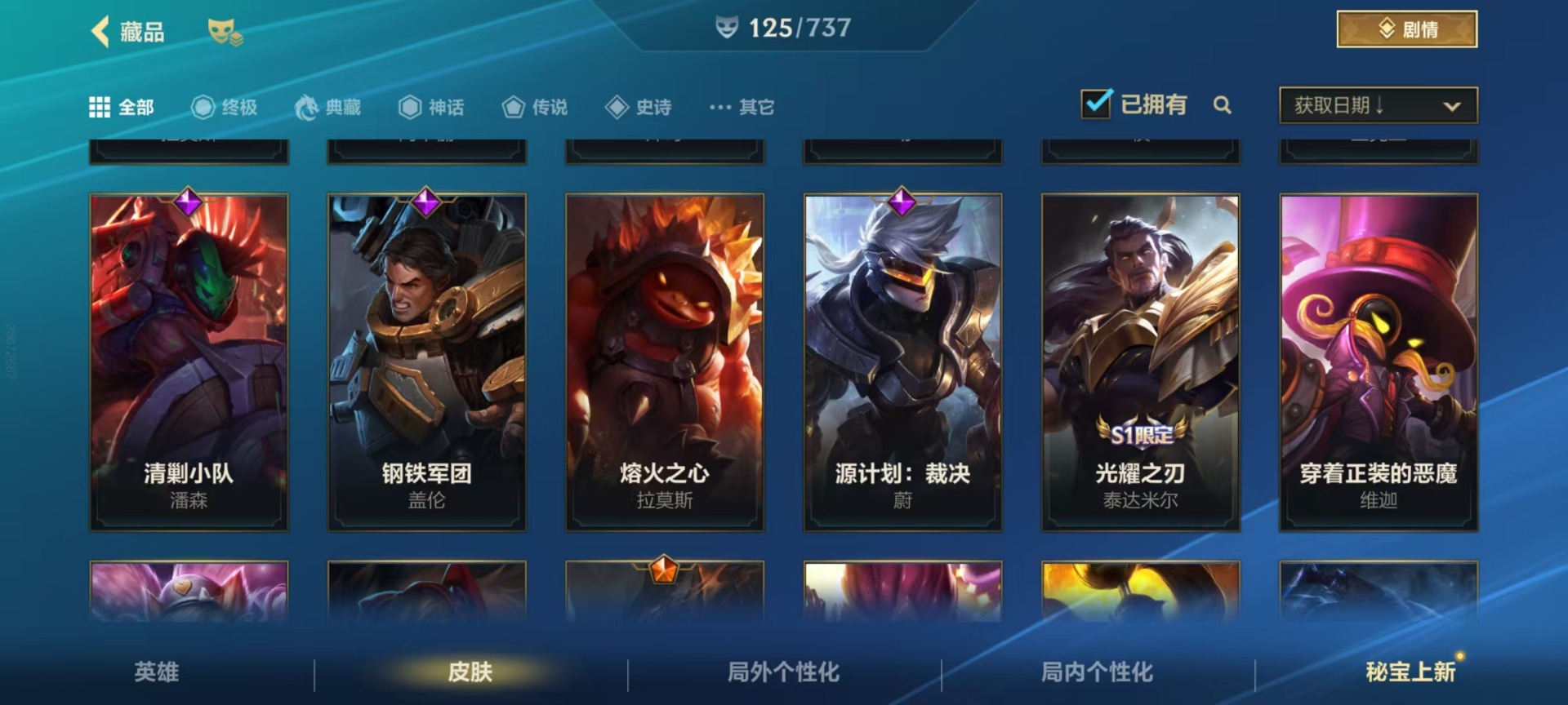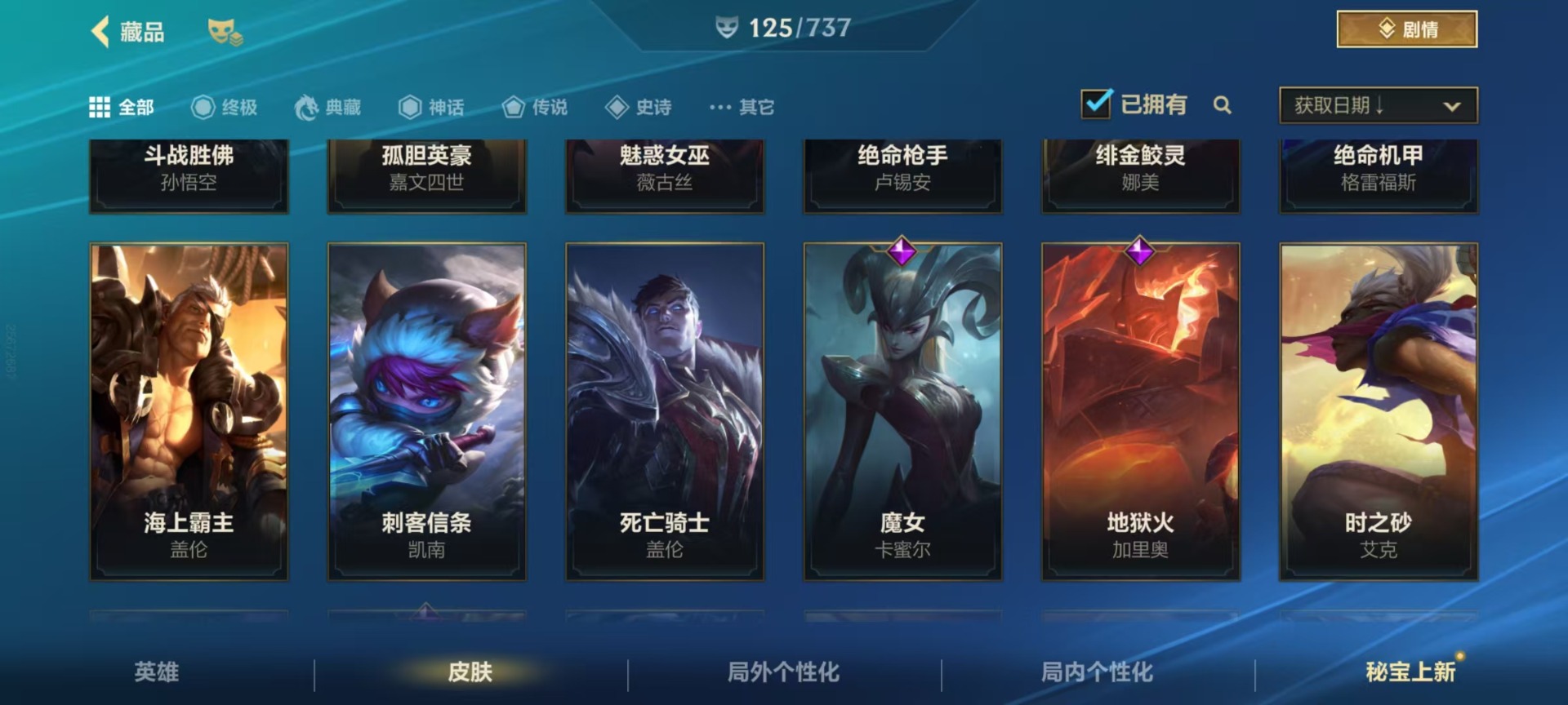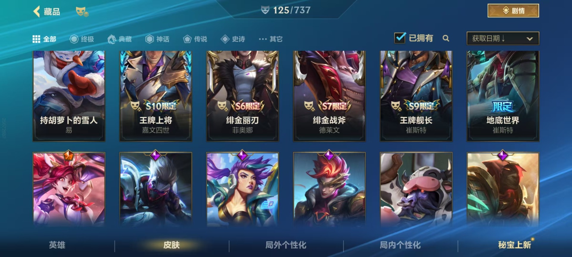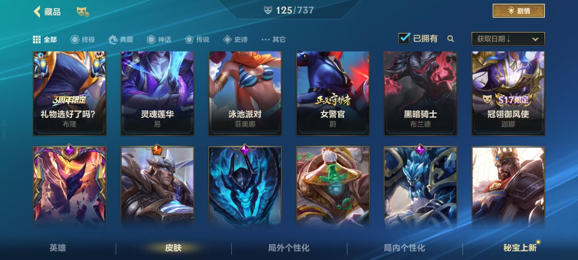 可二次 可修改实名 段位:黑铁 1神话 11传说 48史诗 125皮肤 127英雄 钻石 皮肤:盖伦-神王盖伦-海上霸主盖伦-死亡骑士盖伦-钢铁军团蔚-女警官蔚-双城之战蔚-燎原烈焰蔚-源计划:裁决易-灵魂莲华易-持胡萝卜的雪人易-灵能特工易-暗影内瑟斯-炼狱魔犬内瑟斯