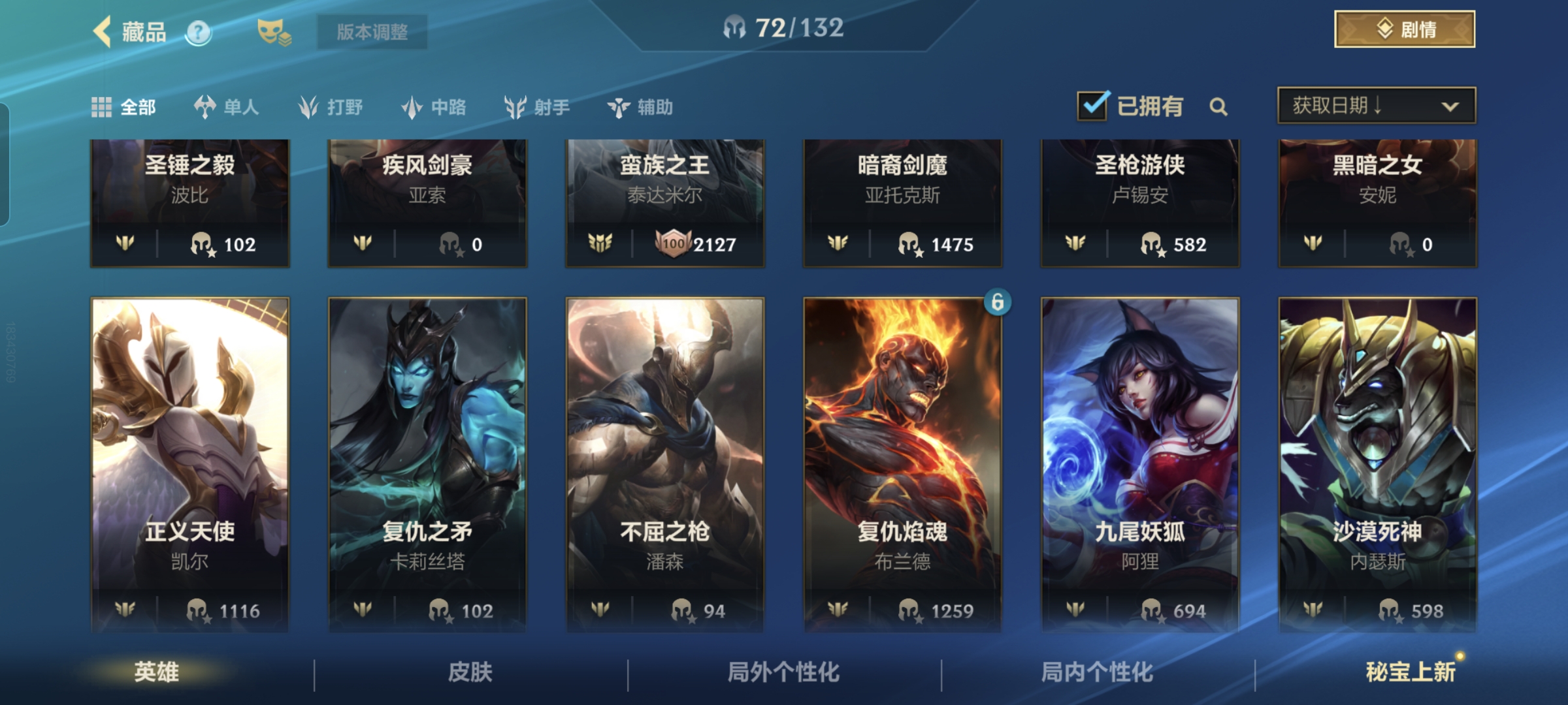【72英雄-36皮肤 1神话 10史诗 】安卓q-等级91-英雄72-皮肤36-段位璀璨钻石 【神话】金克斯-夜星流火【史诗】苹果机器人 玉剑传说-武剑仙 猛虎-布隆 恶魔之刃 地狱火-加里奥 星之守护者拉克丝 我羽饰骑士崔丝塔娜 斗魂觉醒格温 礼物选好了吗布隆 暗星墨菲特 赛年:冠翎已收集