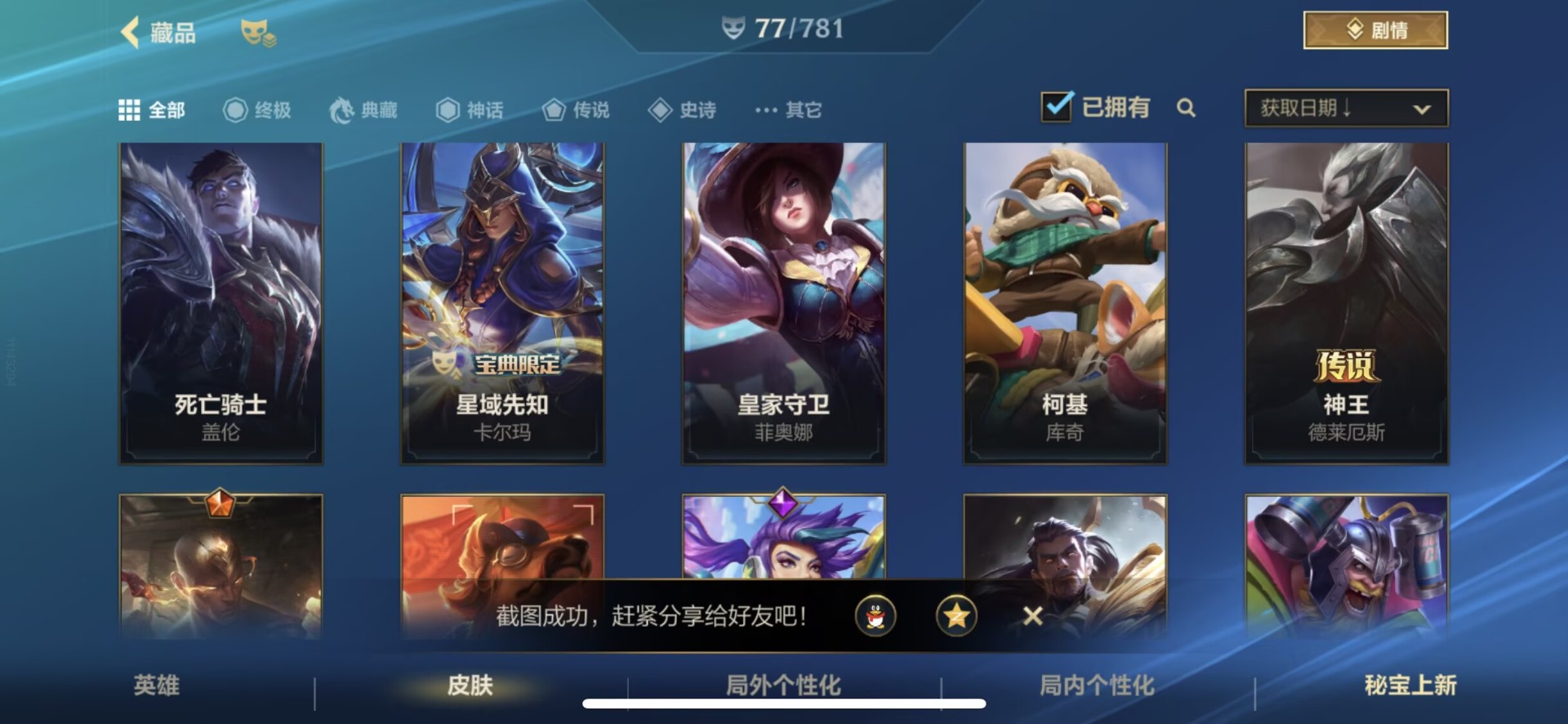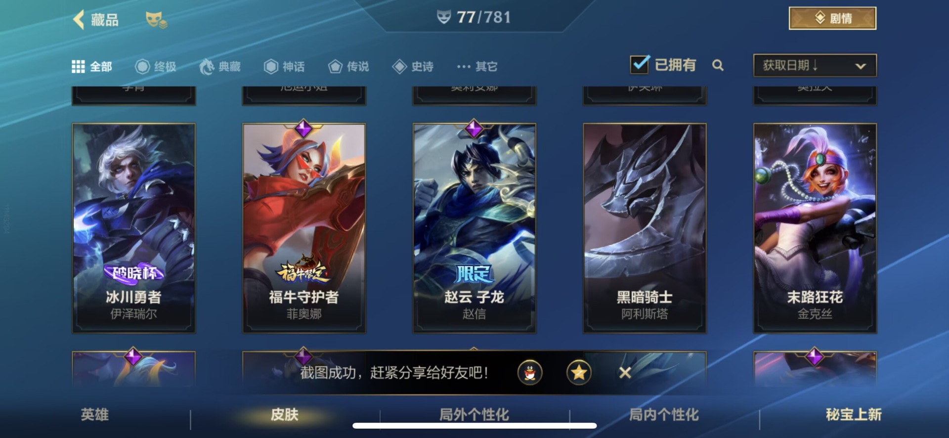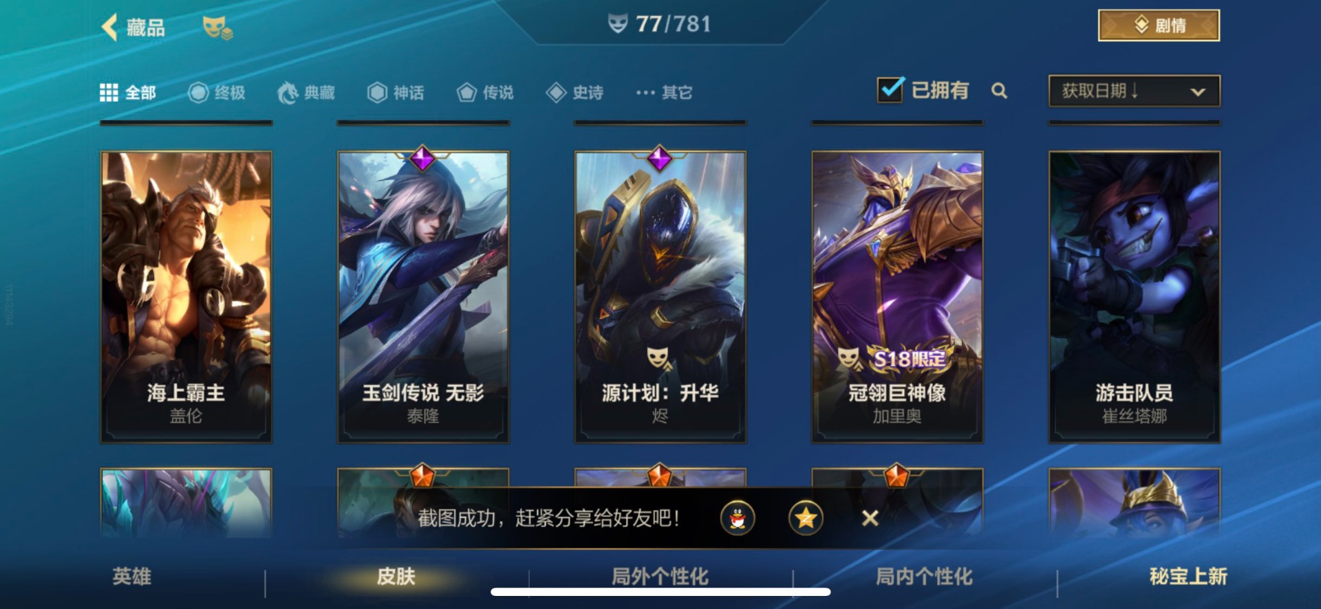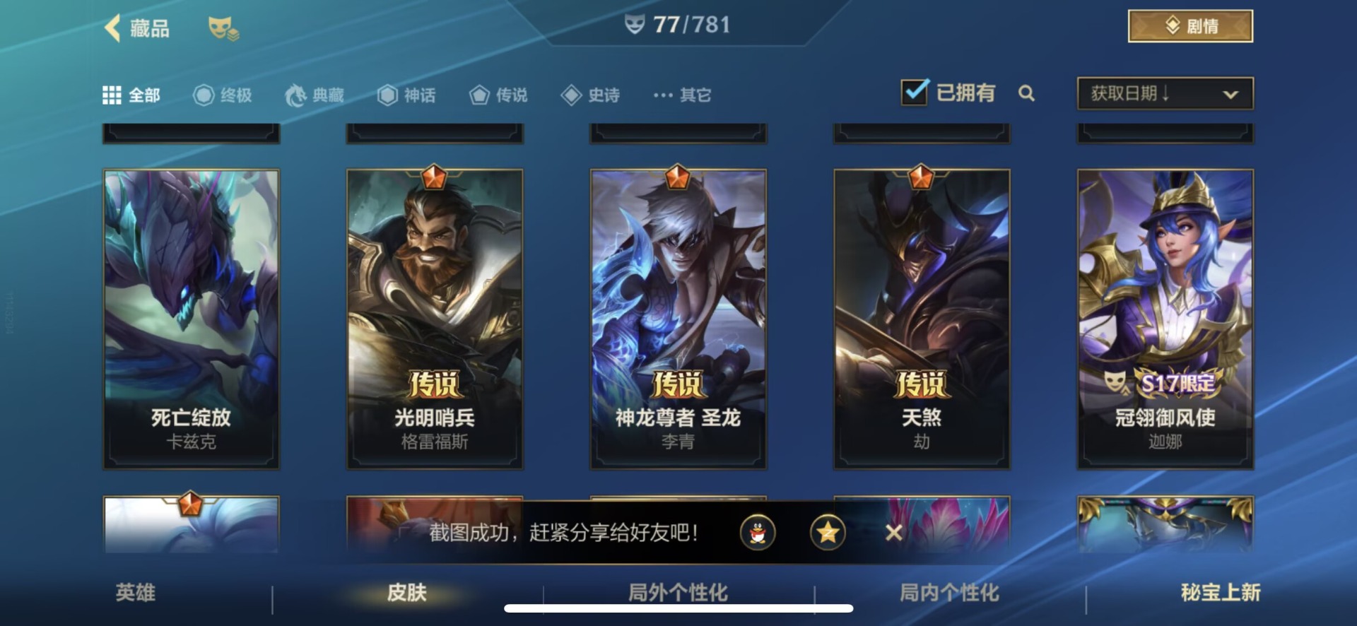 [14266283]1限定 11传说 24史诗 77皮肤 可二次 可修改实名 【段位】:翡翠 【限定皮肤】:赵云子龙 【传说皮】:神龙尊者 圣龙 李青西部魔影卢锡安天煞劫神王诺手神拳盲僧律政大亨k/da allout萨勒芬妮黑夜使者亚索福牛守护者女呛光明哨兵格雷福斯战斗学院ez