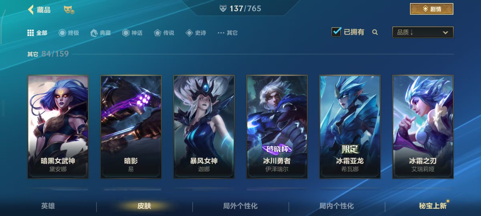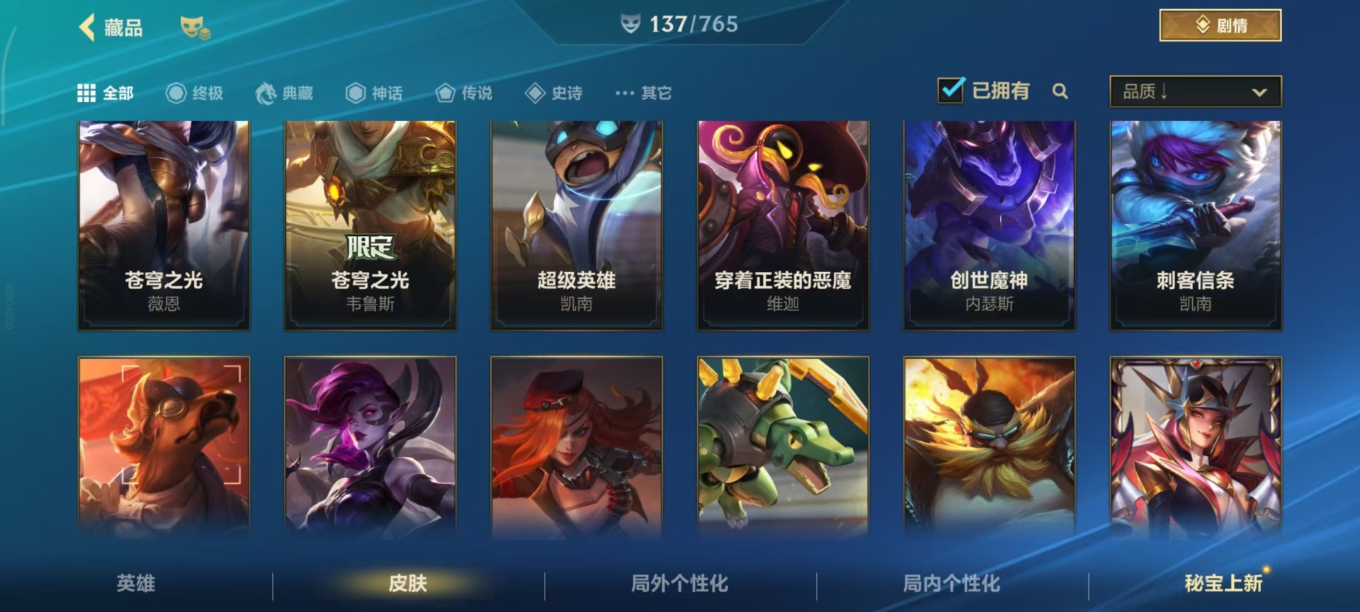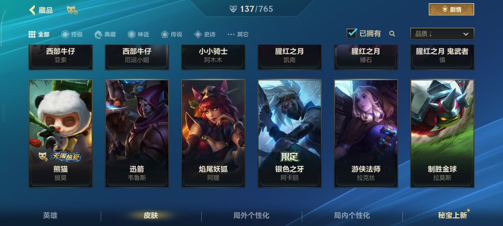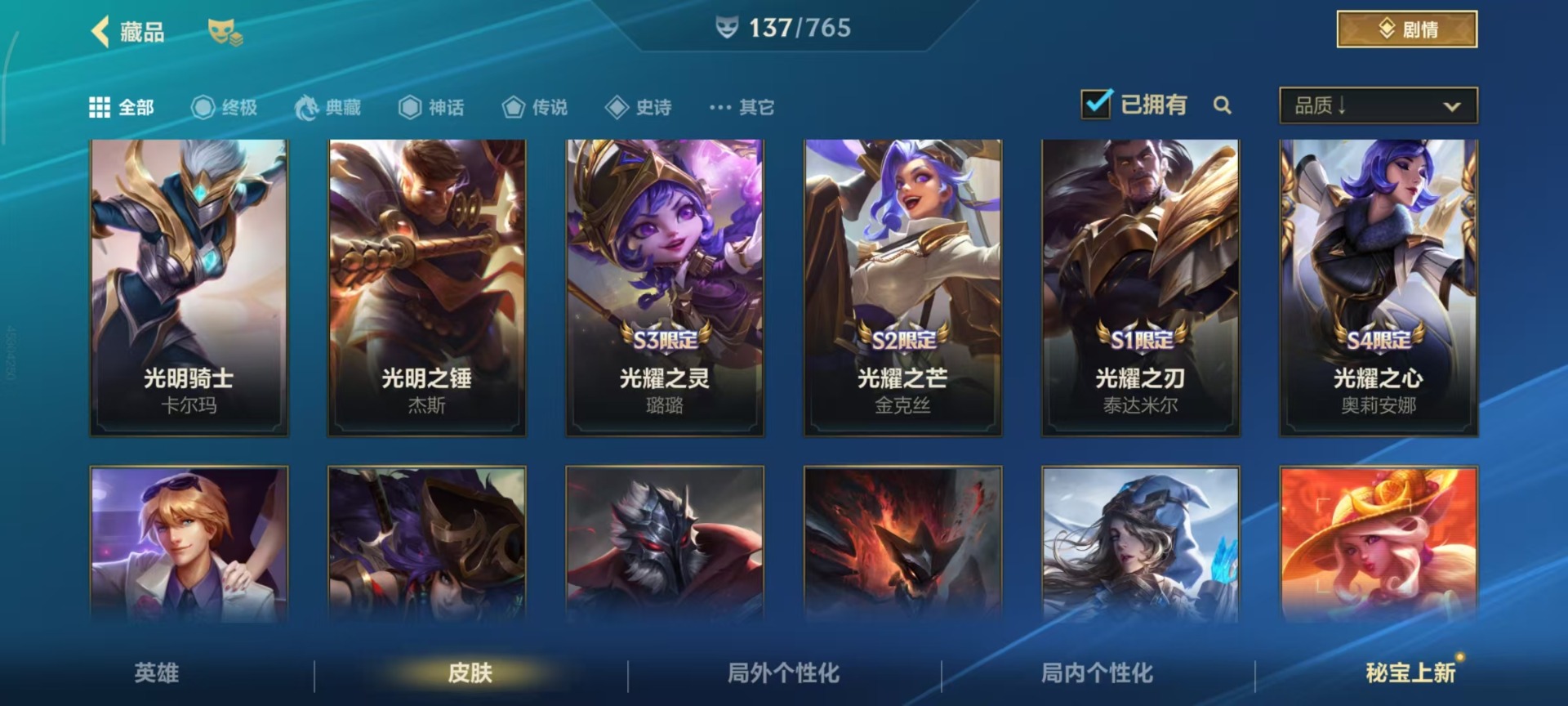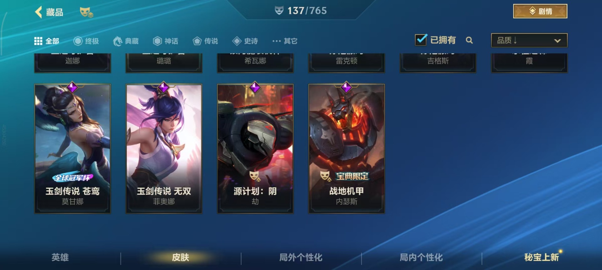 4神话 1限定 3传说 48史诗 137皮肤 可二次 可修改实名 【段位】:翡翠 【神话皮】:夜星流火 金克丝天命豪侠 瑟提玄龙绛天 易龙的传人 【限定皮肤】:龙的传人 【传说皮】:神龙尊者 驭风啸龙黑夜使者亚索驯龙炮手 【亮点】:【优质装备】:黑夜使者亚索神龙尊者 驭风啸龙驯龙炮手