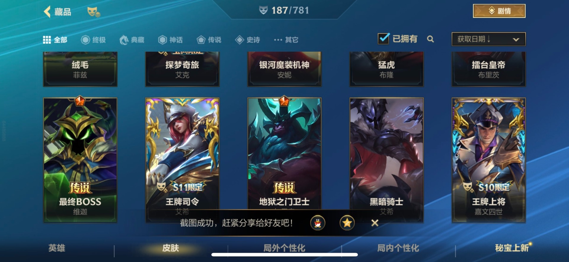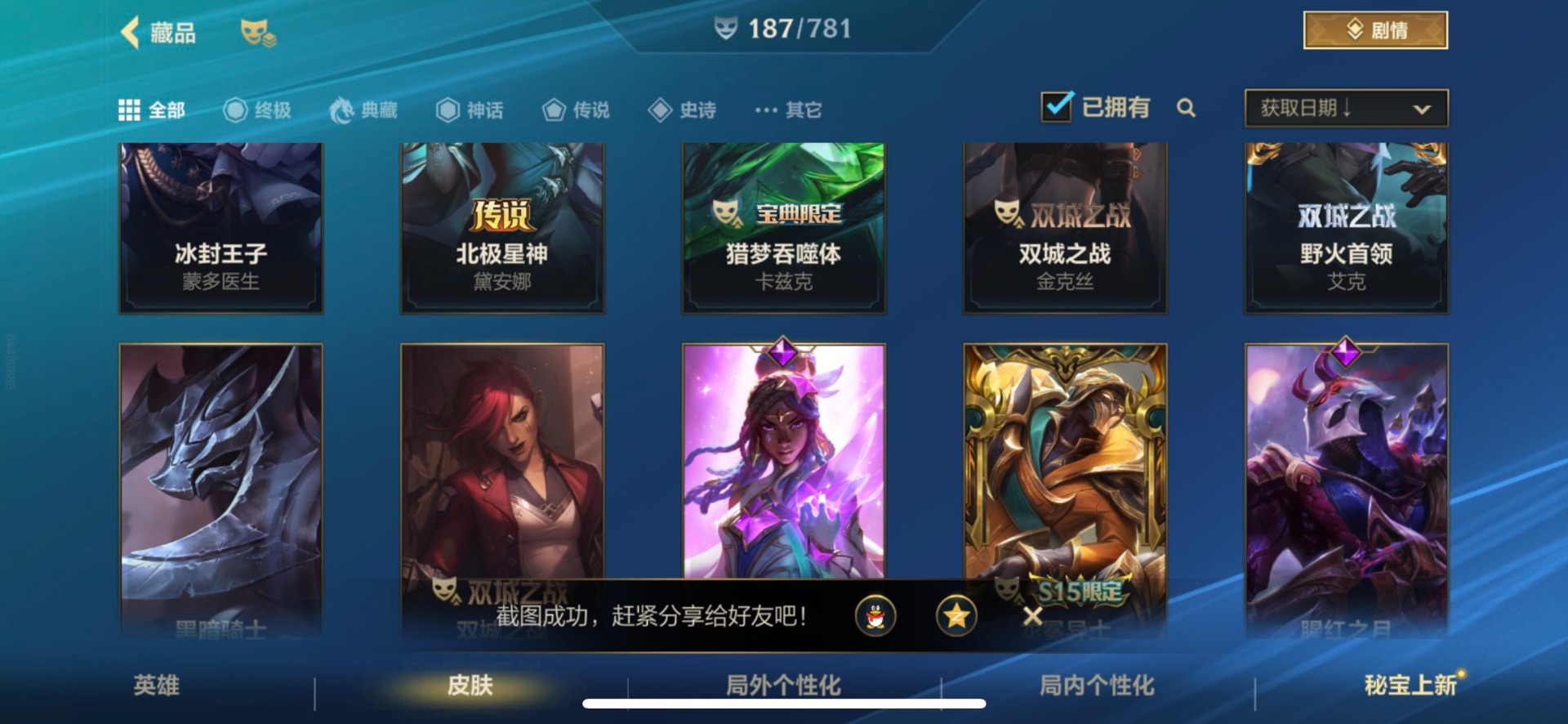 [14292191]3神话 19传说 90史诗 187皮肤 可二次 可修改实名 【段位】:大师 【神话皮】:夜星流火 金克丝乘龙破渊 李青至臻锐雯 【传说皮】:神龙尊者 圣龙 李青水晶玫瑰萨勒芬妮北极星神 黛安娜地狱之门卫士西部天使寒冰西部魔影卢锡安神王诺手神拳盲僧日蚀骑士蕾欧