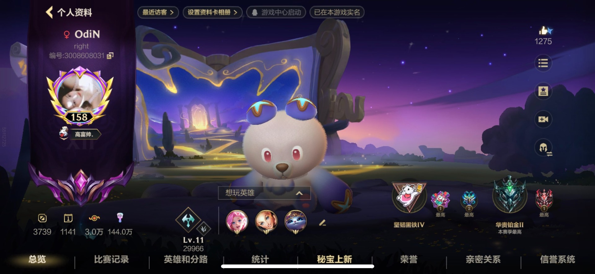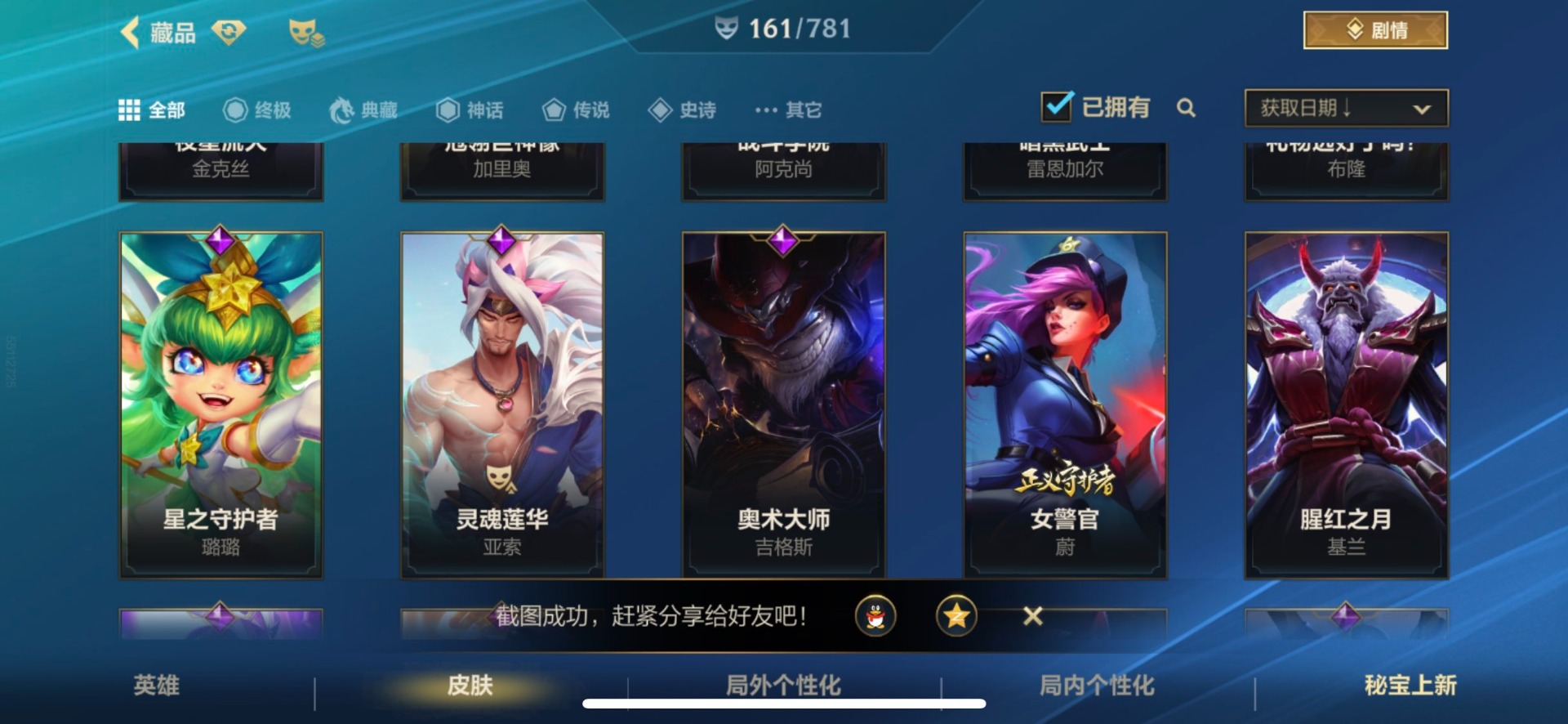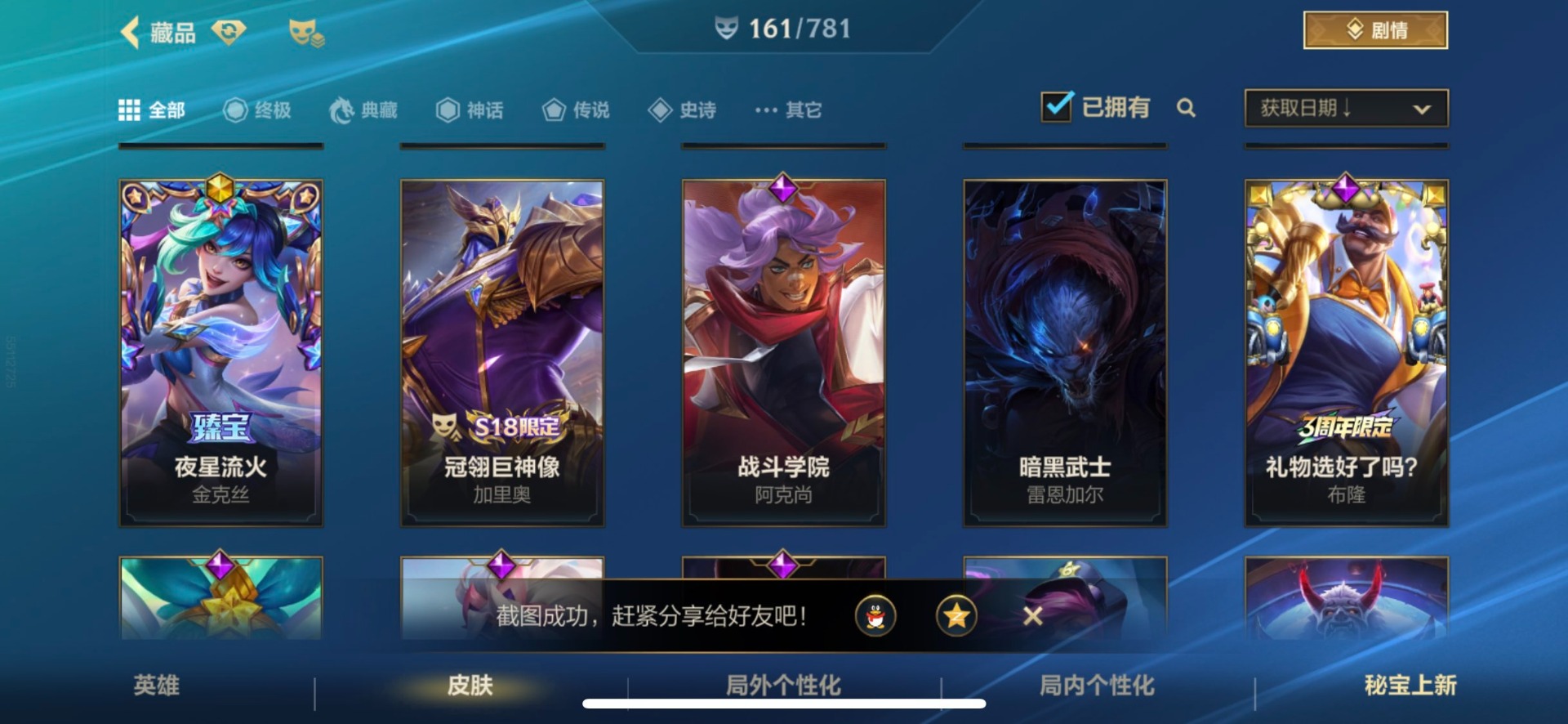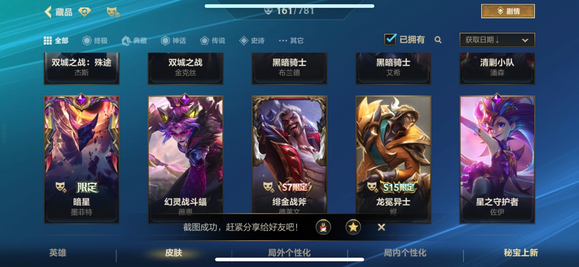 [14349777]1神话 2限定 23传说 74史诗 161皮肤 可二次 可修改实名 【段位】:铂金 【神话皮】:夜星流火 金克丝 【限定皮肤】:星之守护者霞星之守护者洛 【传说皮】:花车开起来咯 墨菲特光影巨翼亚托克斯水晶玫瑰萨勒芬妮心之钢凯隐灵魂莲华腕豪双城之战:殊途 杰斯海魔