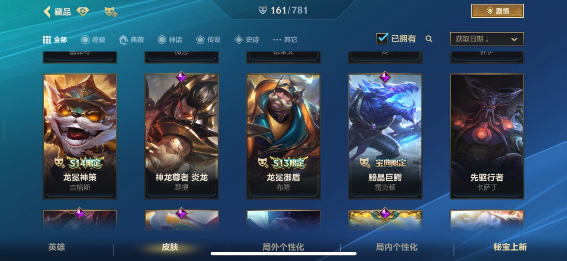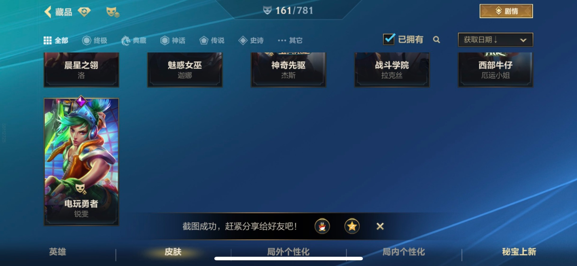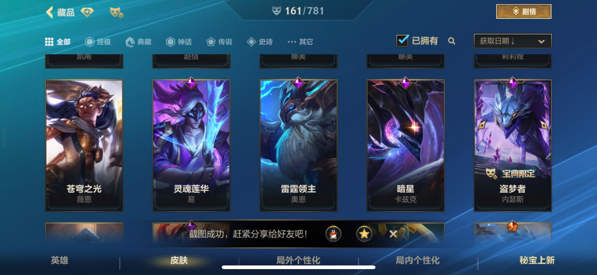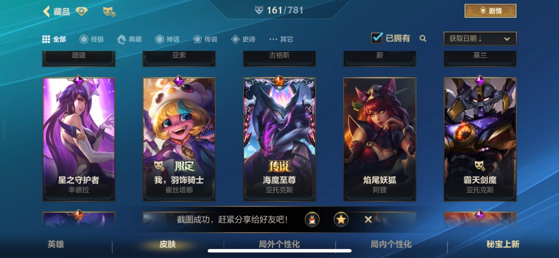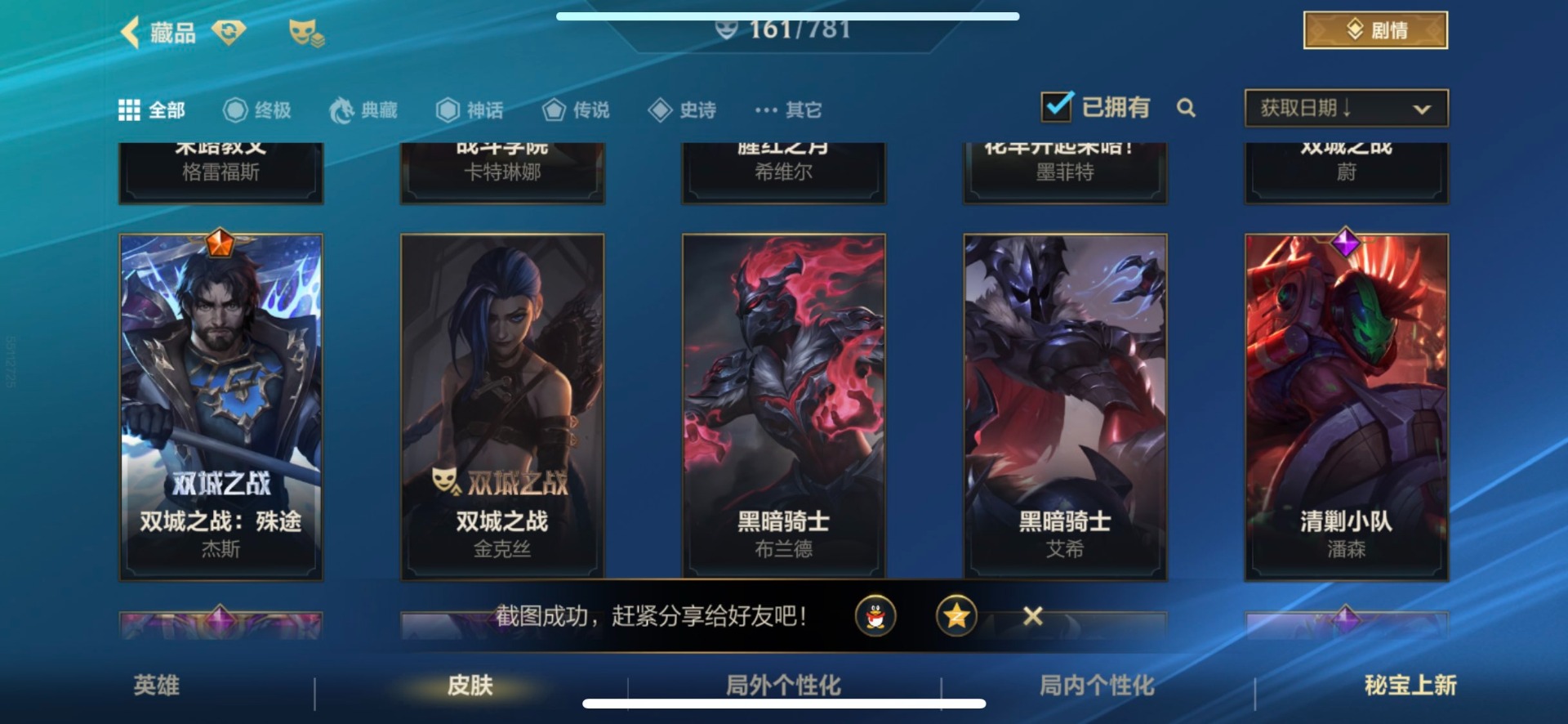 [14349777]1神话 2限定 23传说 74史诗 161皮肤 可二次 可修改实名 【段位】:铂金 【神话皮】:夜星流火 金克丝 【限定皮肤】:星之守护者霞星之守护者洛 【传说皮】:花车开起来咯 墨菲特光影巨翼亚托克斯水晶玫瑰萨勒芬妮心之钢凯隐灵魂莲华腕豪双城之战:殊途 杰斯海魔