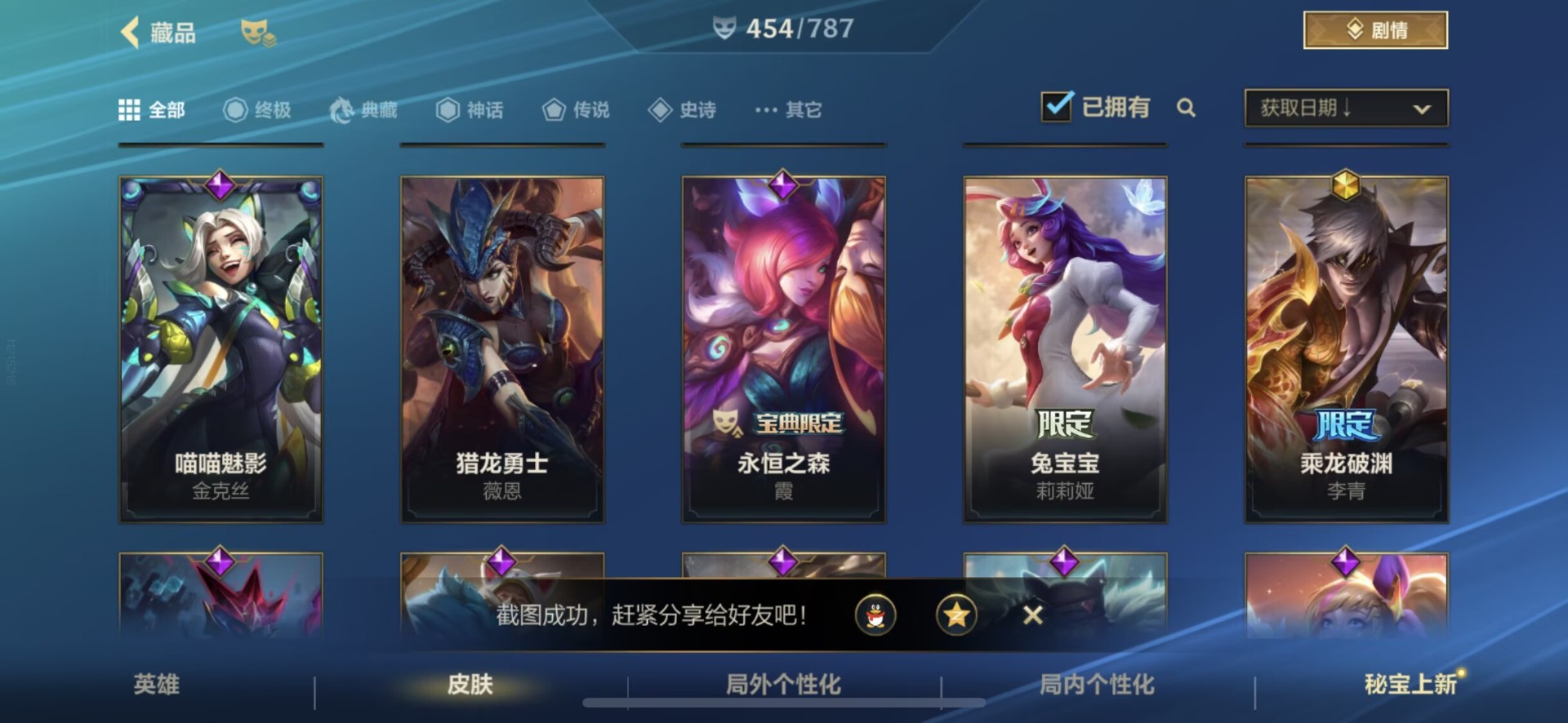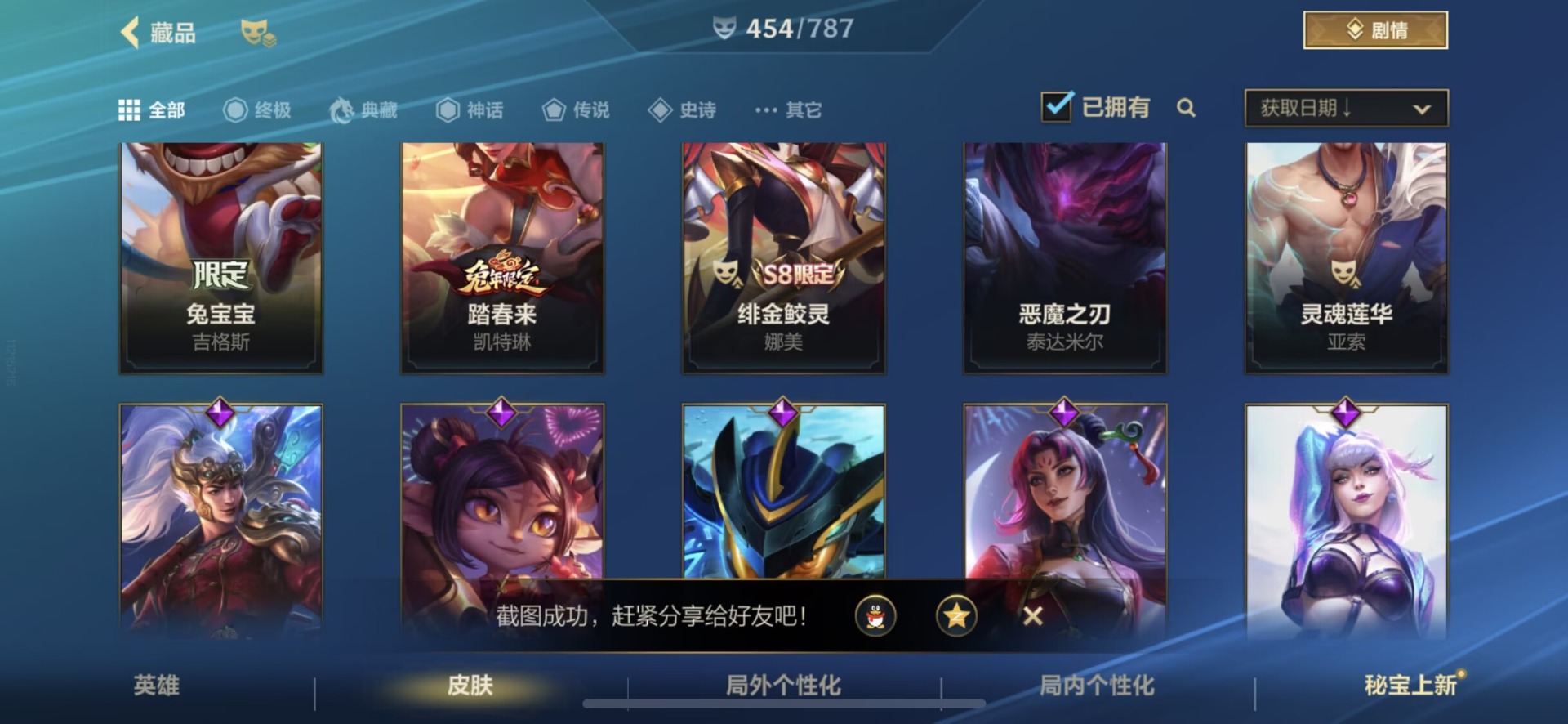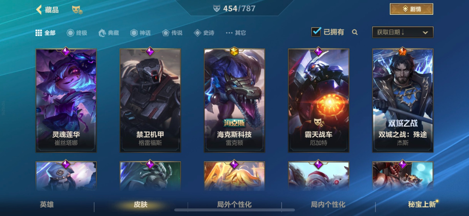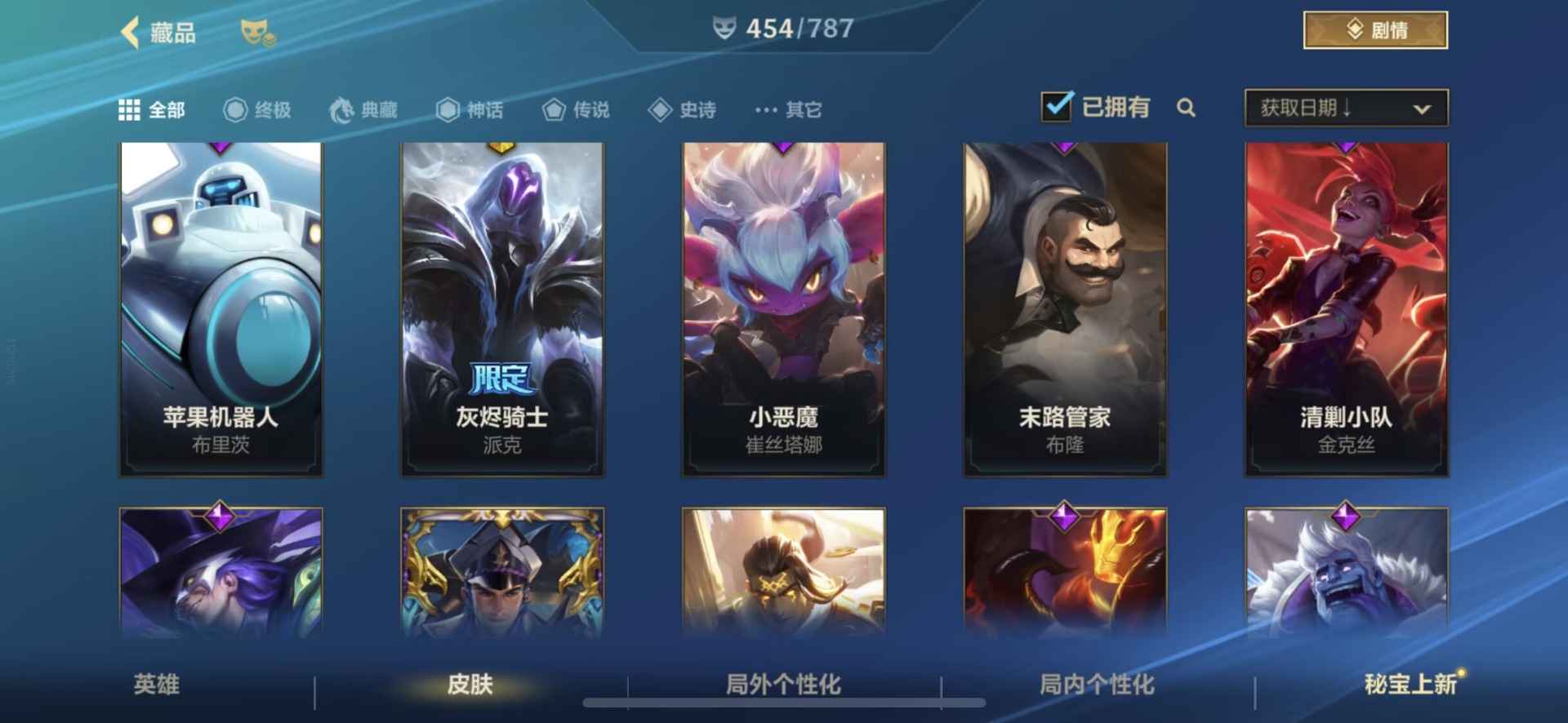 2典藏 9神话 27限定 50传说 244史诗 454皮肤 可二次 可修改实名 【段位】:宗师 【典藏皮】:超武乾坤:孤拳超武乾坤:虹影 【神话皮】:海克斯科技 雷克顿乘龙破渊 李青暮星追影 卡莎此志凌云 嘉文四世至臻喵喵魅影金克丝灰烬骑士派克火焰澎湃火力全开臻藏光影巨翼臻藏西部