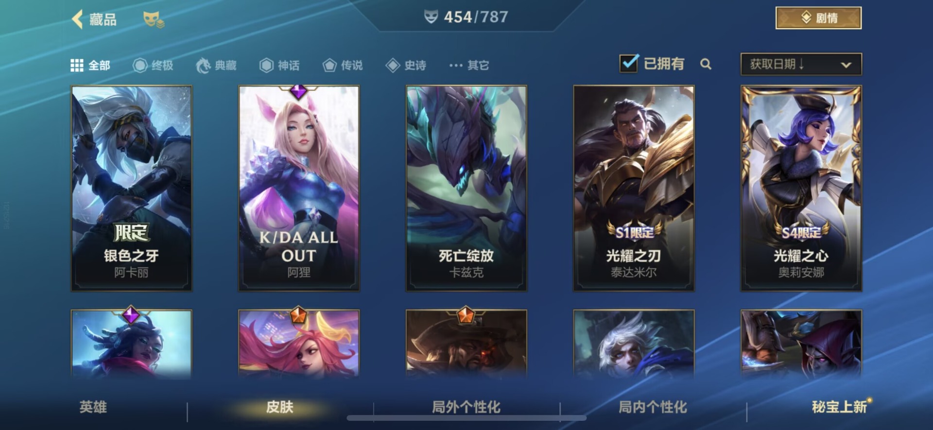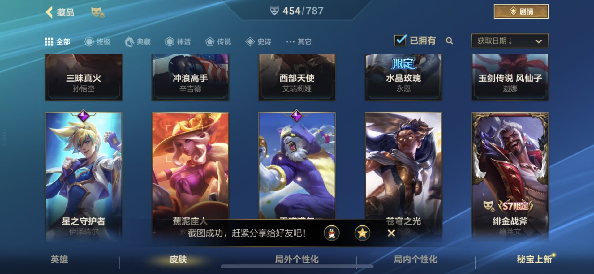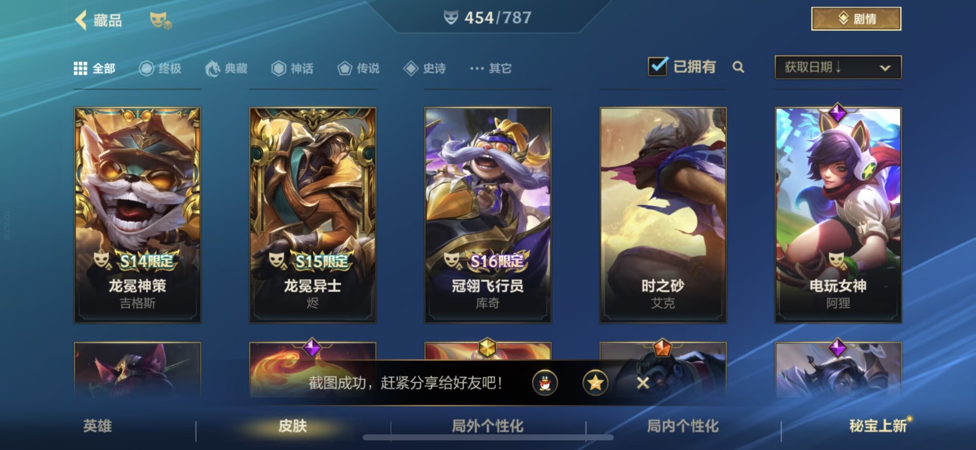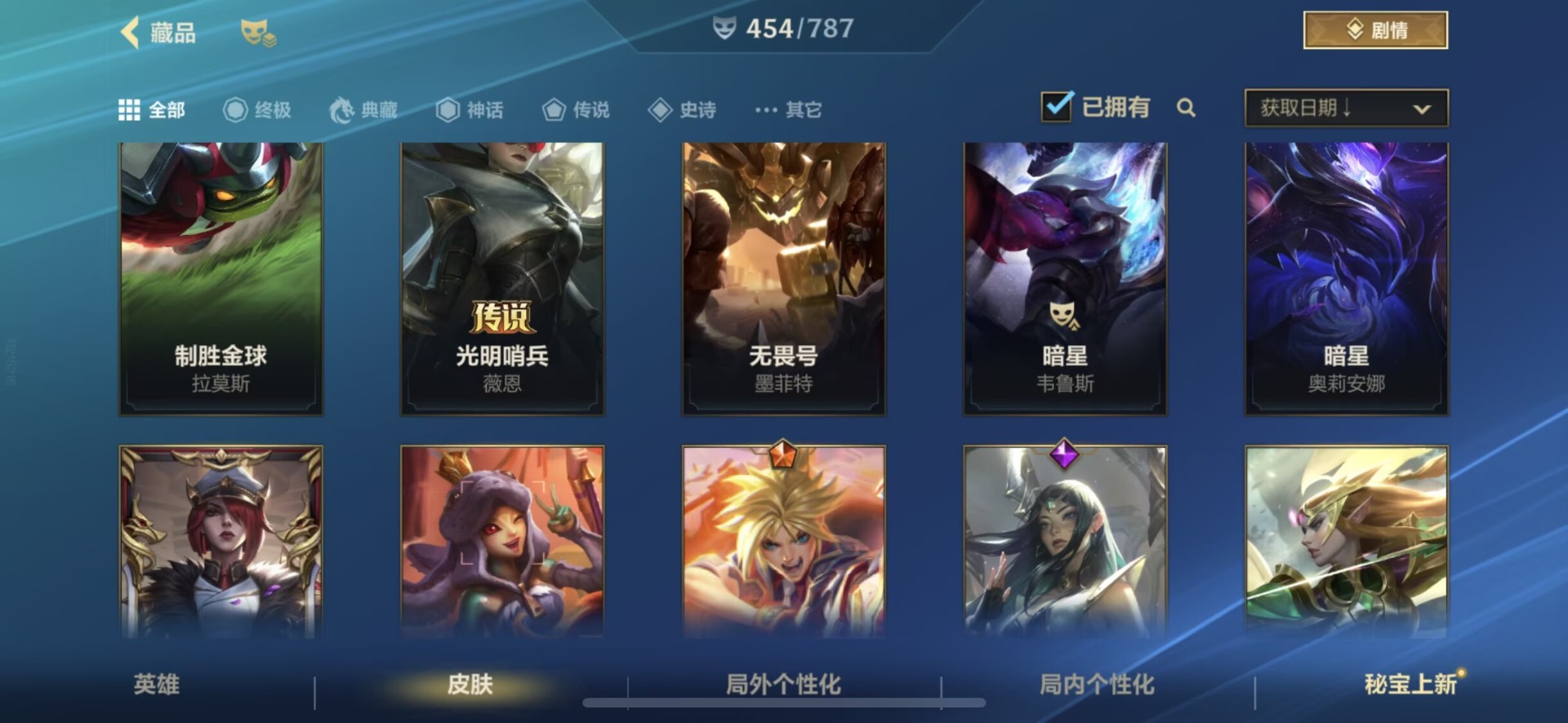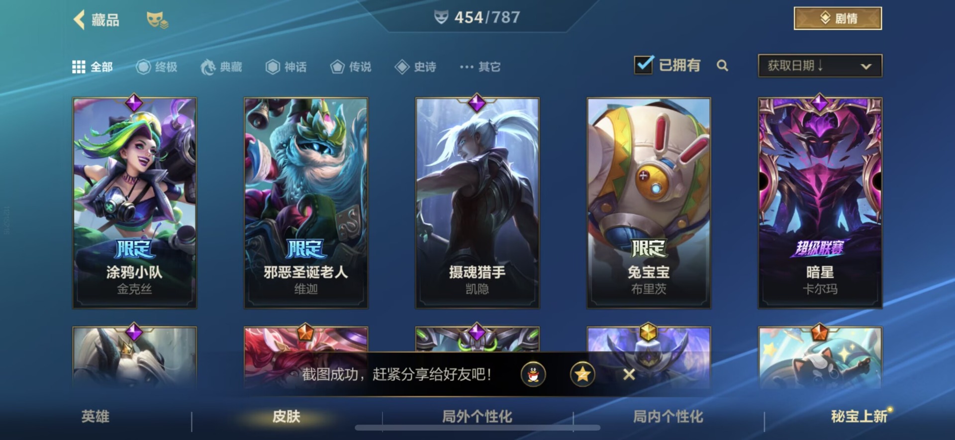 2典藏 9神话 27限定 50传说 244史诗 454皮肤 可二次 可修改实名 【段位】:宗师 【典藏皮】:超武乾坤:孤拳超武乾坤:虹影 【神话皮】:海克斯科技 雷克顿乘龙破渊 李青暮星追影 卡莎此志凌云 嘉文四世至臻喵喵魅影金克丝灰烬骑士派克火焰澎湃火力全开臻藏光影巨翼臻藏西部