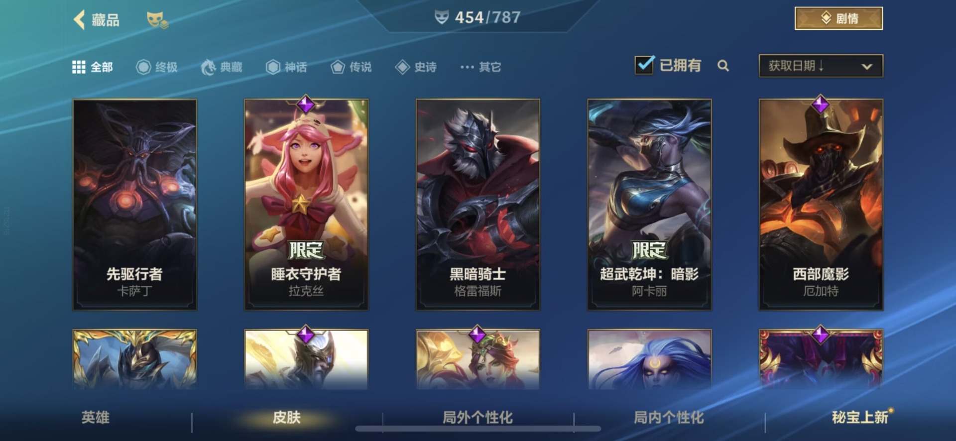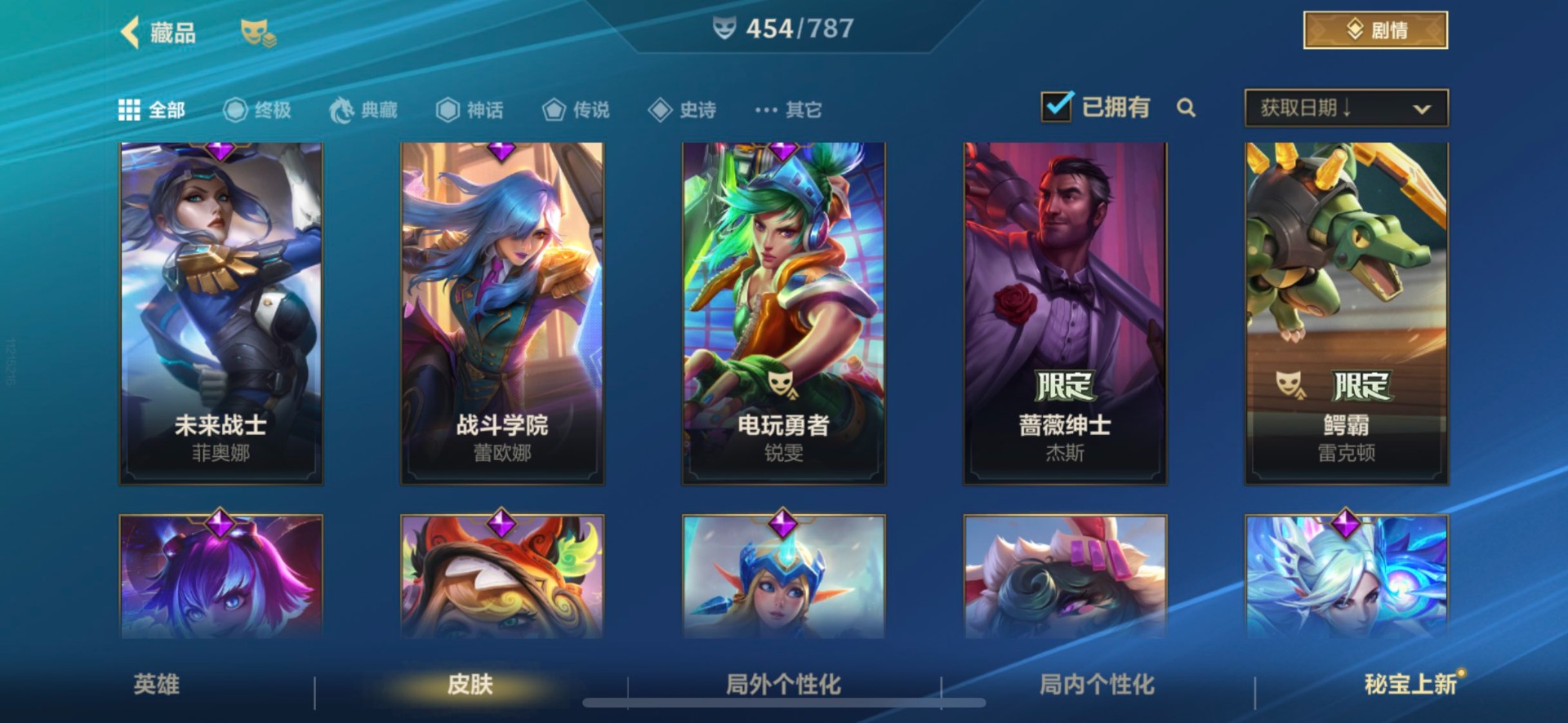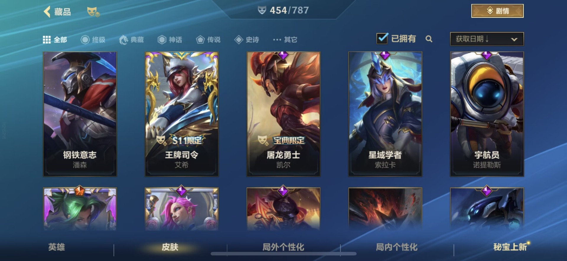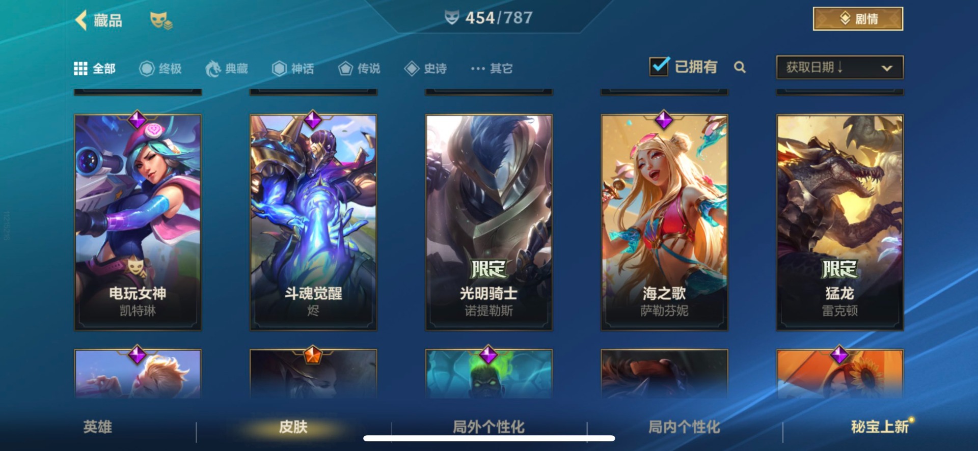 2典藏 9神话 27限定 50传说 244史诗 454皮肤 可二次 可修改实名 【段位】:宗师 【典藏皮】:超武乾坤:孤拳超武乾坤:虹影 【神话皮】:海克斯科技 雷克顿乘龙破渊 李青暮星追影 卡莎此志凌云 嘉文四世至臻喵喵魅影金克丝灰烬骑士派克火焰澎湃火力全开臻藏光影巨翼臻藏西部