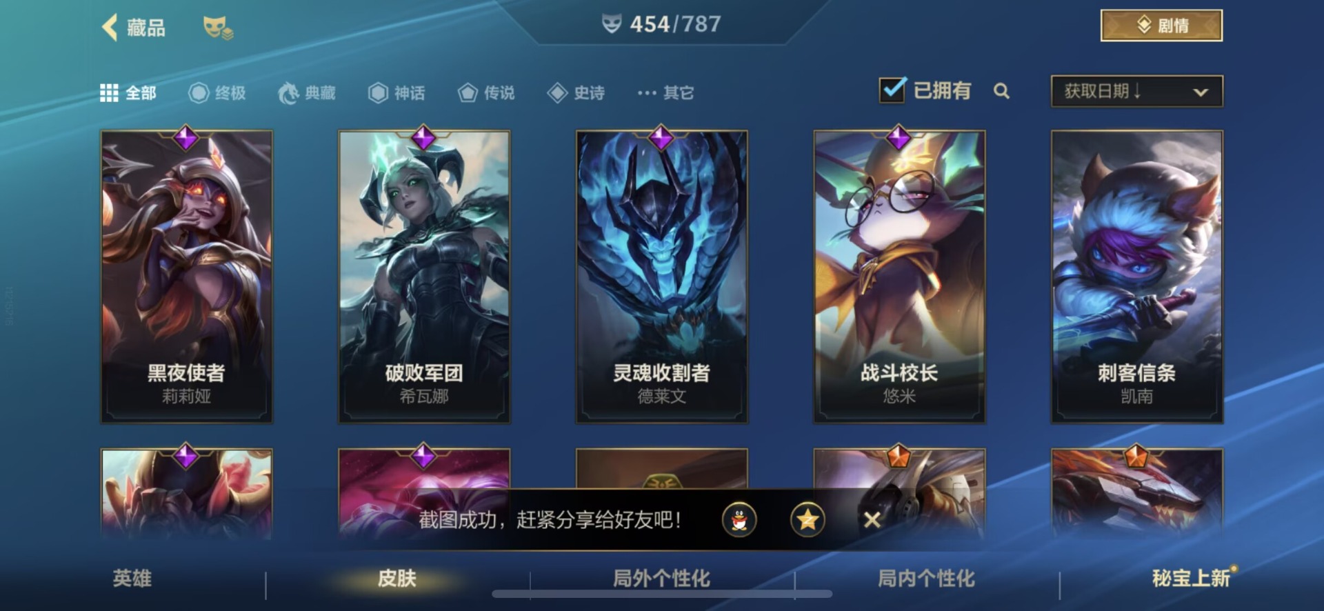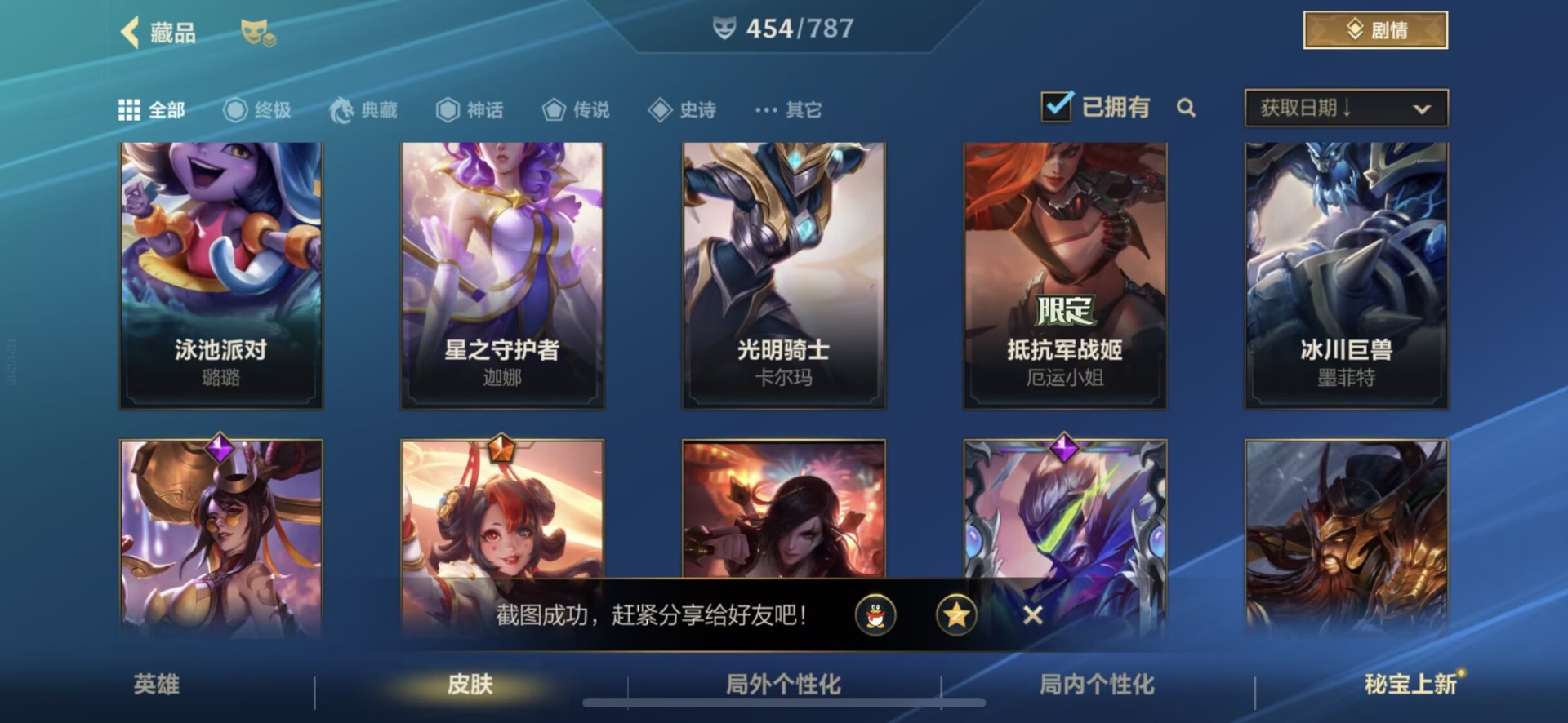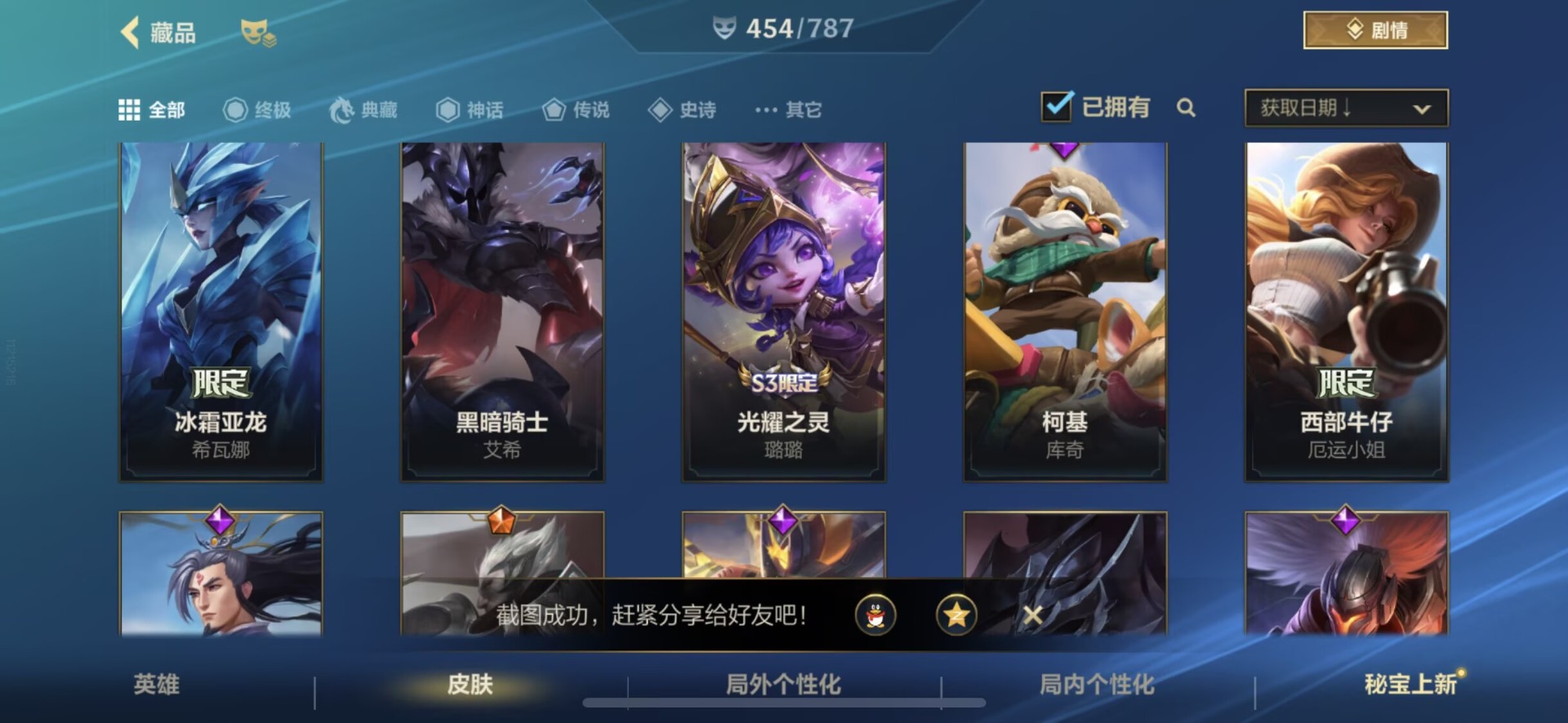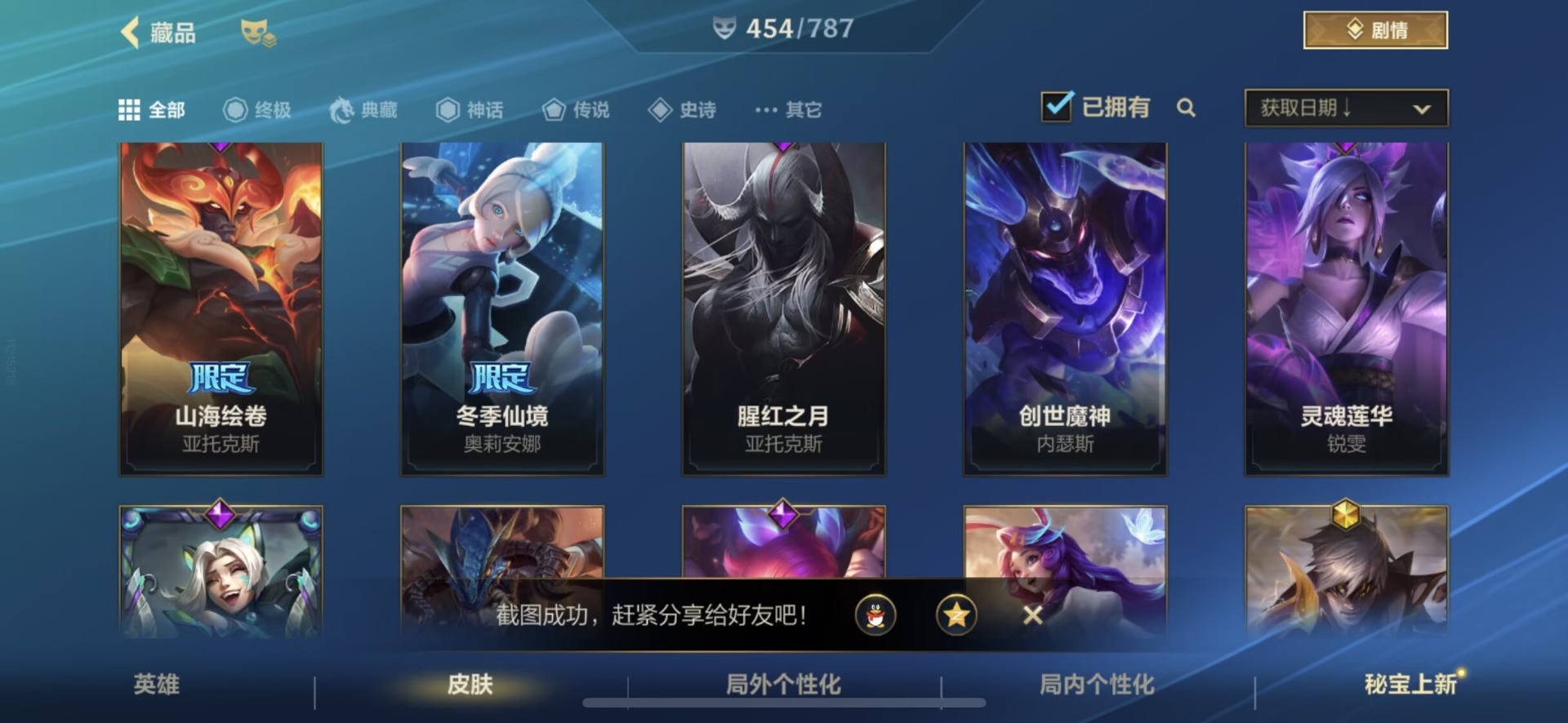 2典藏 9神话 27限定 50传说 244史诗 454皮肤 可二次 可修改实名 【段位】:宗师 【典藏皮】:超武乾坤:孤拳超武乾坤:虹影 【神话皮】:海克斯科技 雷克顿乘龙破渊 李青暮星追影 卡莎此志凌云 嘉文四世至臻喵喵魅影金克丝灰烬骑士派克火焰澎湃火力全开臻藏光影巨翼臻藏西部