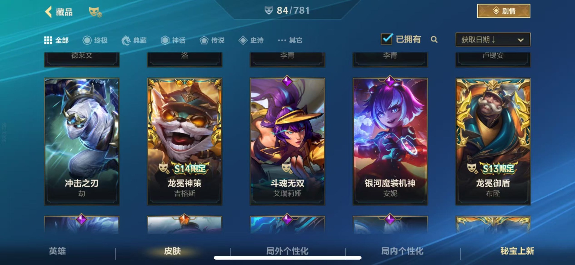 [14376297]2神话 9传说 24史诗 84皮肤 可二次 可修改实名 【段位】:铂金 【神话皮】:夜星流火 金克丝天命豪侠 瑟提 【传说皮】:神龙尊者 圣龙 李青天煞劫神拳盲僧星域游侠卡牌灌篮高手西部天使赛娜暗星女王拉克丝源计划:净化驯龙炮手 【亮点】:【优质装备】:灌篮高