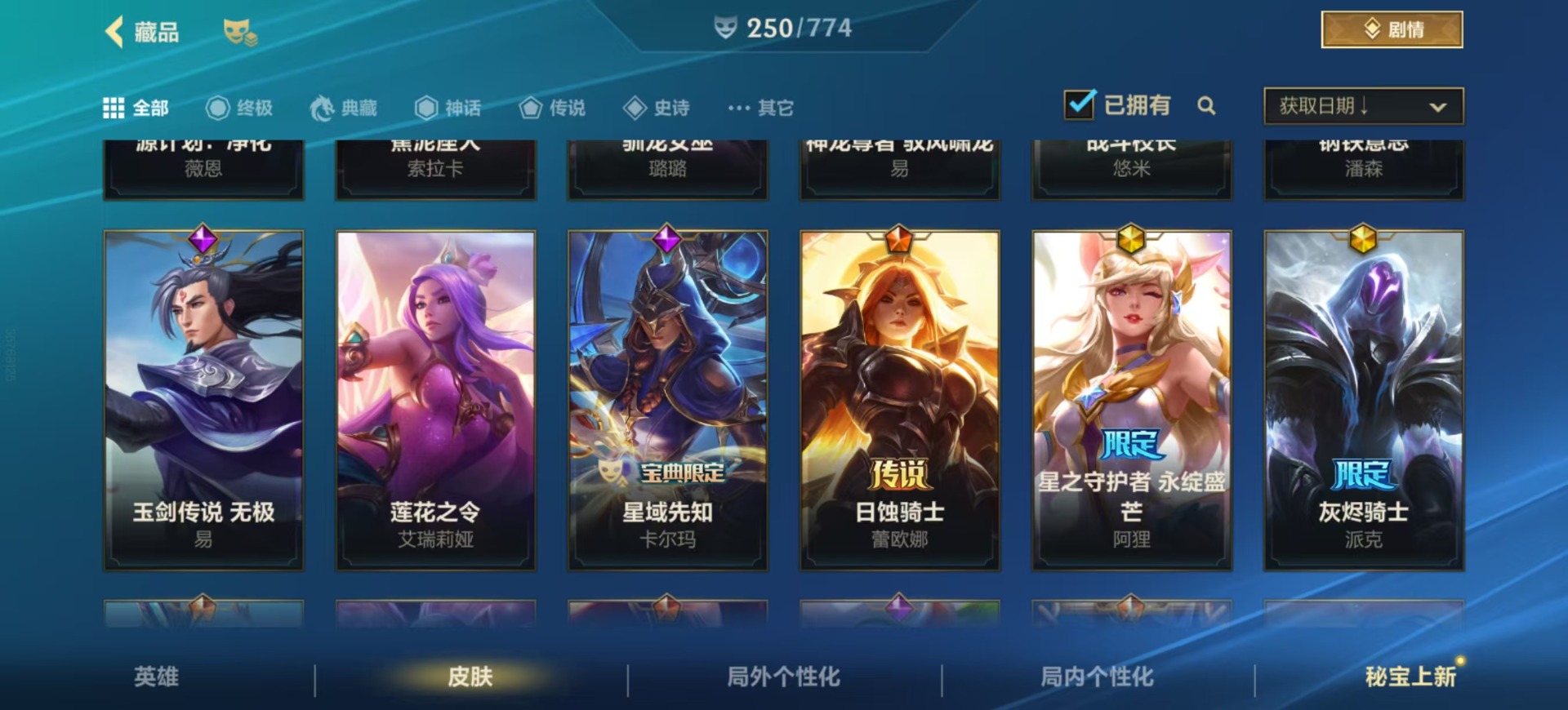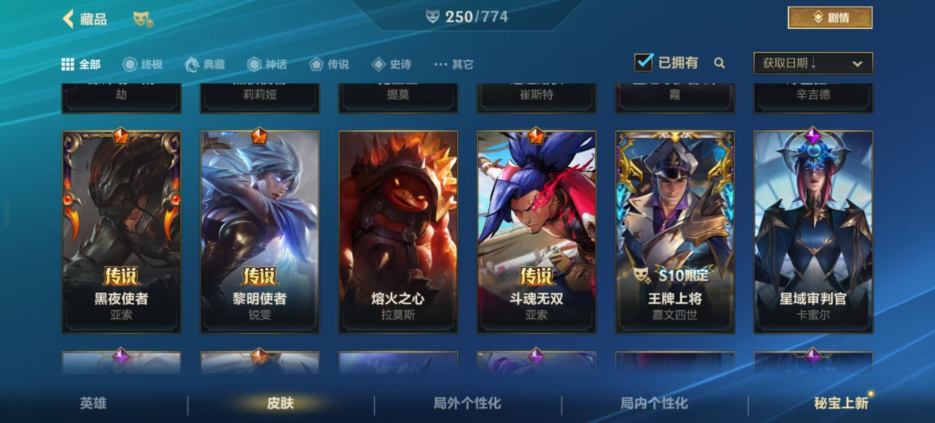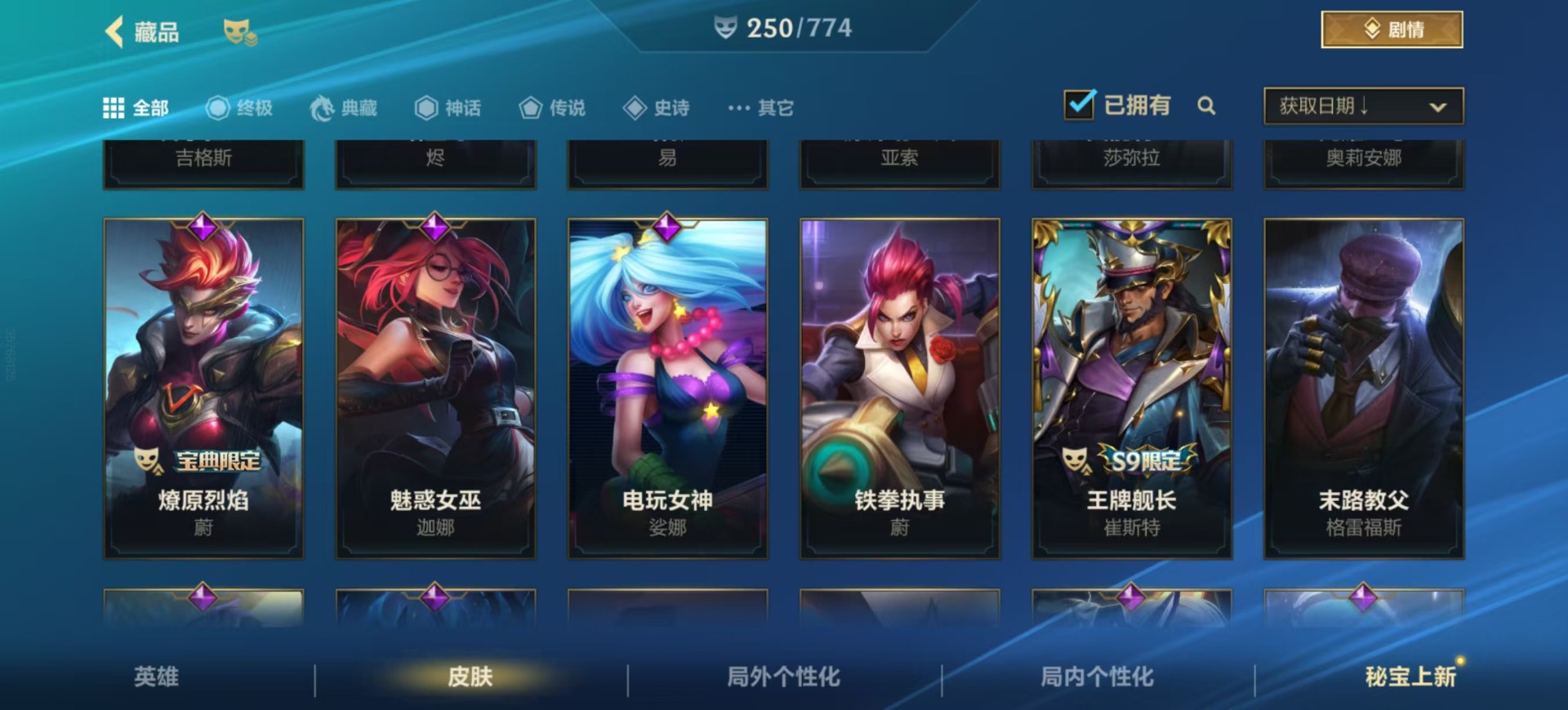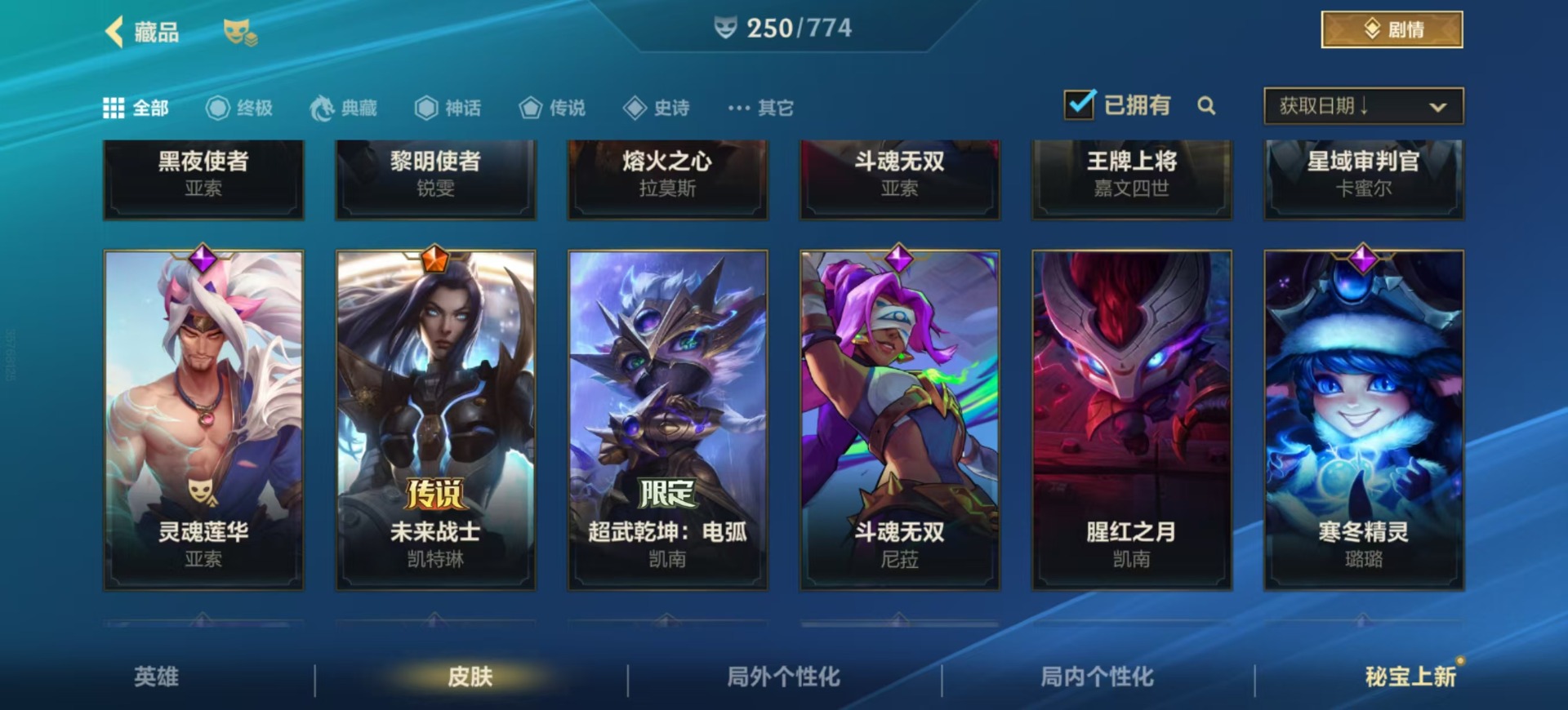 5神话 41传说 118史诗 250皮肤 可二次 可修改实名 【段位】:翡翠 【神话皮】:夜星流火 金克丝至臻 斗魂无双 艾瑞莉娅雷霆神兵 沃利贝尔星之守护者阿狸永绽盛芒灰烬骑士派克 【传说皮】:暗星尊斗魂觉醒 莎弥拉星之守护者 阿卡丽光影巨翼亚托克斯春晖神女莫甘娜源计划:毁灭