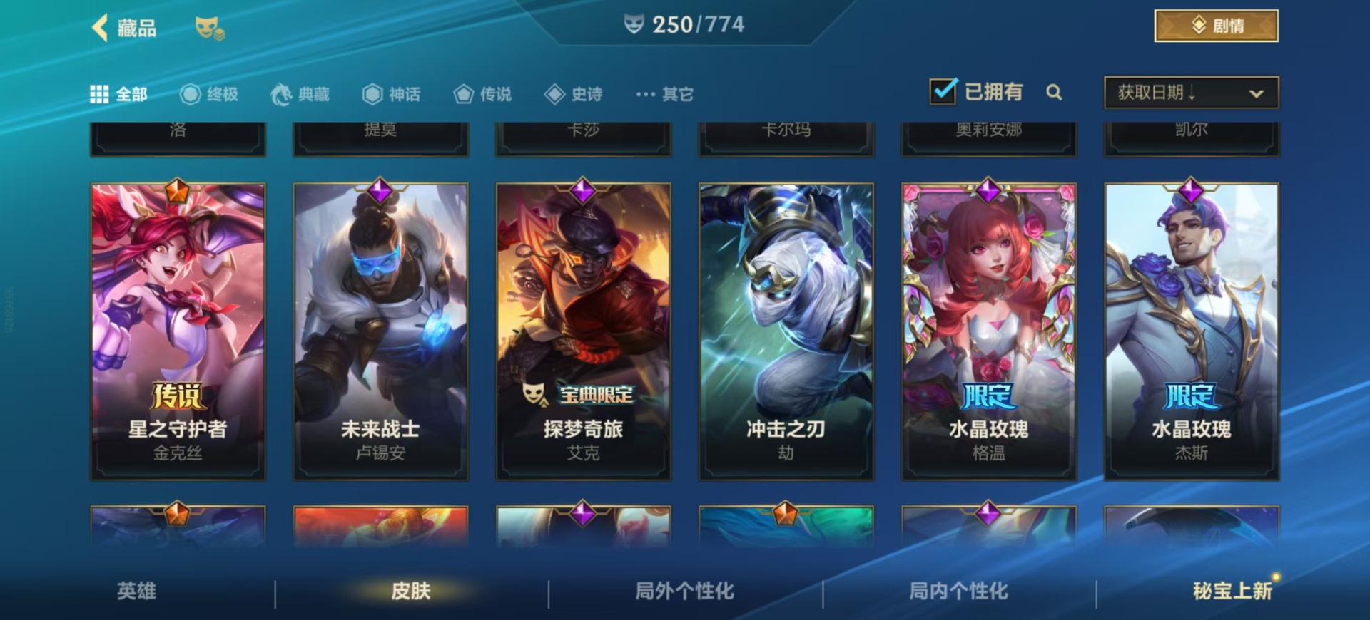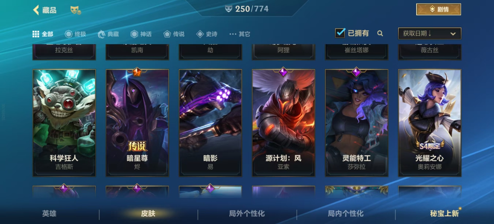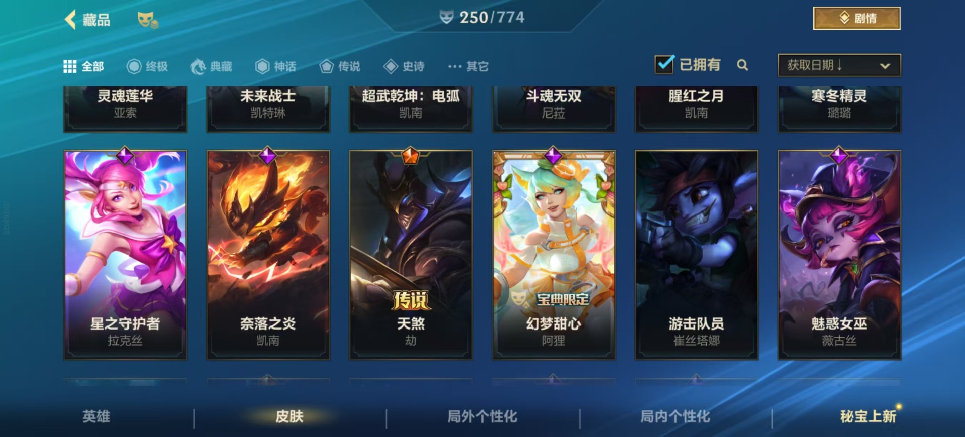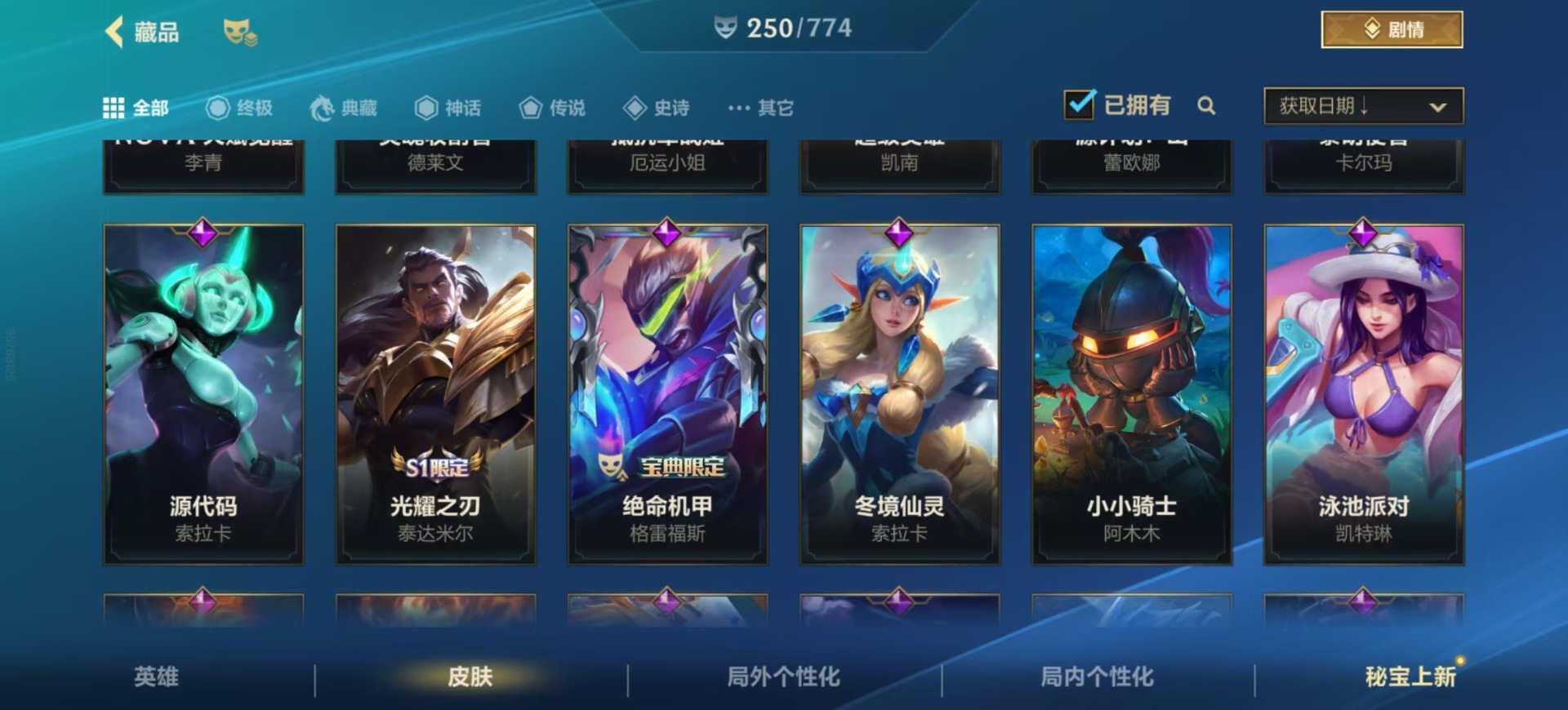 5神话 41传说 118史诗 250皮肤 可二次 可修改实名 【段位】:翡翠 【神话皮】:夜星流火 金克丝至臻 斗魂无双 艾瑞莉娅雷霆神兵 沃利贝尔星之守护者阿狸永绽盛芒灰烬骑士派克 【传说皮】:暗星尊斗魂觉醒 莎弥拉星之守护者 阿卡丽光影巨翼亚托克斯春晖神女莫甘娜源计划:毁灭