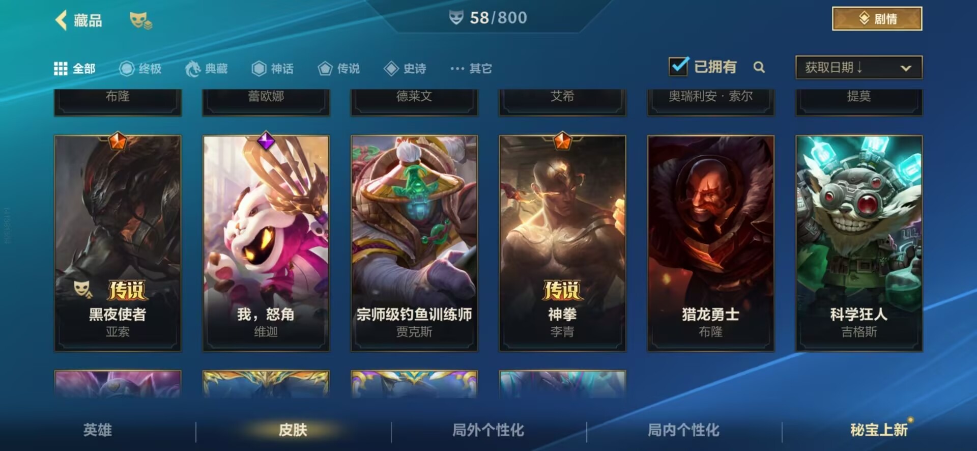 [16453824]7传说 18史诗 58皮肤 可二次 可修改实名 【段位】铂金 【传说皮】天煞劫神拳盲僧神龙尊者 驭风啸龙日蚀骑士蕾欧娜黎明使者锐雯黑夜使者亚索灌篮高手