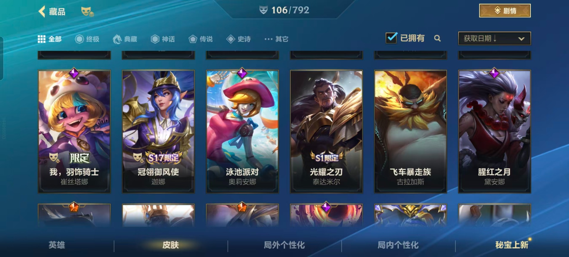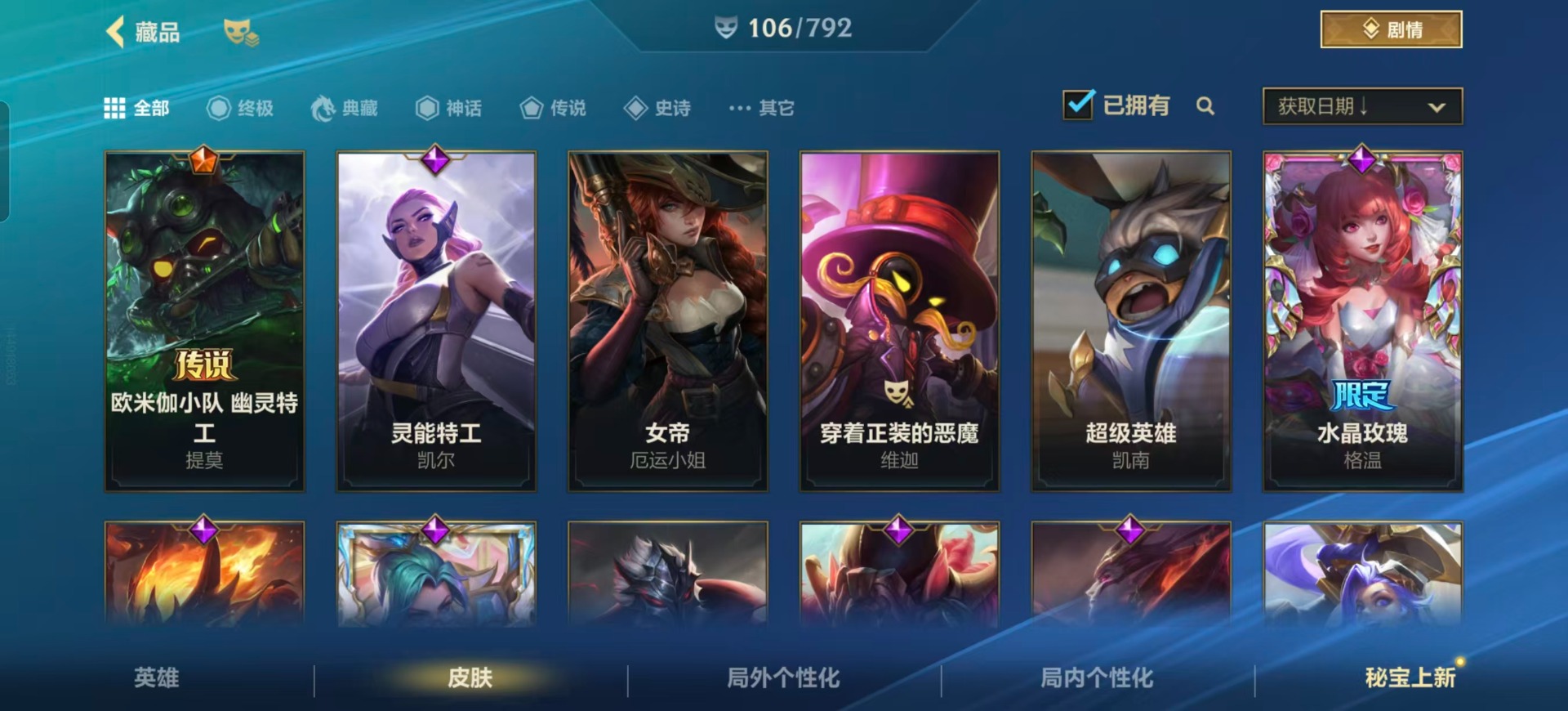 1神话 16传说 106皮肤 可二次 可修改实名 【神话皮】战斗学院ez白金学长 【传说皮】地狱之门卫士神王诺手神王盖伦日蚀骑士蕾欧娜炼狱魔犬星之守护者阿狸斗魂无双亚索暗星女王拉克丝源计划:林源计划:联合 【亮点】【优质装备】:炼狱魔犬日蚀骑士蕾欧娜神王盖伦神王诺手星之守