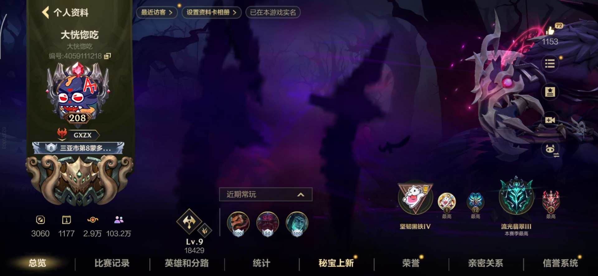 [16386099]3神话 23传说 52史诗 126皮肤 可二次 可修改实名 【段位】翡翠 【神话皮】夜星流火 金克丝冠星耀辰盖伦至臻心之钢永恩 【传说皮】暗星尊魄炼九幽 派克花车开起来咯 墨菲特心之钢凯隐灵魂莲华腕豪海魔至尊 亚托克斯翩翩绣蕊 霞霸天零式塞恩天煞劫神王诺手